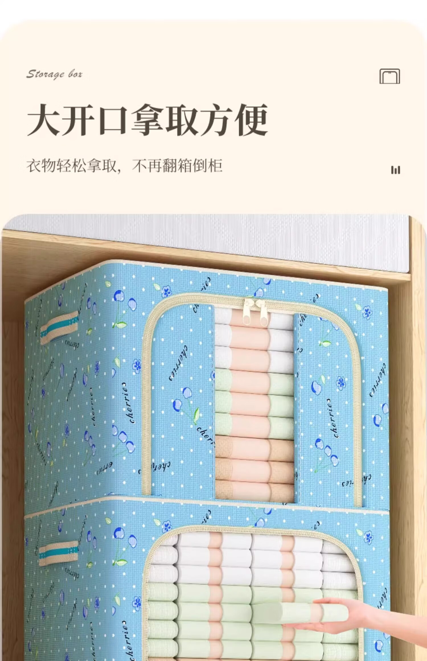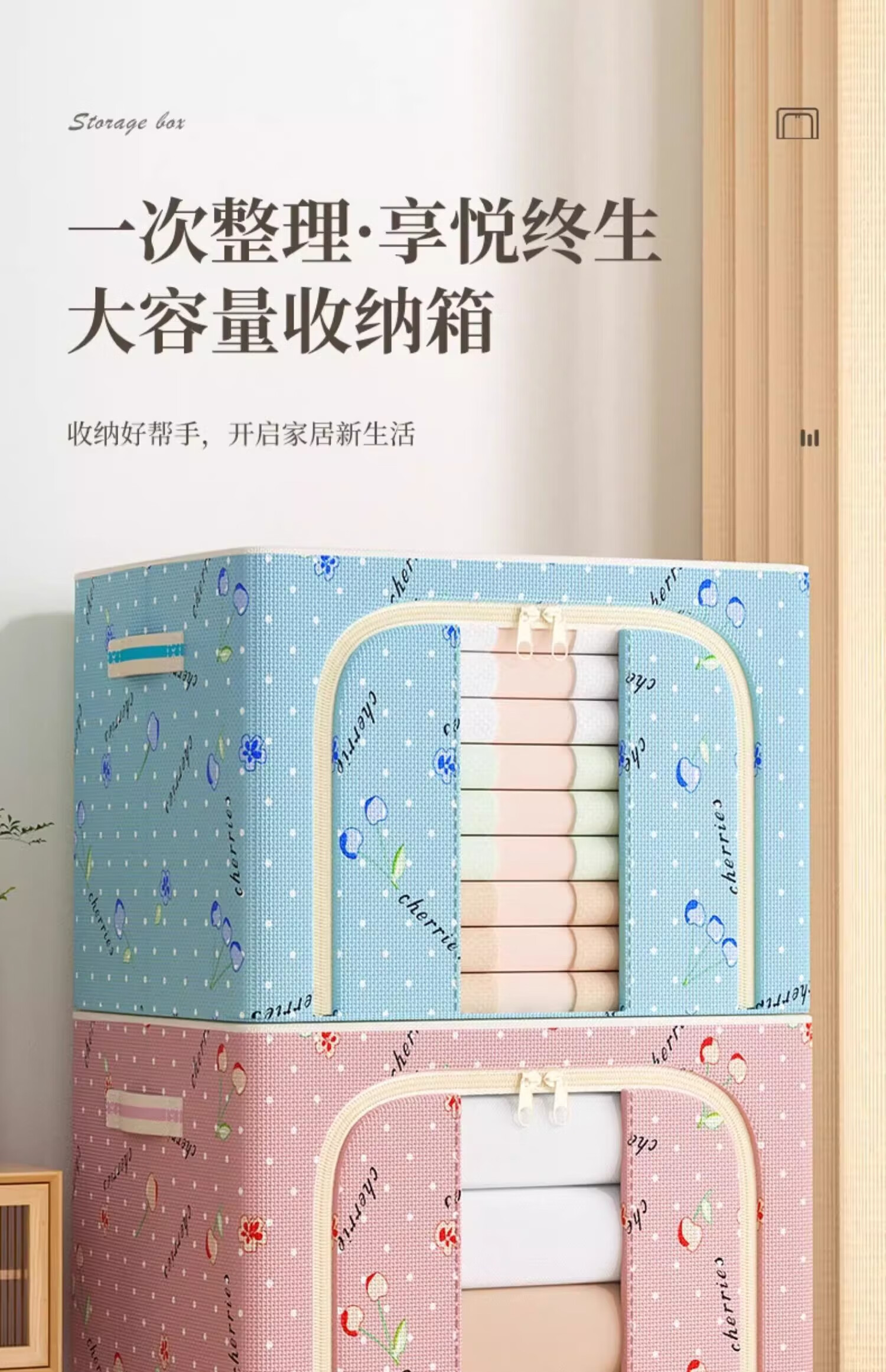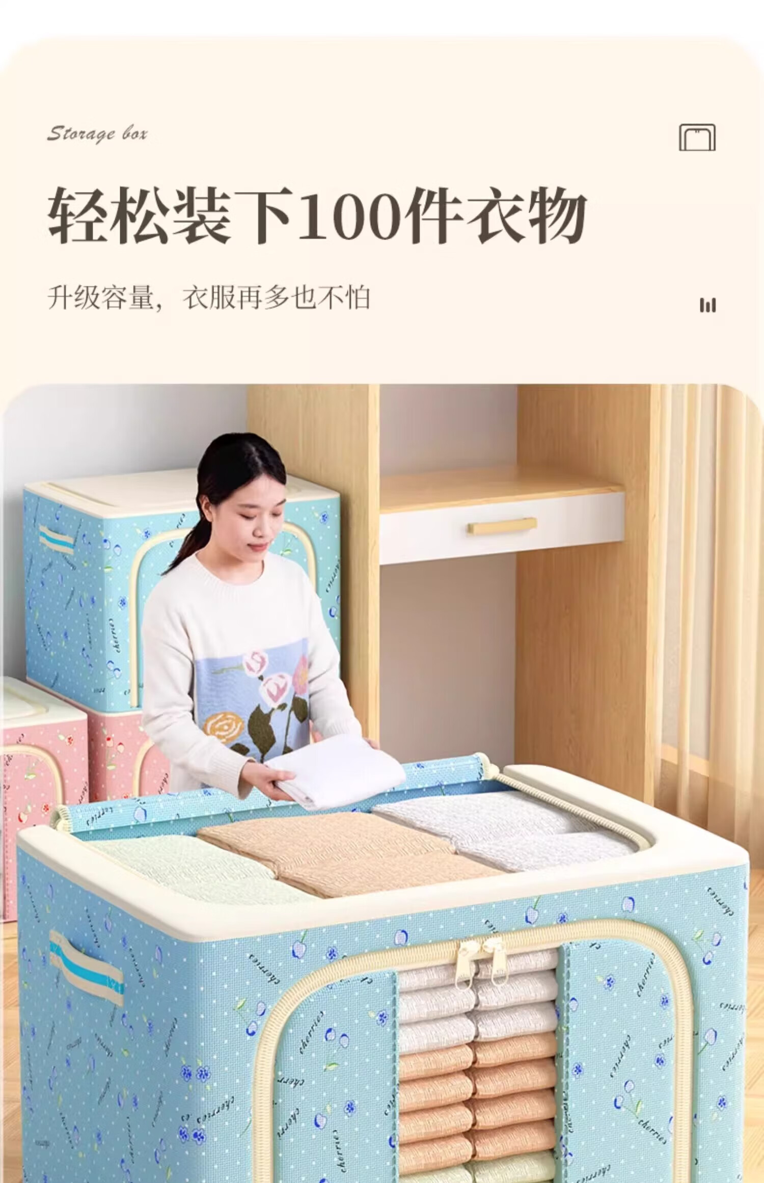 纳份爱布艺收纳箱大容量家用被子衣物打包袋防水防潮牛津布整理神器搬家 粉樱桃-66L【3个装-单视窗】双开门丨加厚加粗 【加粗钢架固定/加厚牛津布】