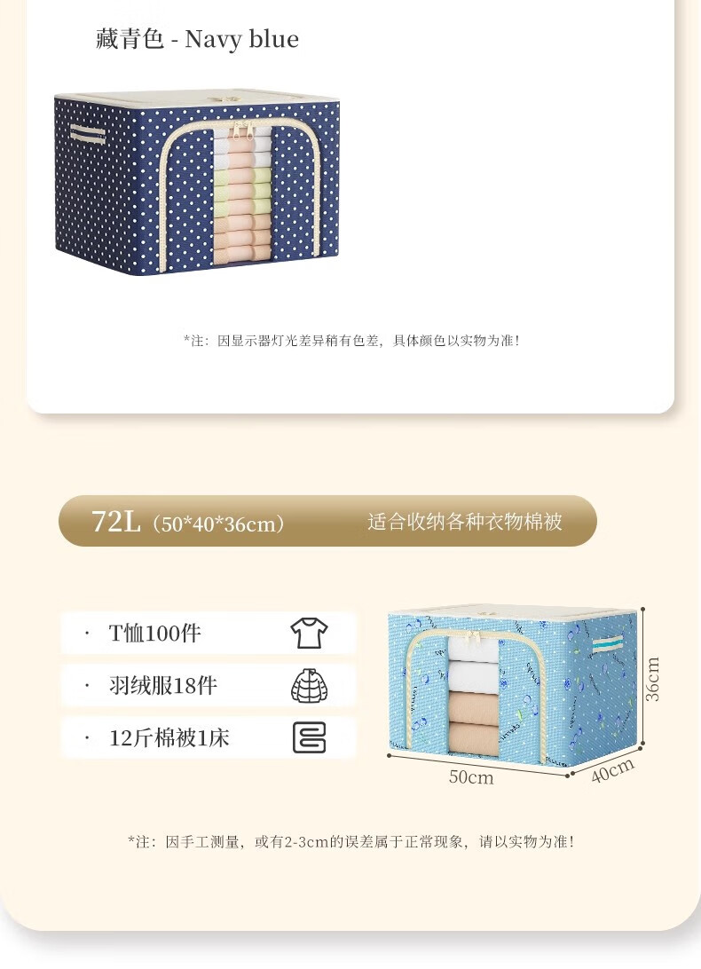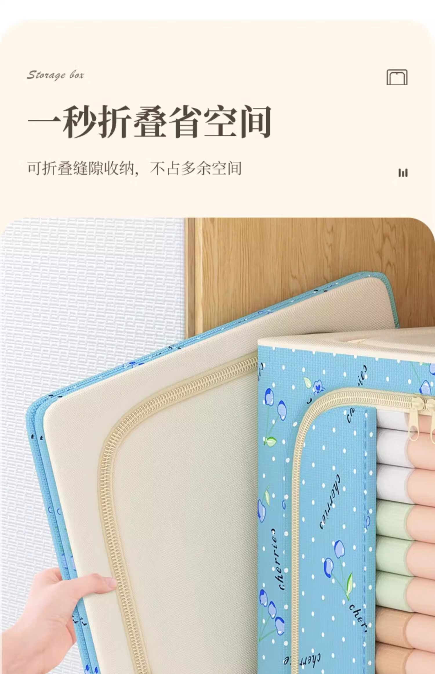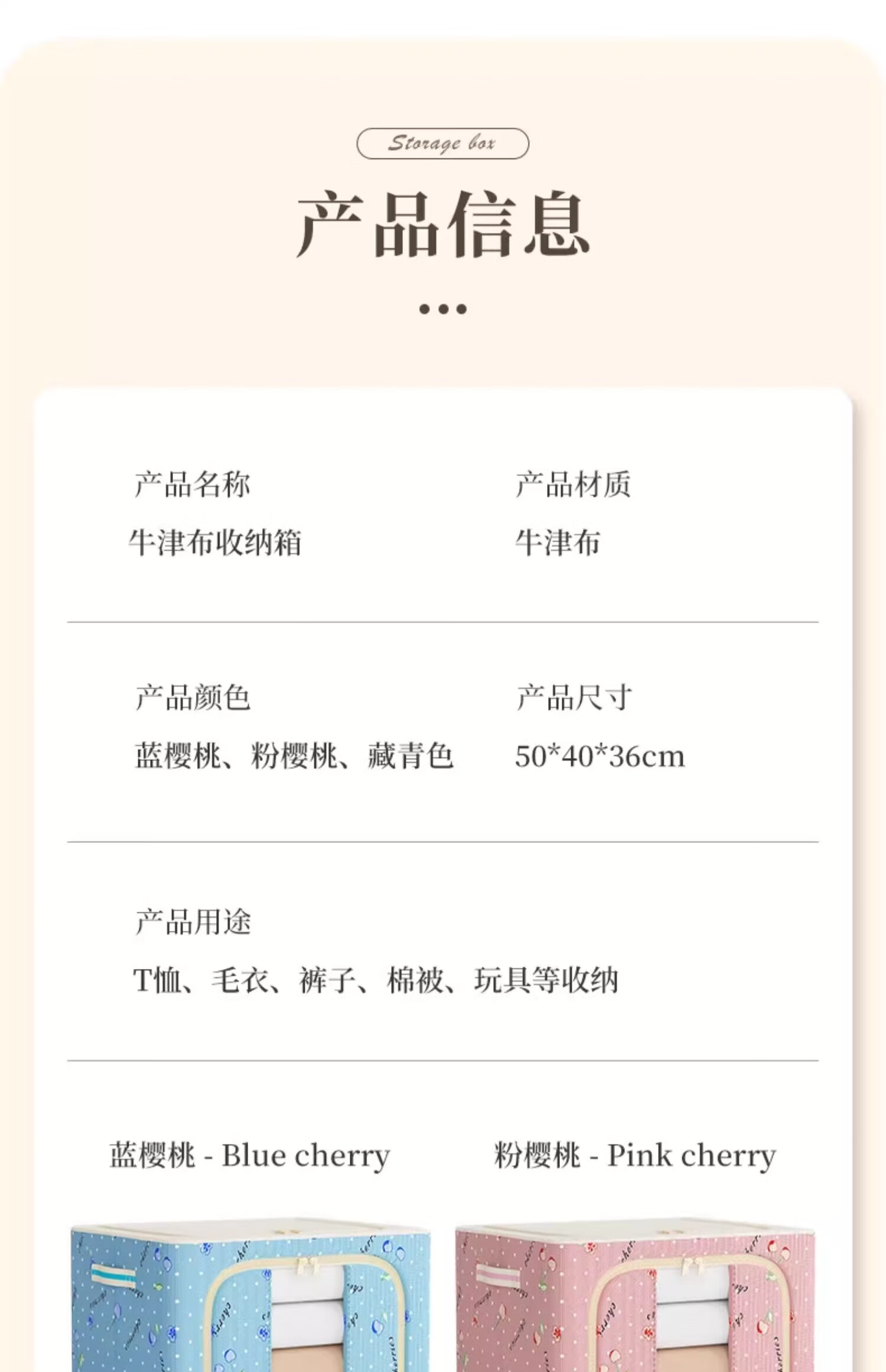 纳份爱布艺收纳箱大容量家用被子衣物打包袋防水防潮牛津布整理神器搬家 粉樱桃-66L【3个装-单视窗】双开门丨加厚加粗 【加粗钢架固定/加厚牛津布】