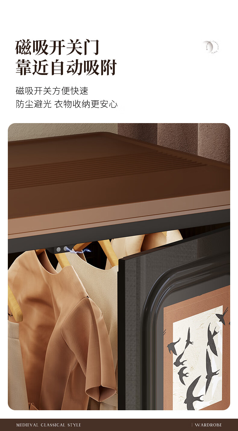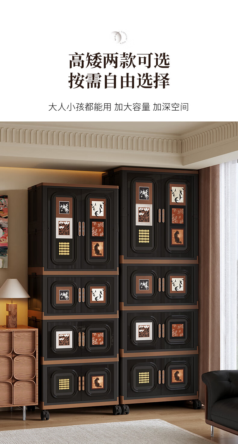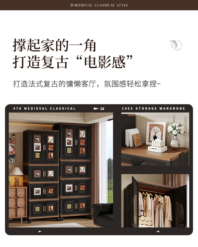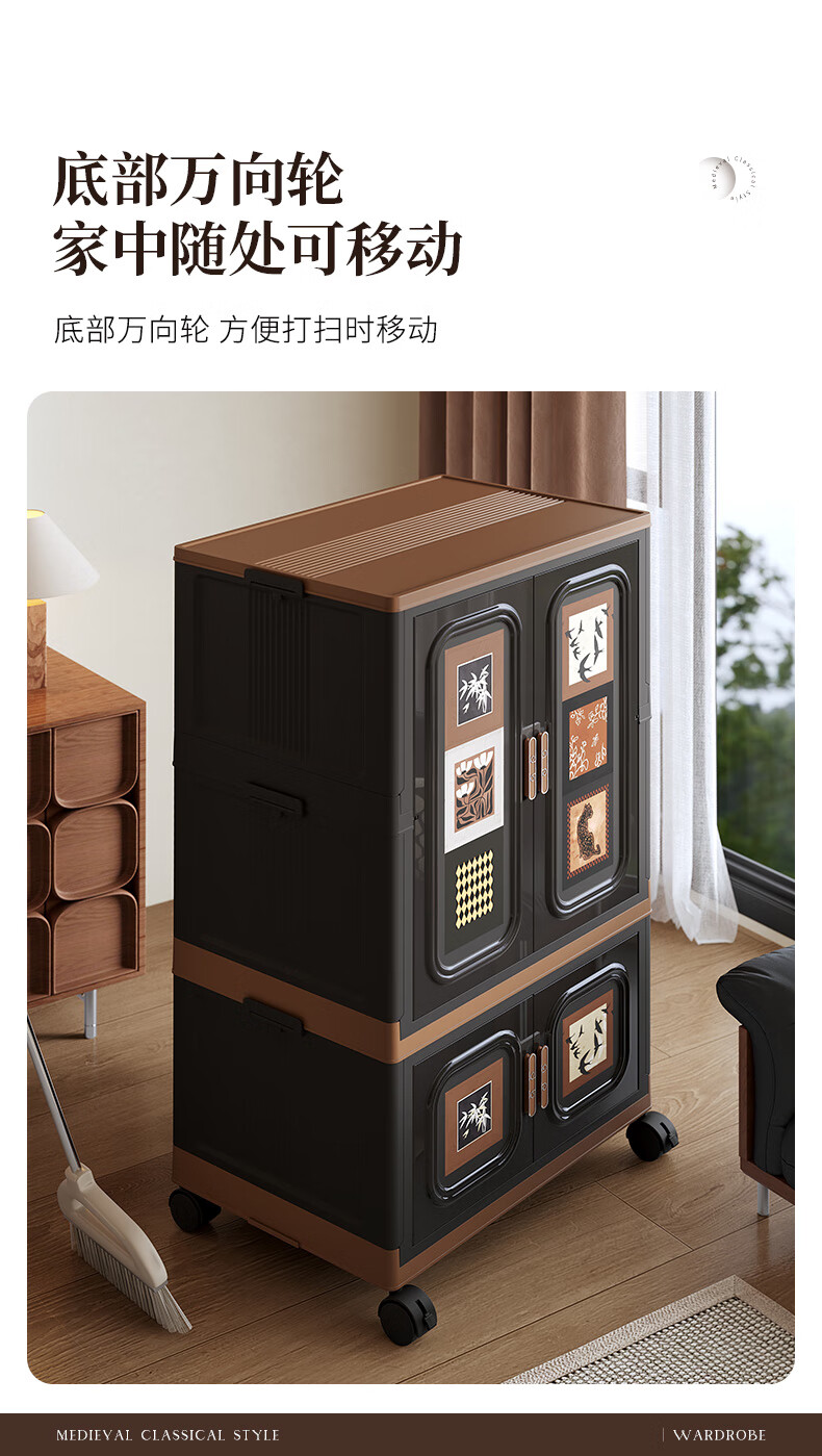 邦尼美家中古风简易衣柜家用卧室衣服被子收纳柜成人衣橱可折叠塑料储物柜 75cm面宽【1衣柜+3储物柜】 放心购【内含挂衣杆+衣架】