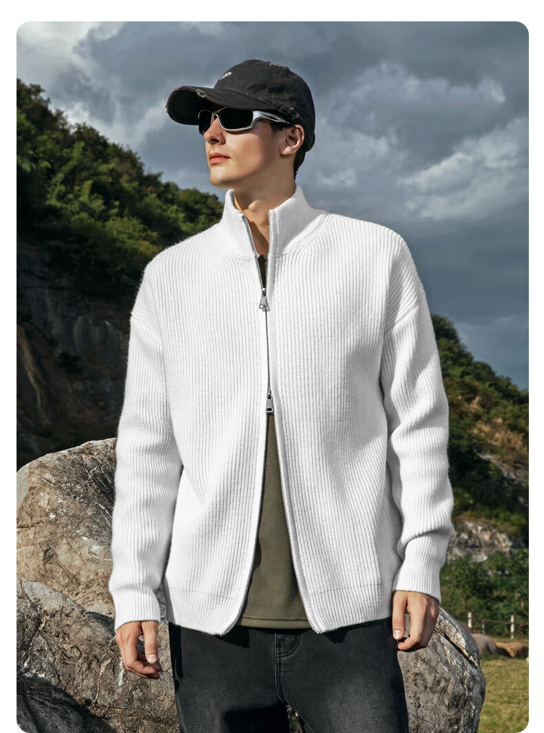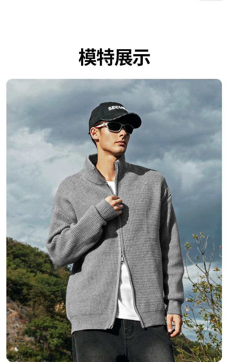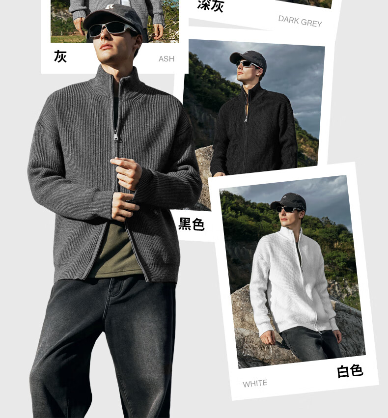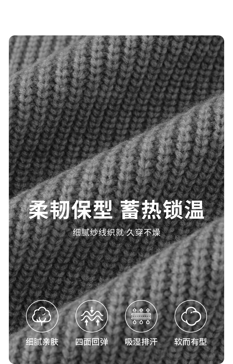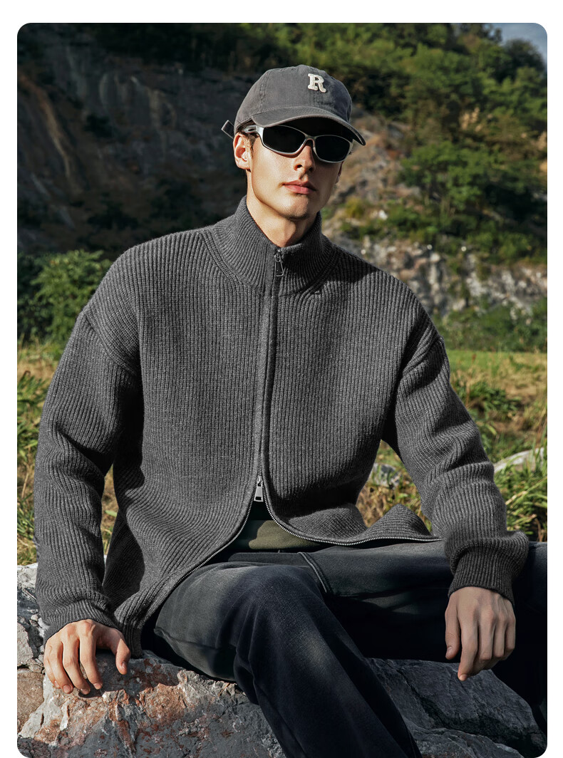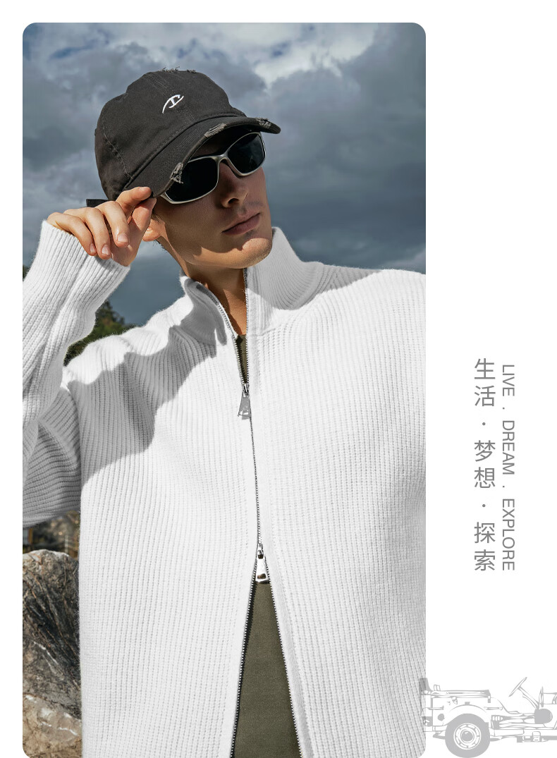JEEP SPIRIT吉普美式潮牌毛衣男冬款重磅加厚开衫户外跑步防风立领男装针织衫