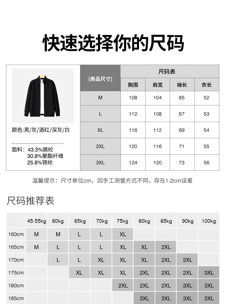 JOW【提花加厚】纯羊毛开衫外套冬季保暖休闲半高领男装通勤针织毛衣
