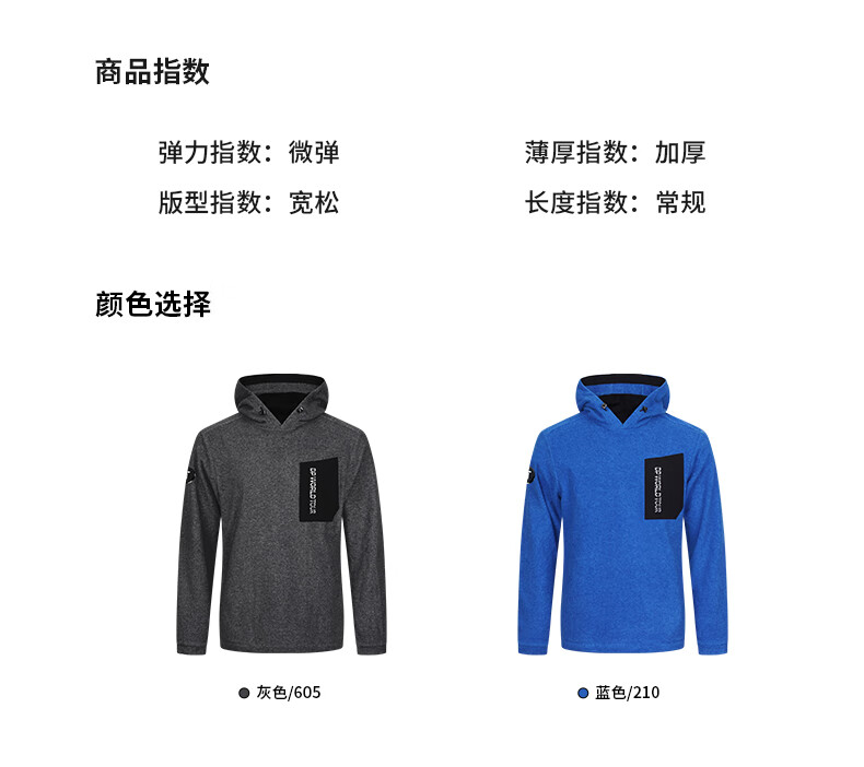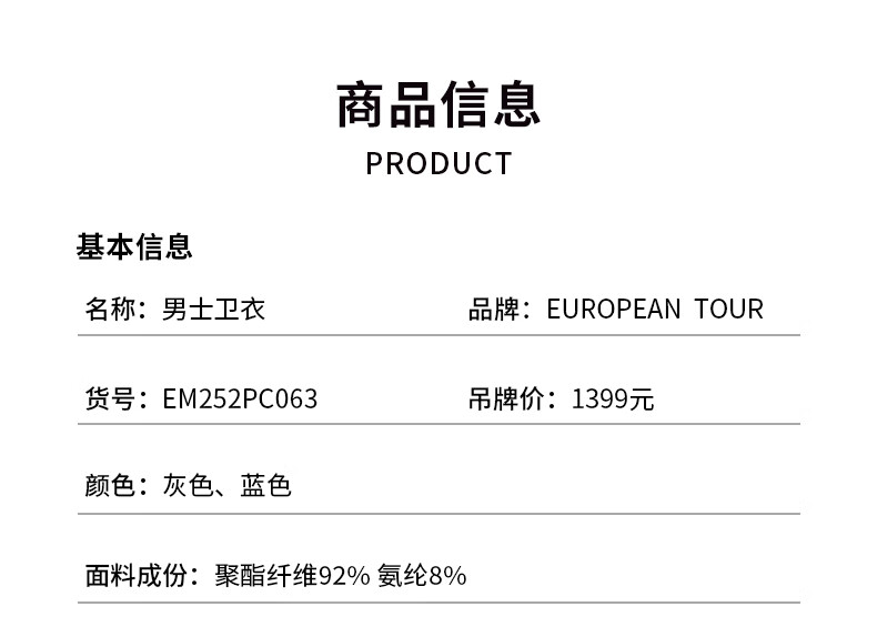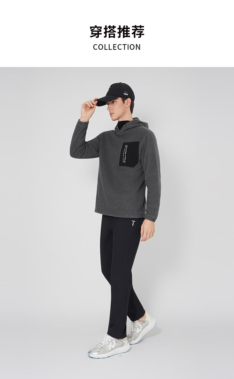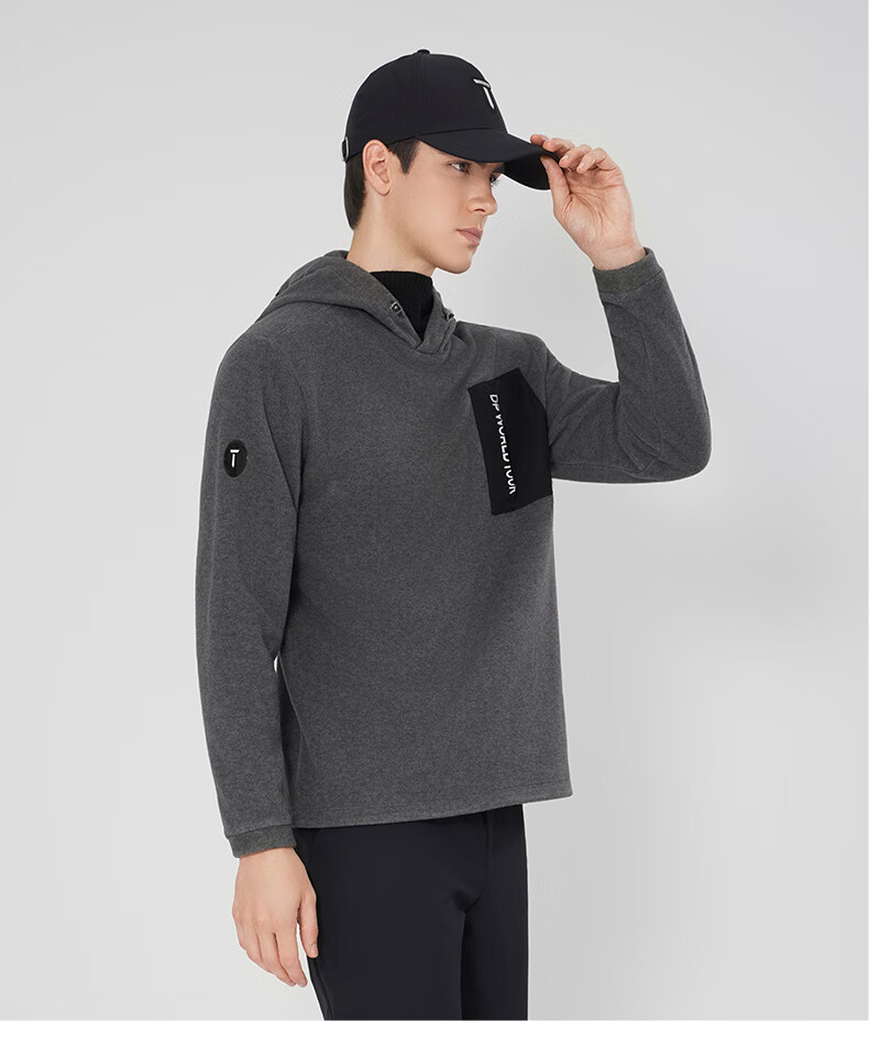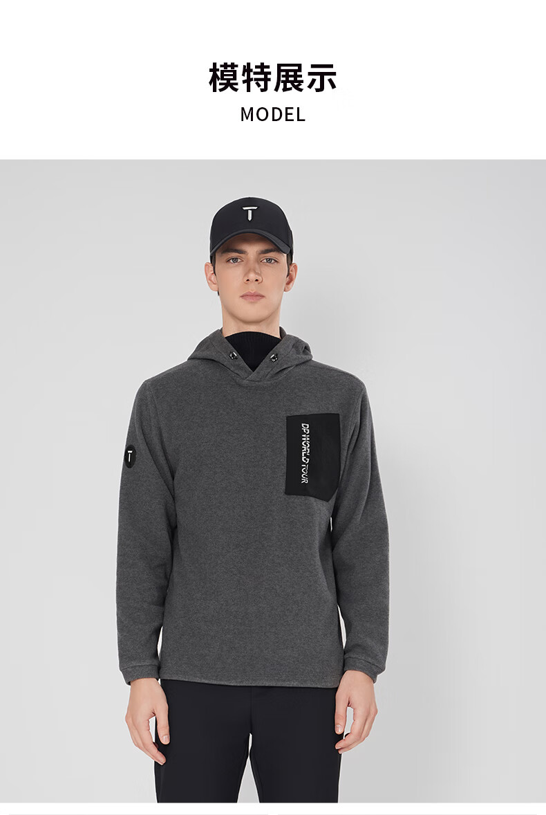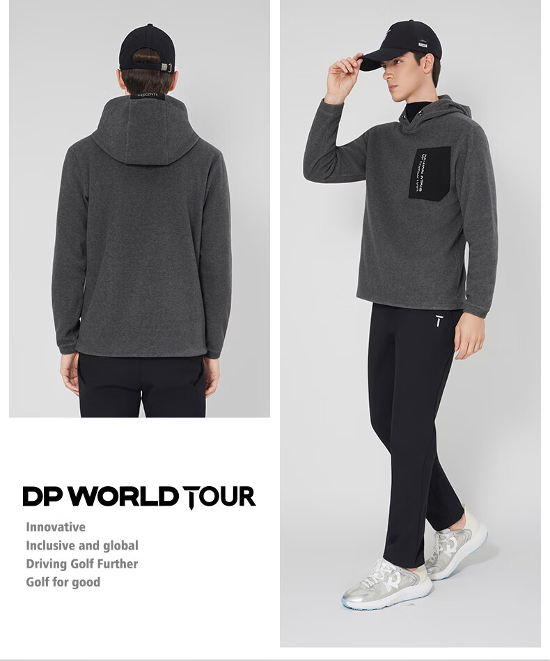 EUROPEAN TOUR欧巡赛高尔夫服装男装卫衣25秋冬摇粒绒御寒保暖弹力连帽运动卫衣 灰色 M