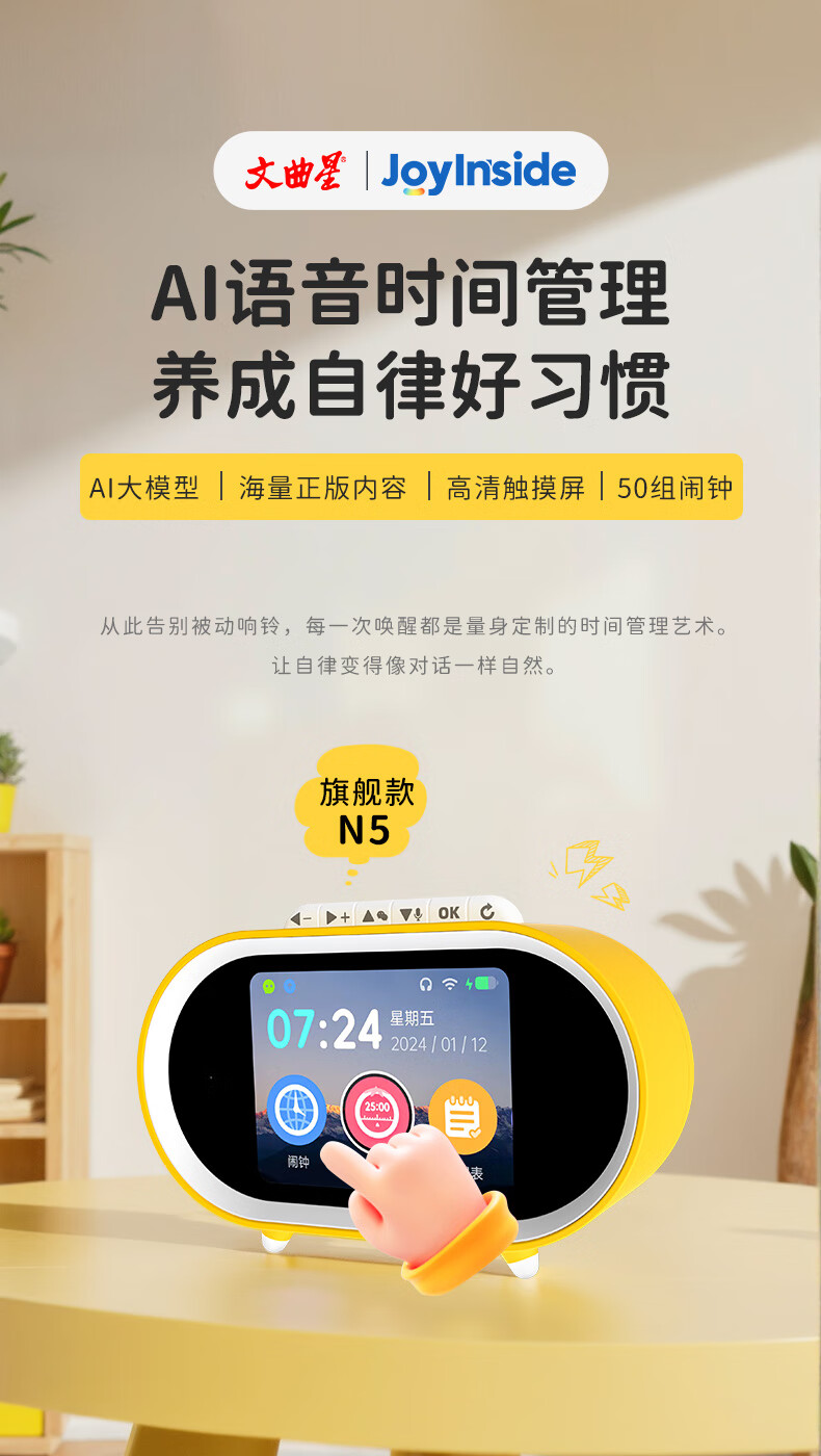 文曲星N5早教智能闹钟京东AI大模型Joy Inside3-15岁玩具男女孩生日礼物