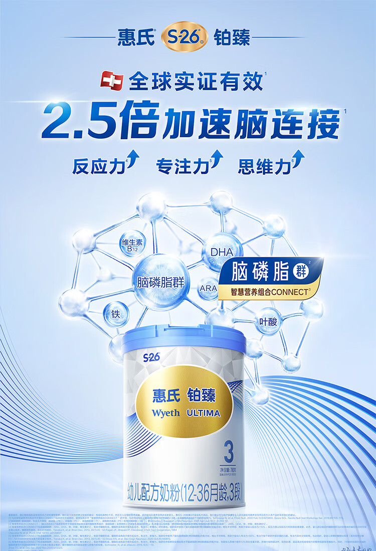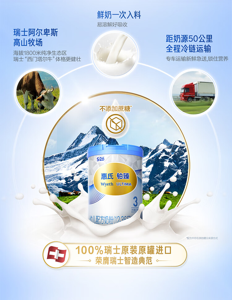 惠氏(Wyeth)铂臻进口DHA幼儿配方奶粉3段(12-36月)780g*6罐