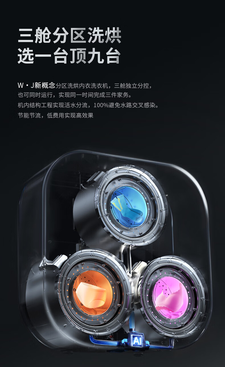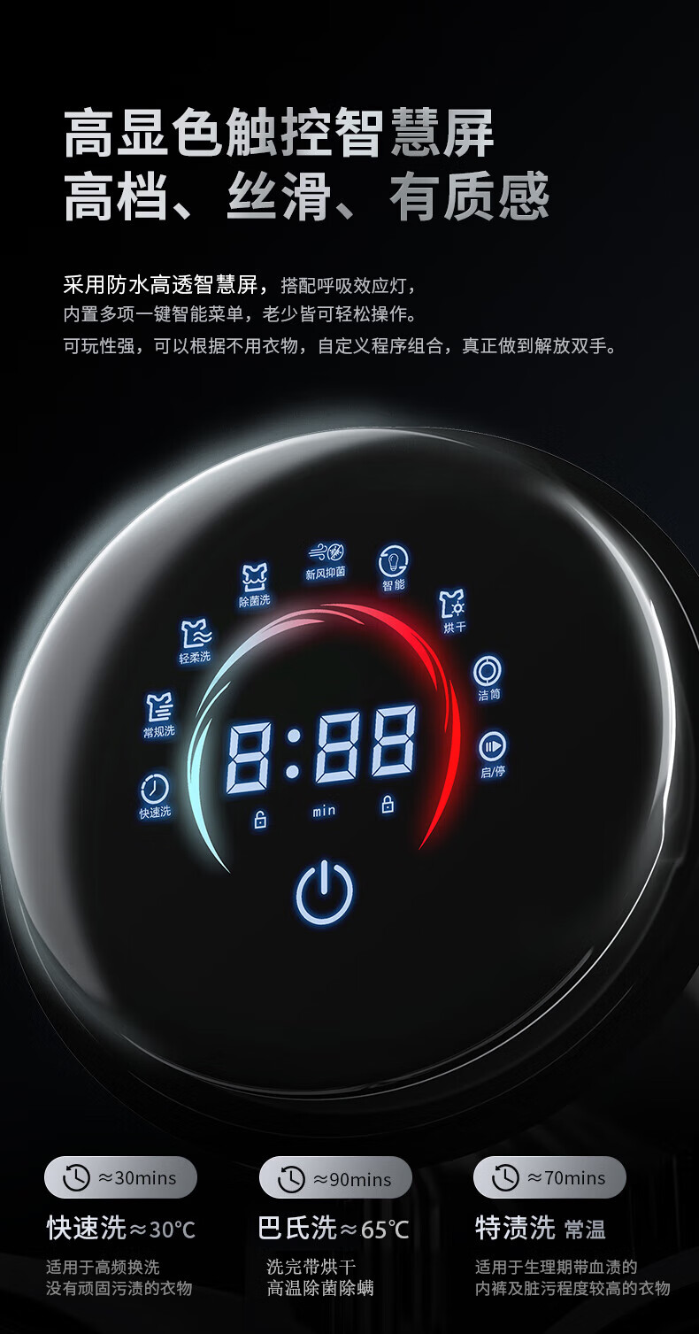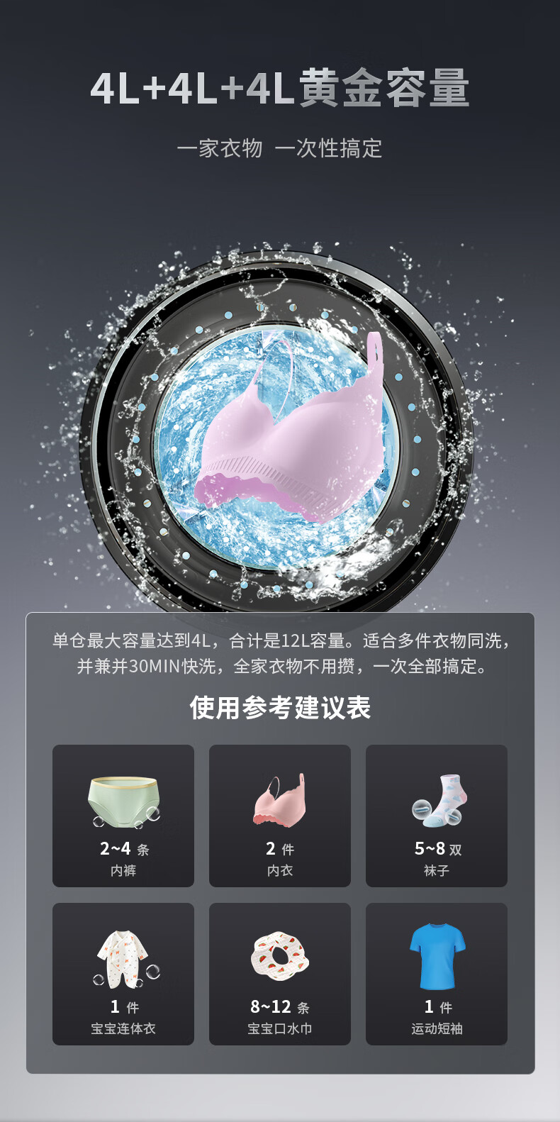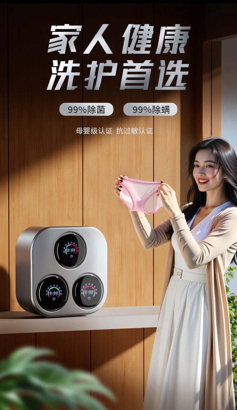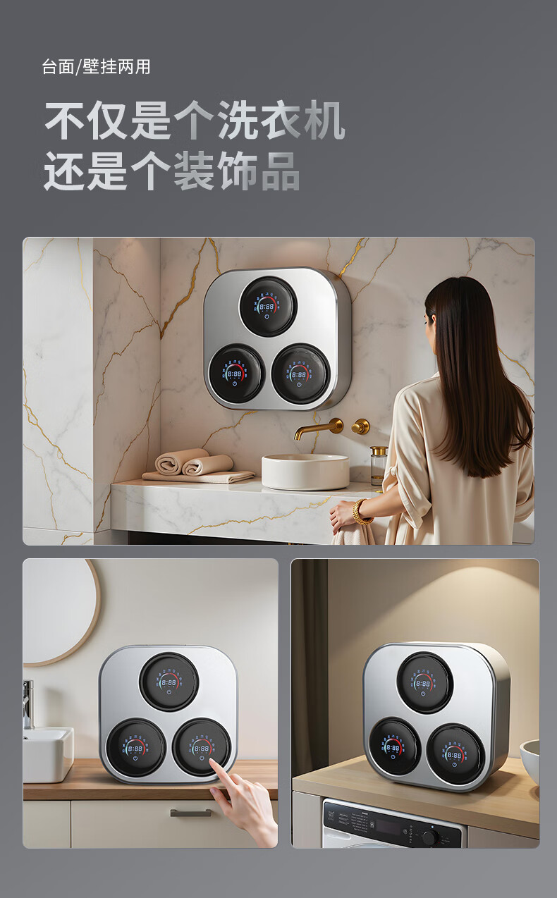 万家能壁挂式三仓舱内衣洗衣机全自动内衣内裤专用洗衣机迷你小型三合一洗袜子机高温洗烘一体消毒清洗机 壁挂【灰黑】三仓智能高温烘洗+新风除异味+不锈钢胆