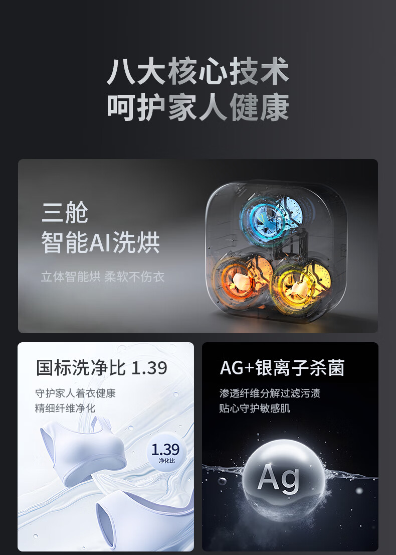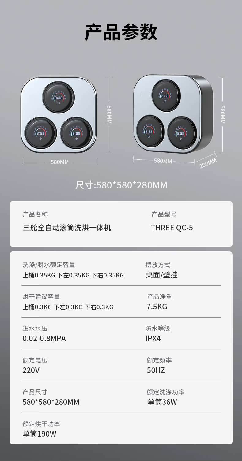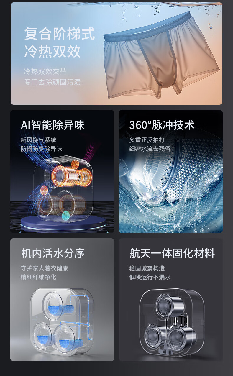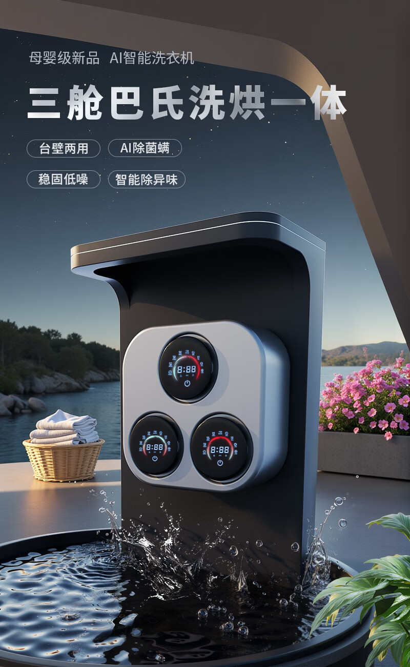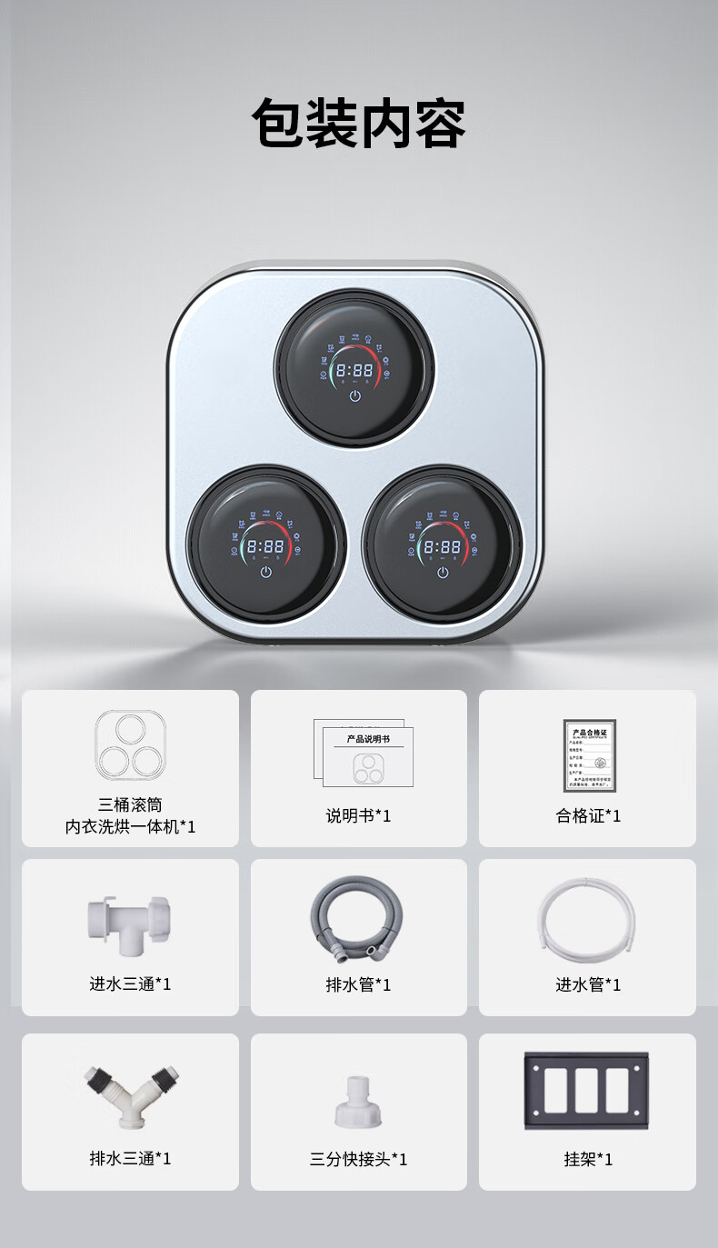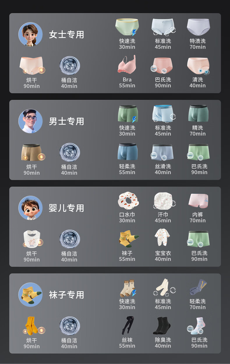 万家能壁挂式三仓舱内衣洗衣机全自动内衣内裤专用洗衣机迷你小型三合一洗袜子机高温洗烘一体消毒清洗机 壁挂【灰黑】三仓智能高温烘洗+新风除异味+不锈钢胆