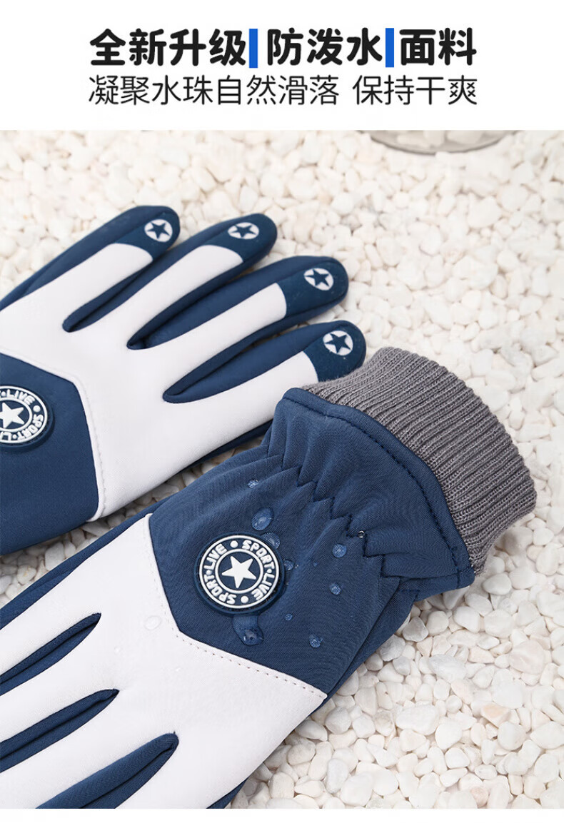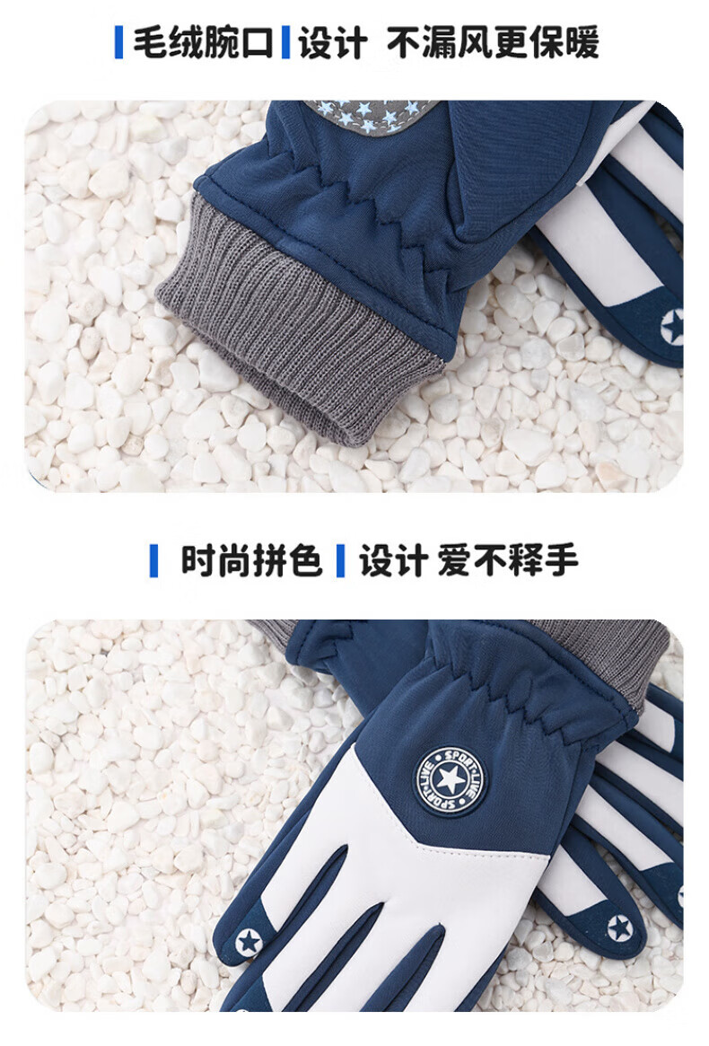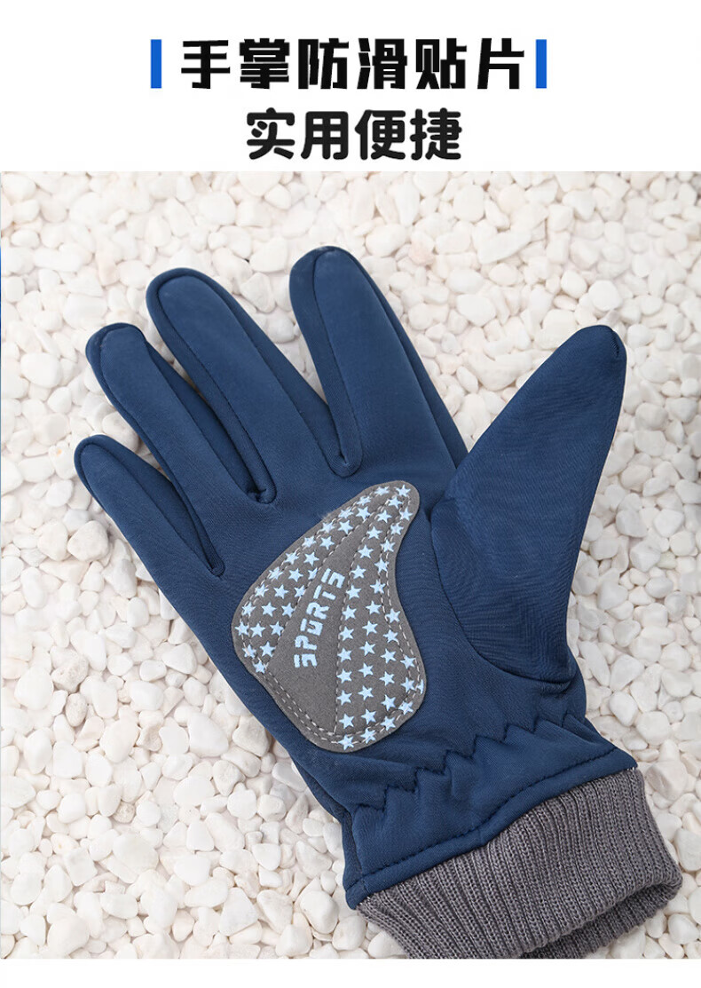 DEATKN德国儿童保暖手套加绒防泼水防风防寒秋冬季4-13岁男女童户外骑行 藏蓝色儿童圆标_防风防水保暖德国品牌 L