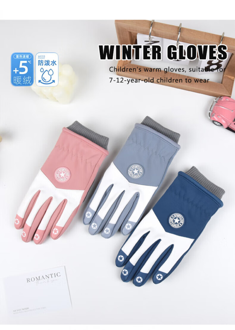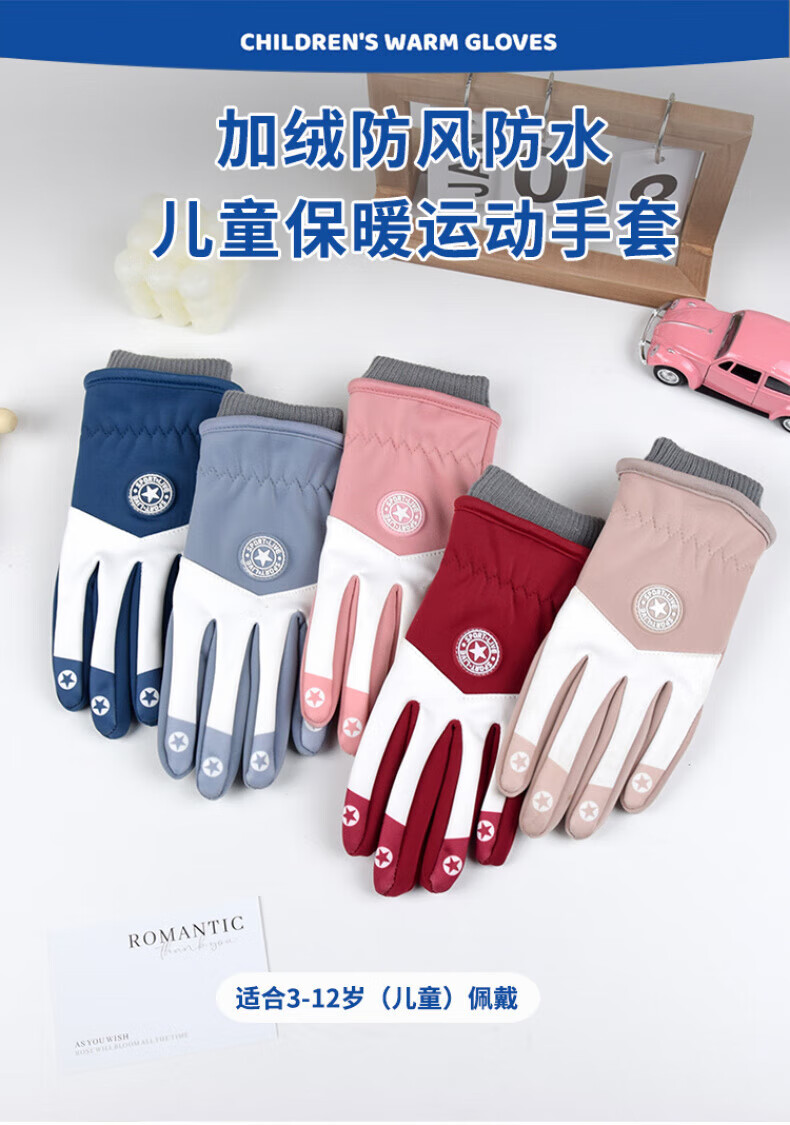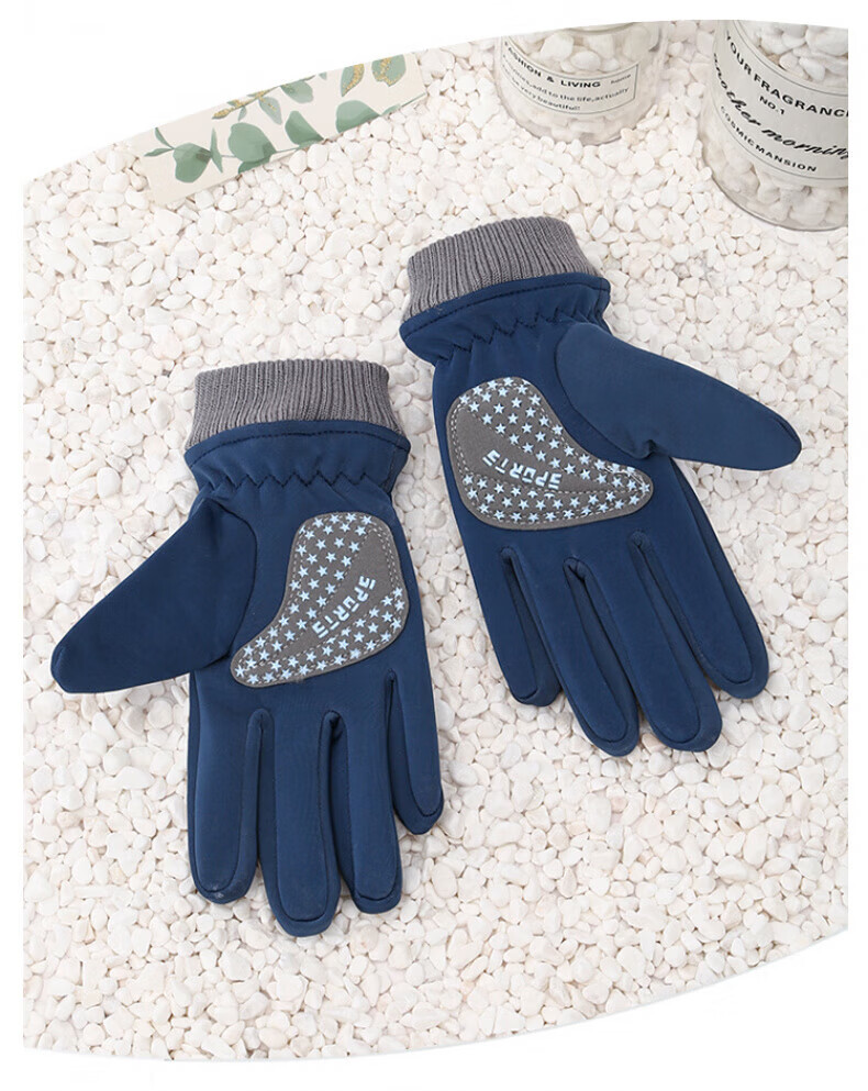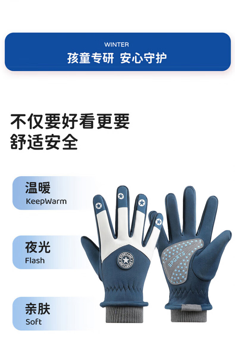 DEATKN德国儿童保暖手套加绒防泼水防风防寒秋冬季4-13岁男女童户外骑行 藏蓝色儿童圆标_防风防水保暖德国品牌 L