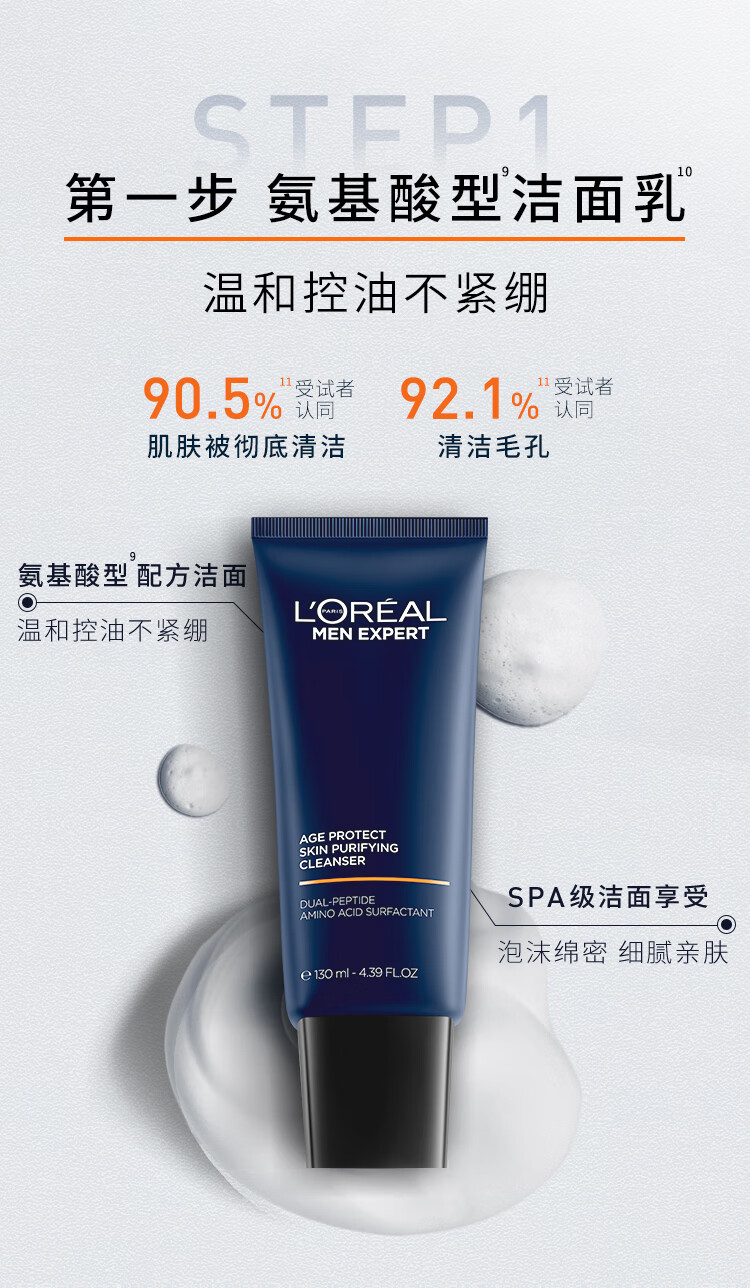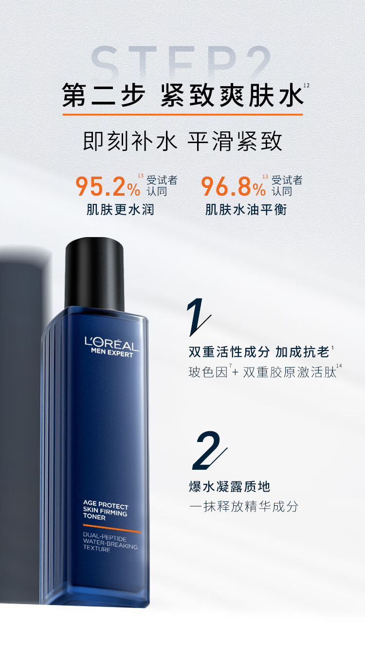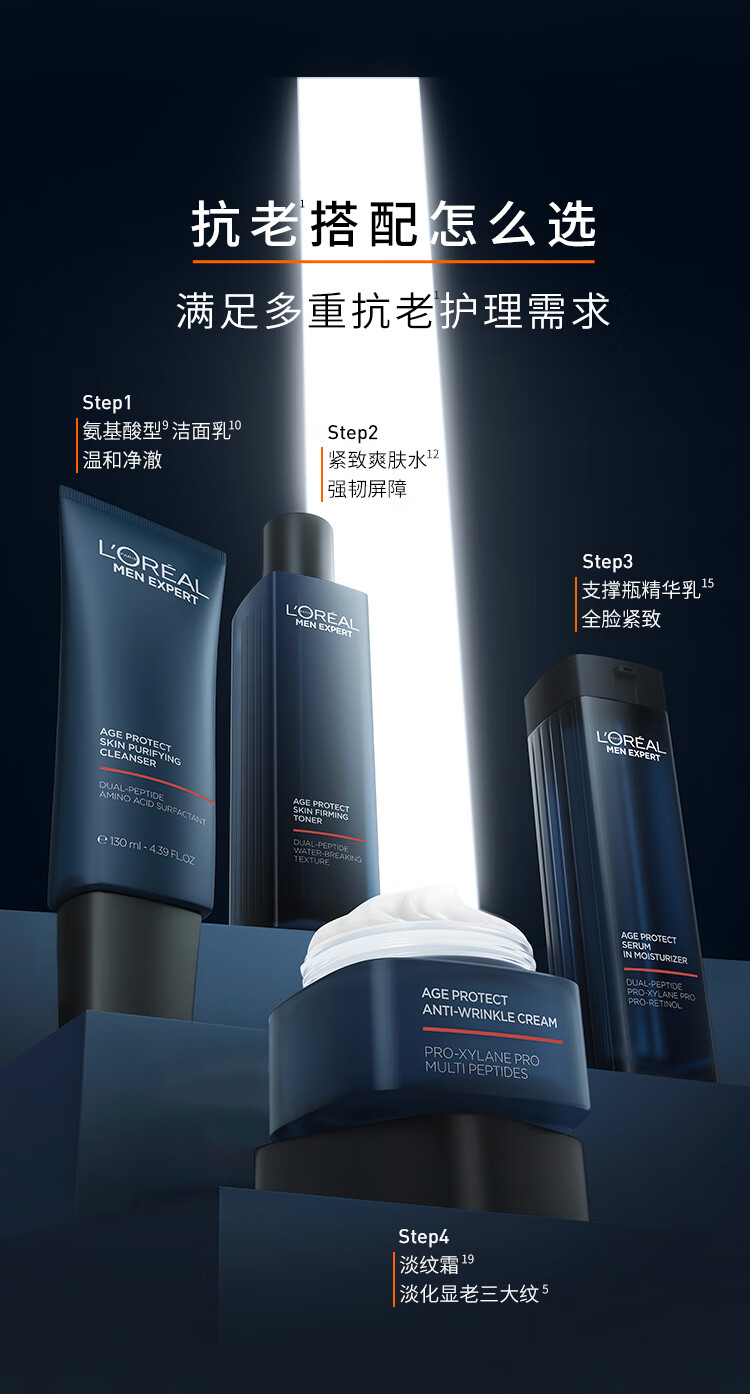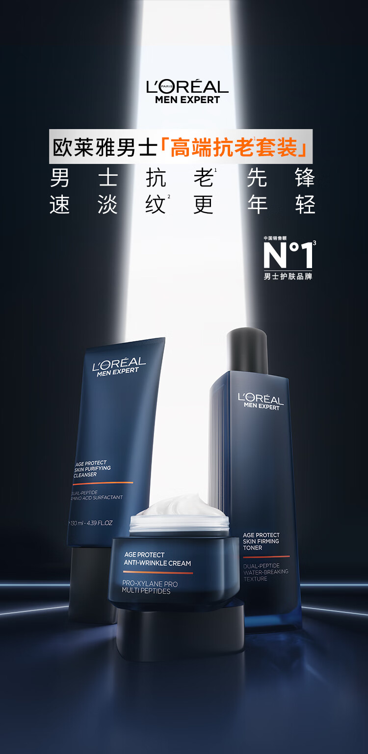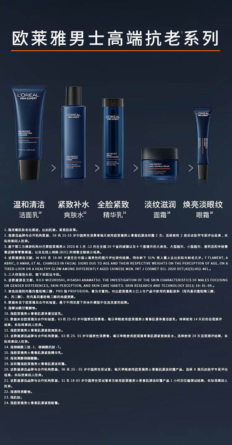 欧莱雅男士青春肌源洗面奶水霜三件套装抗皱紧致护肤品高档礼物礼盒男友