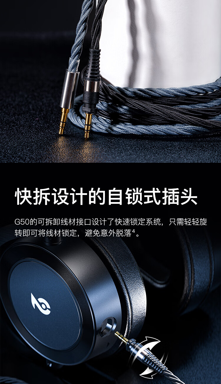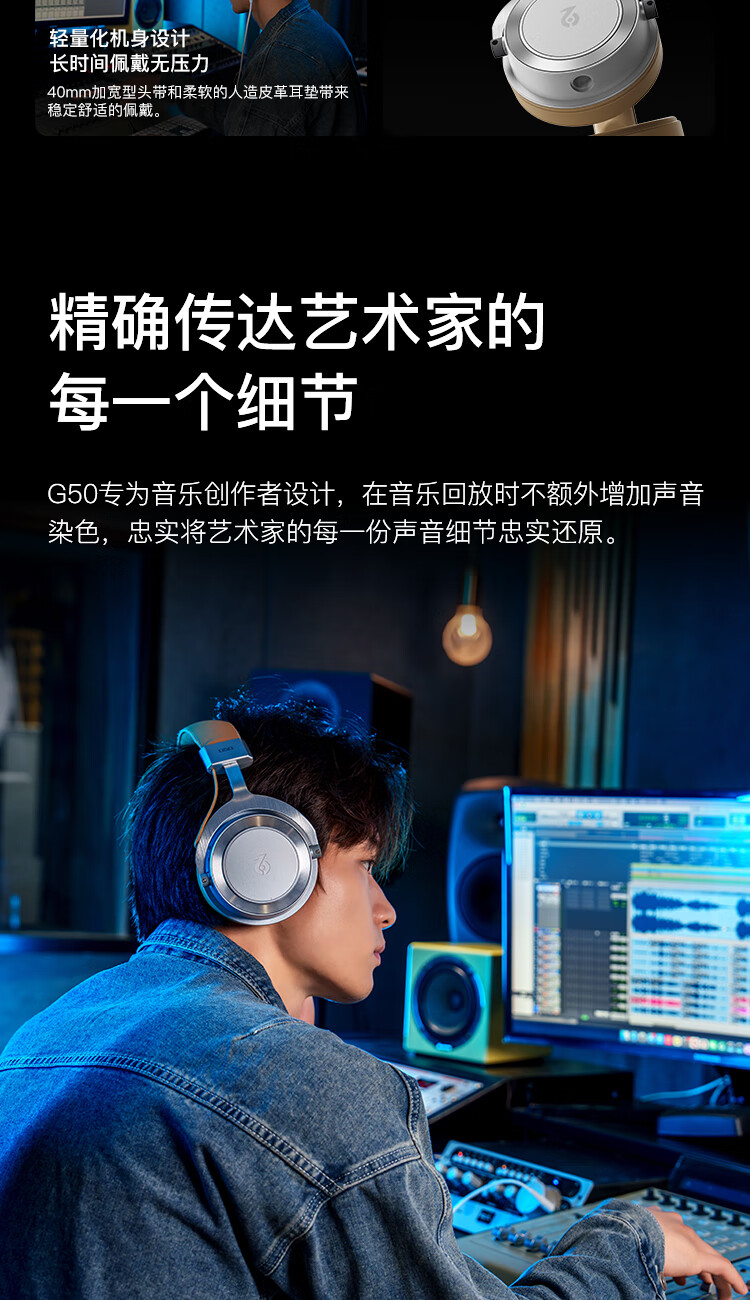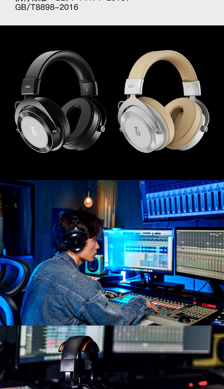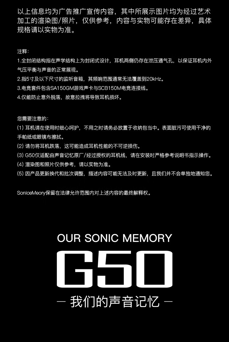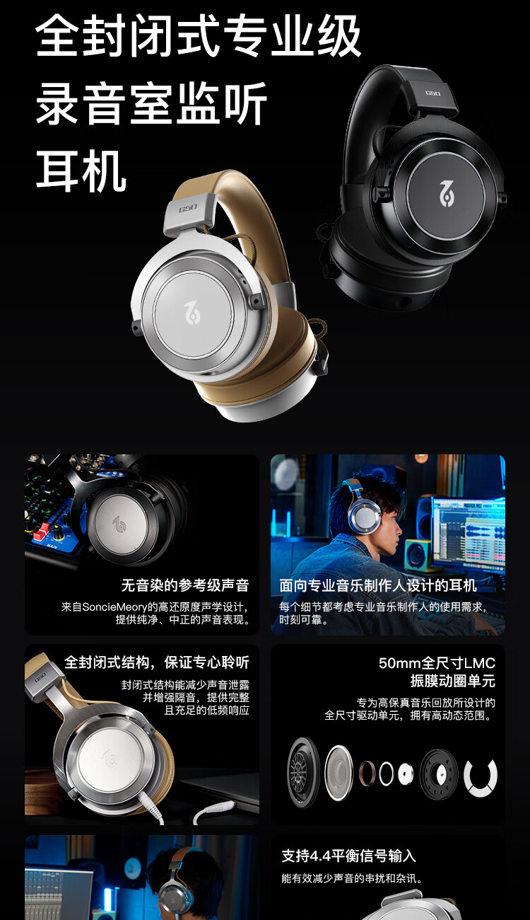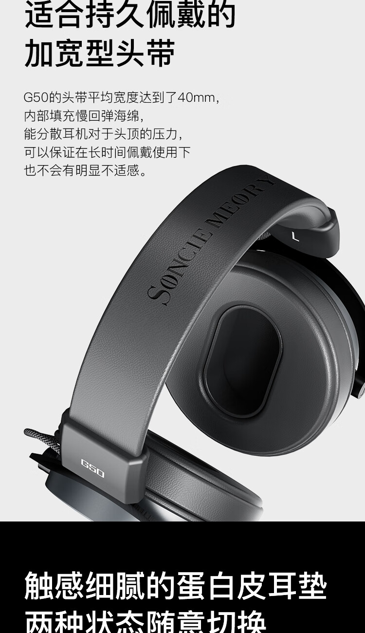 SONCIEMEORY声音记忆 G50头戴式专业监听耳机高音质HiFi升级线电竞游戏专用有线音乐耳机 标配:黑色【现货】