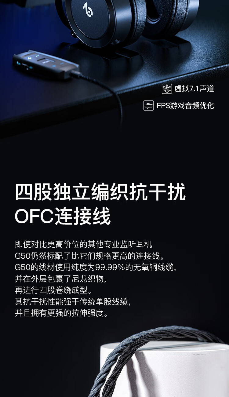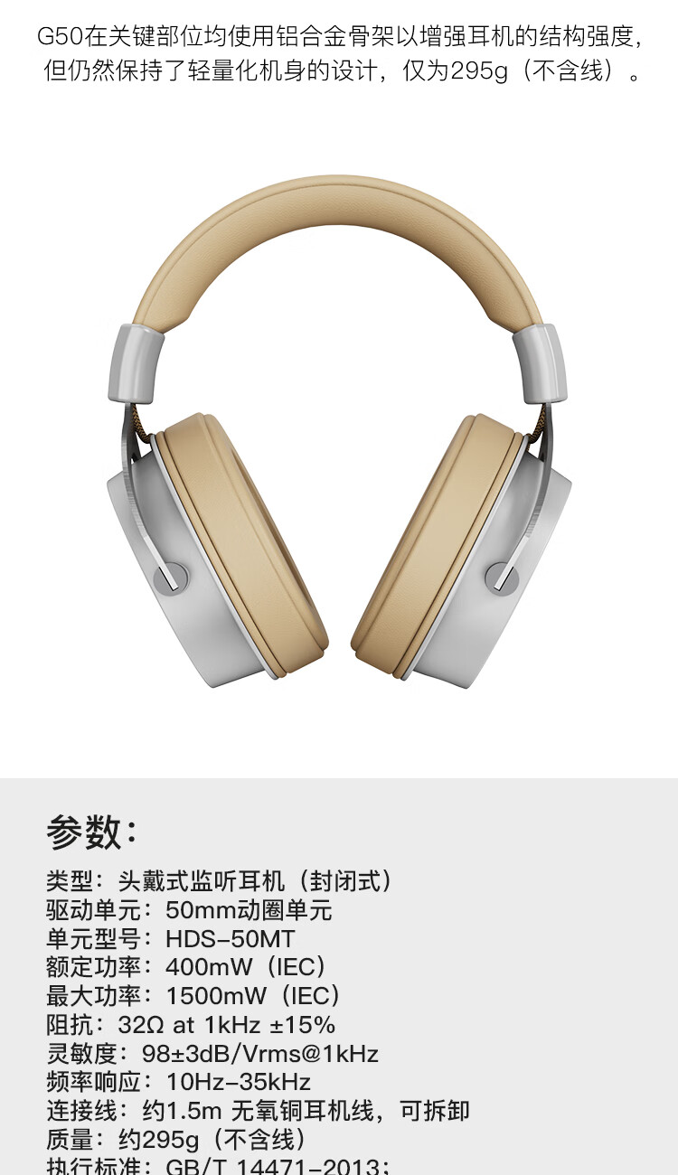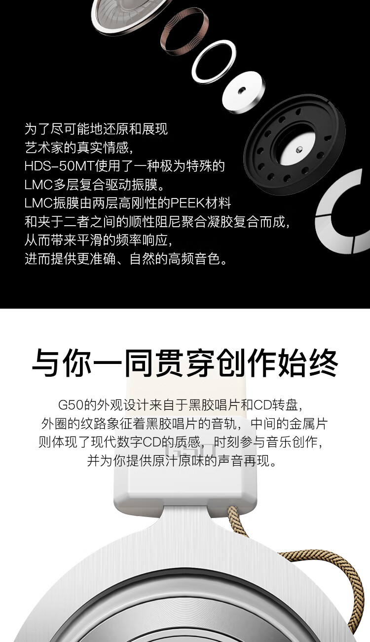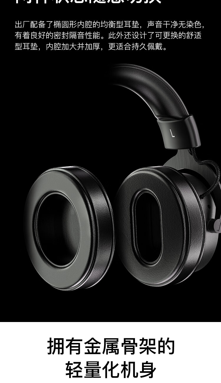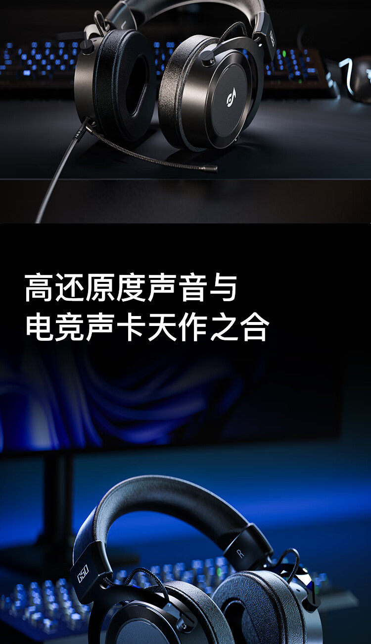 SONCIEMEORY声音记忆 G50头戴式专业监听耳机高音质HiFi升级线电竞游戏专用有线音乐耳机 标配:黑色【现货】