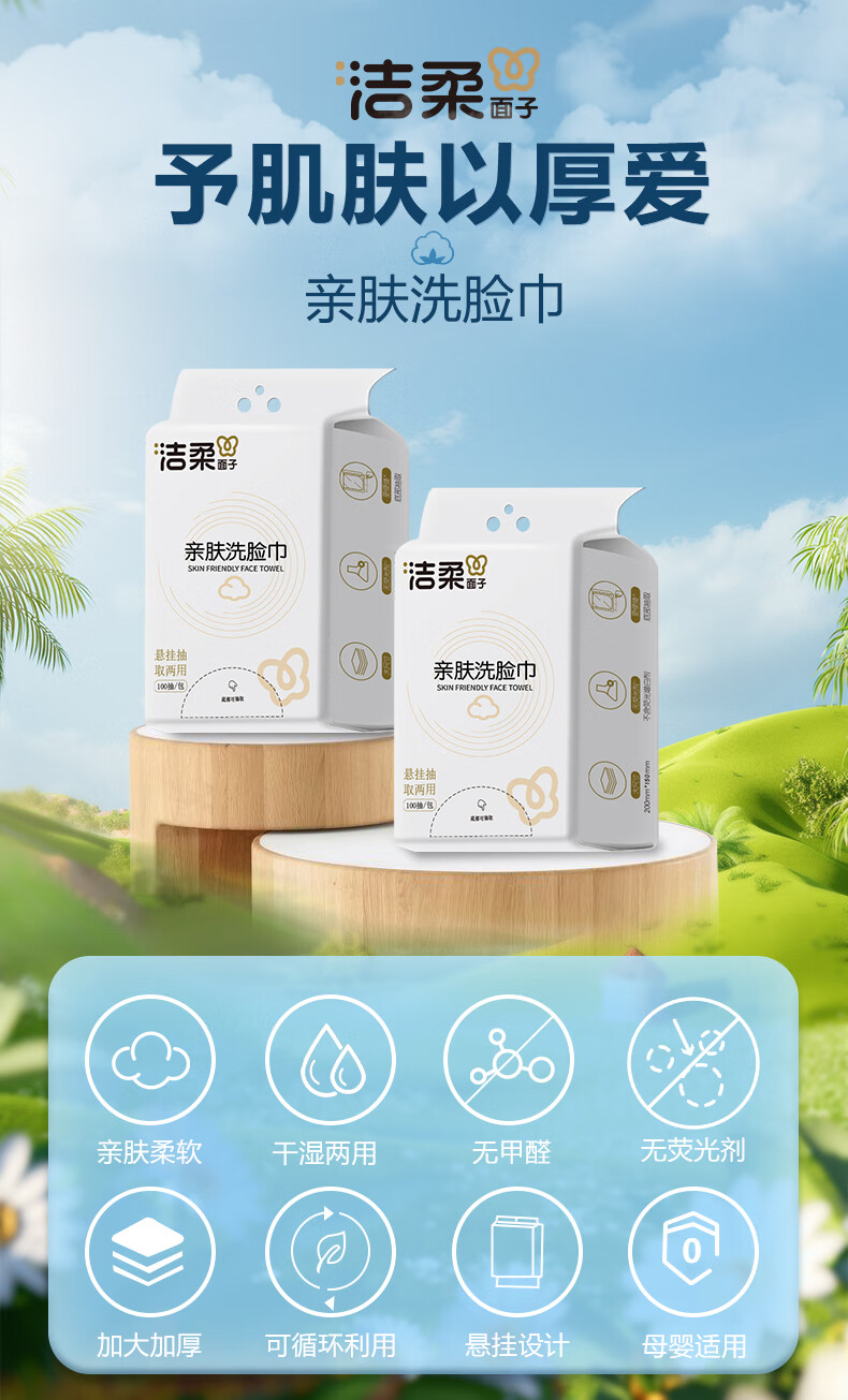 洁柔(C&S)洗脸巾挂抽两用柔软平纹母婴可用卸妆洁面擦脸巾 【柔软平纹】100抽*2