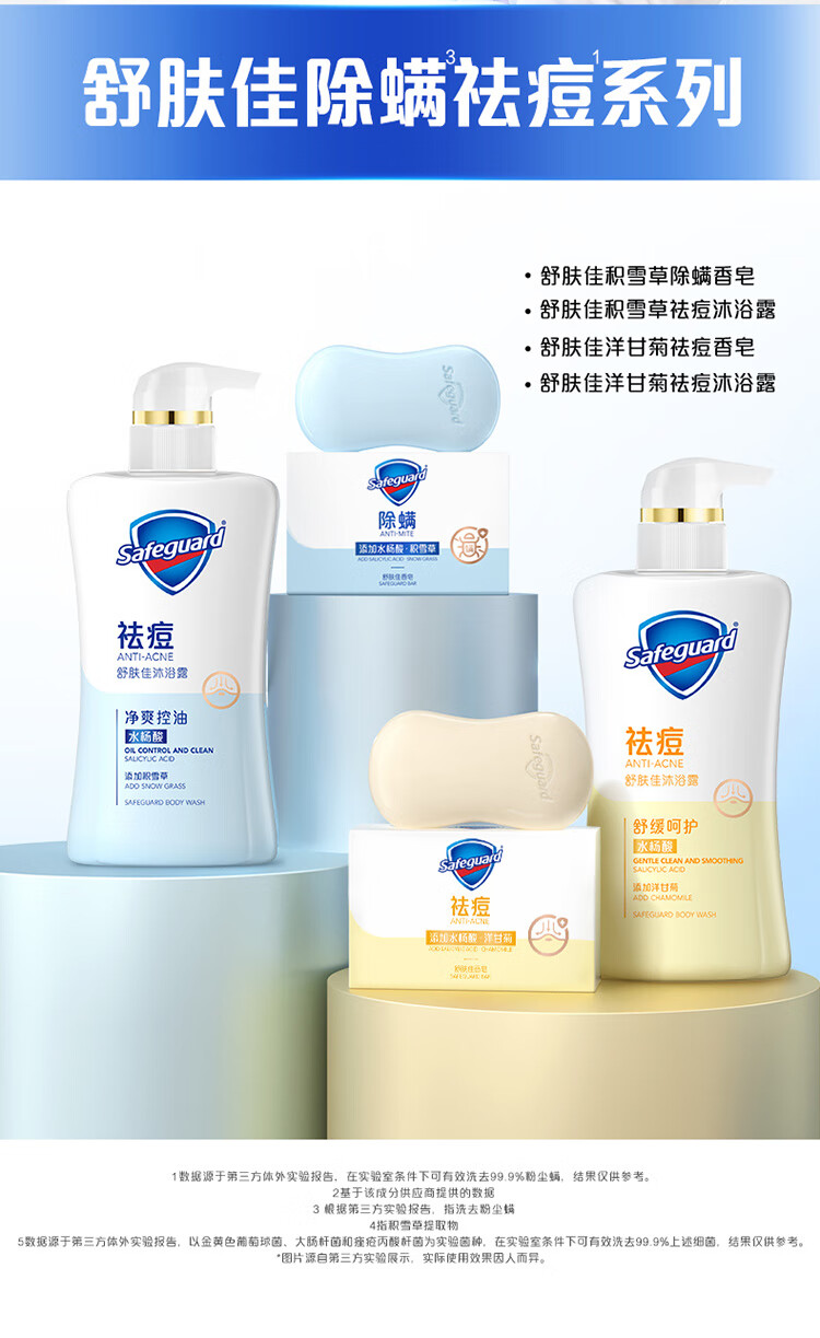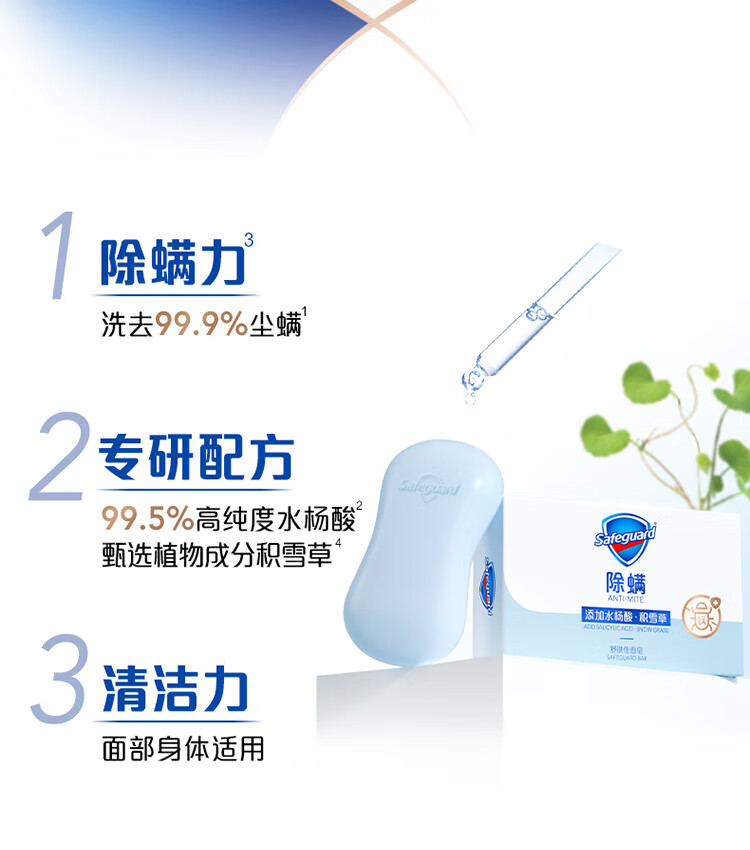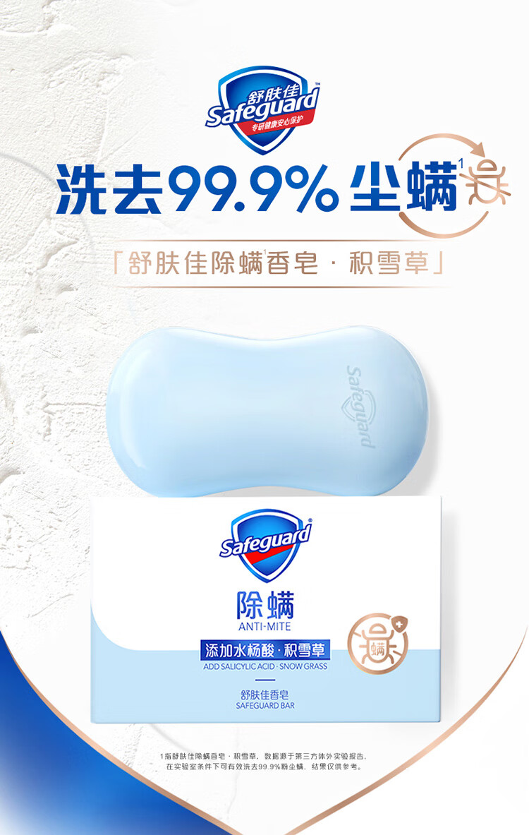 舒肤佳除螨香皂积雪草108g含水杨酸 去油清爽肥皂 洗澡洗脸男女士通用