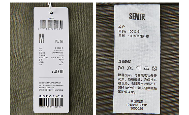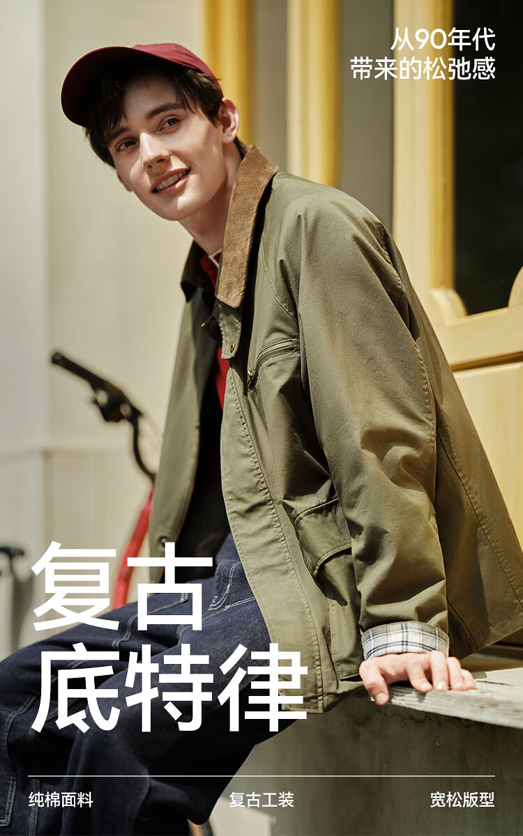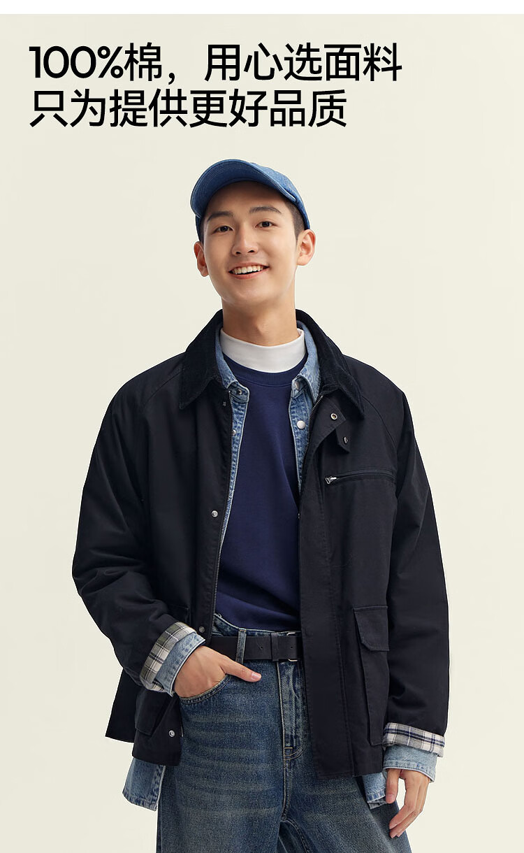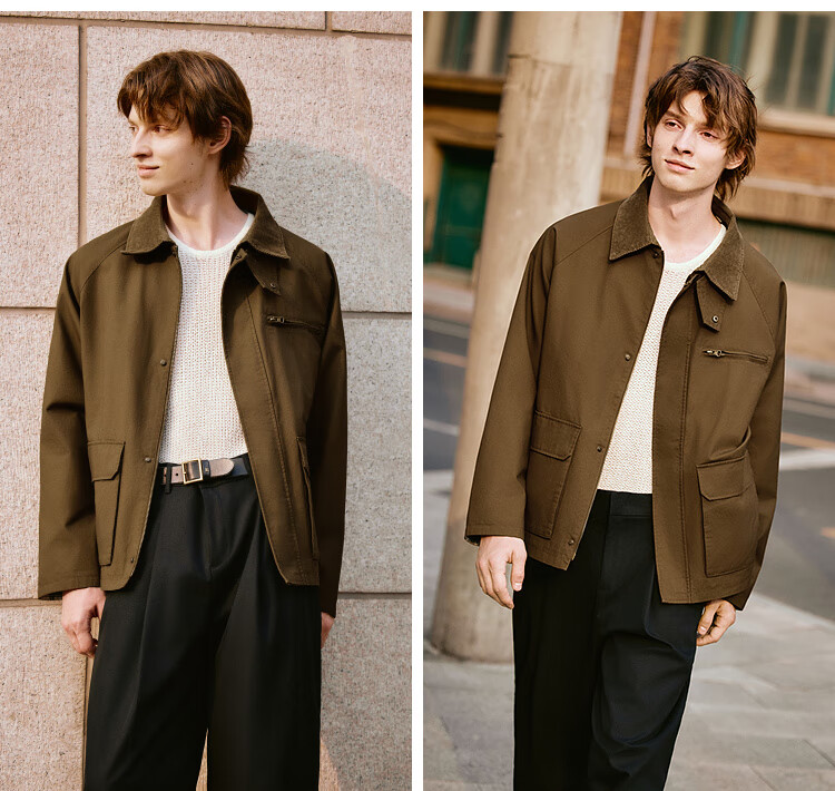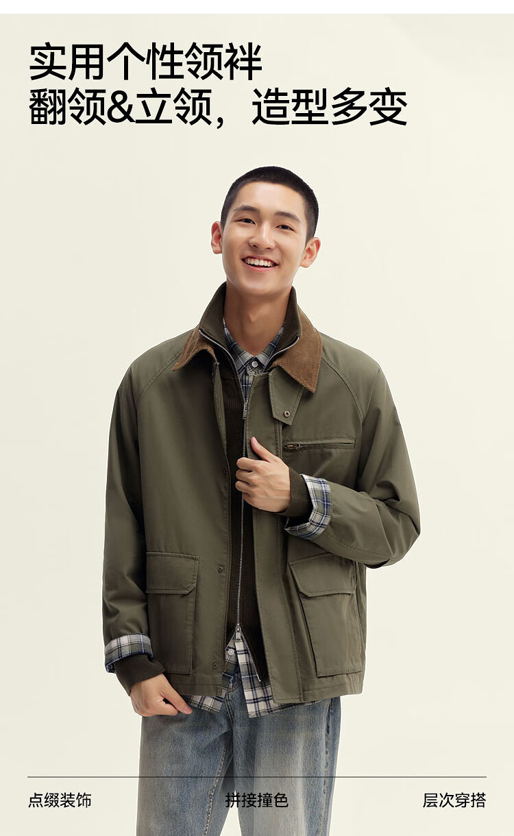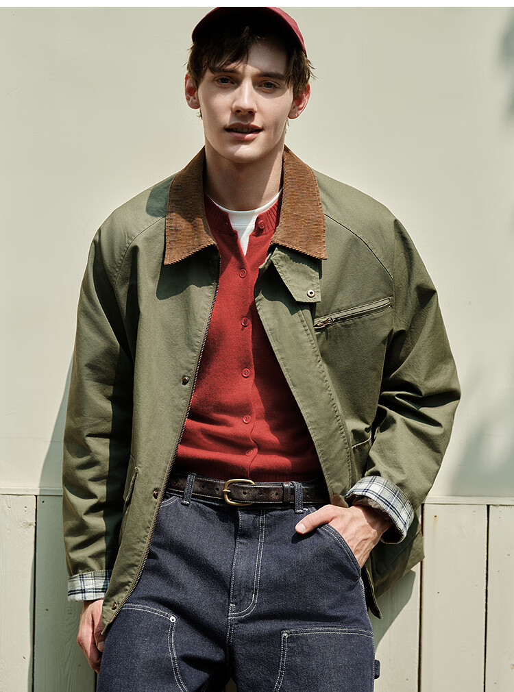 森马(Semir)[纯棉]夹克男巴恩风工装外套男灯芯绒夹克秋宽松上衣101524108201