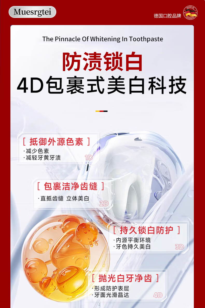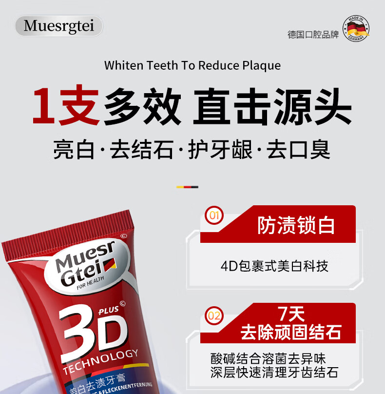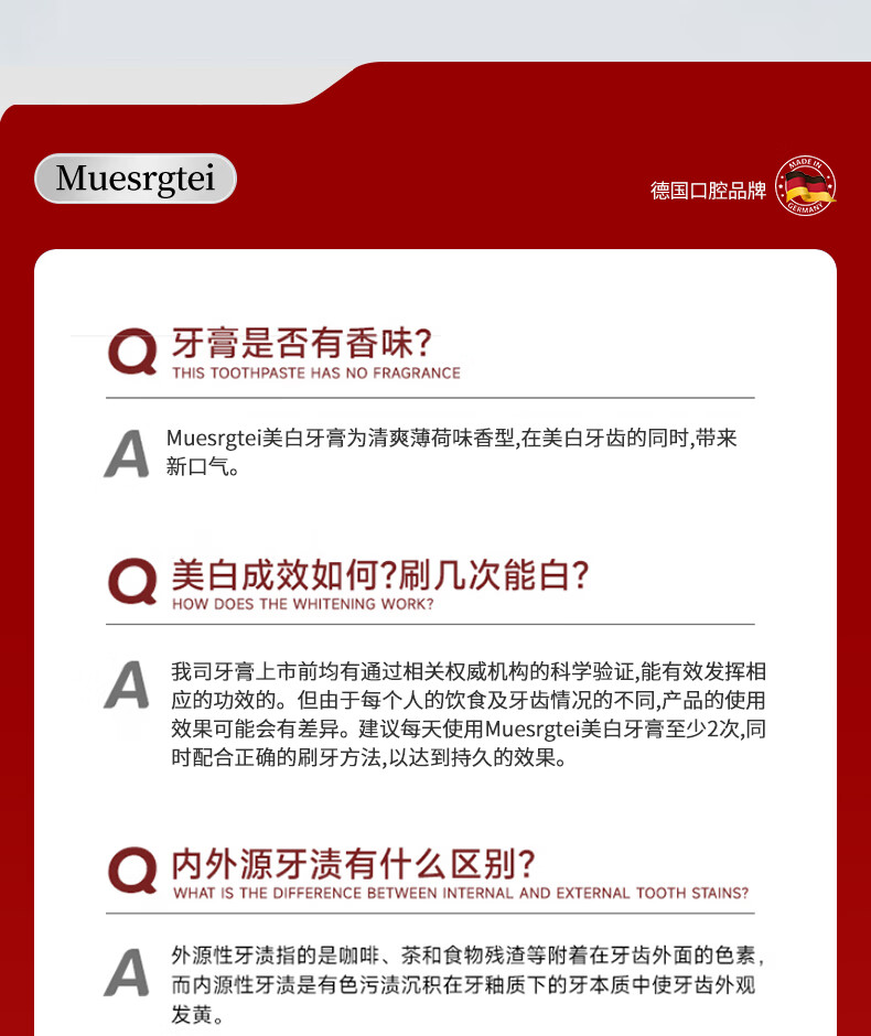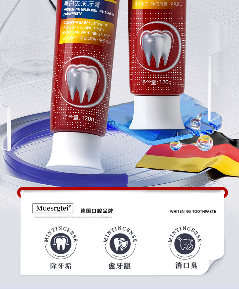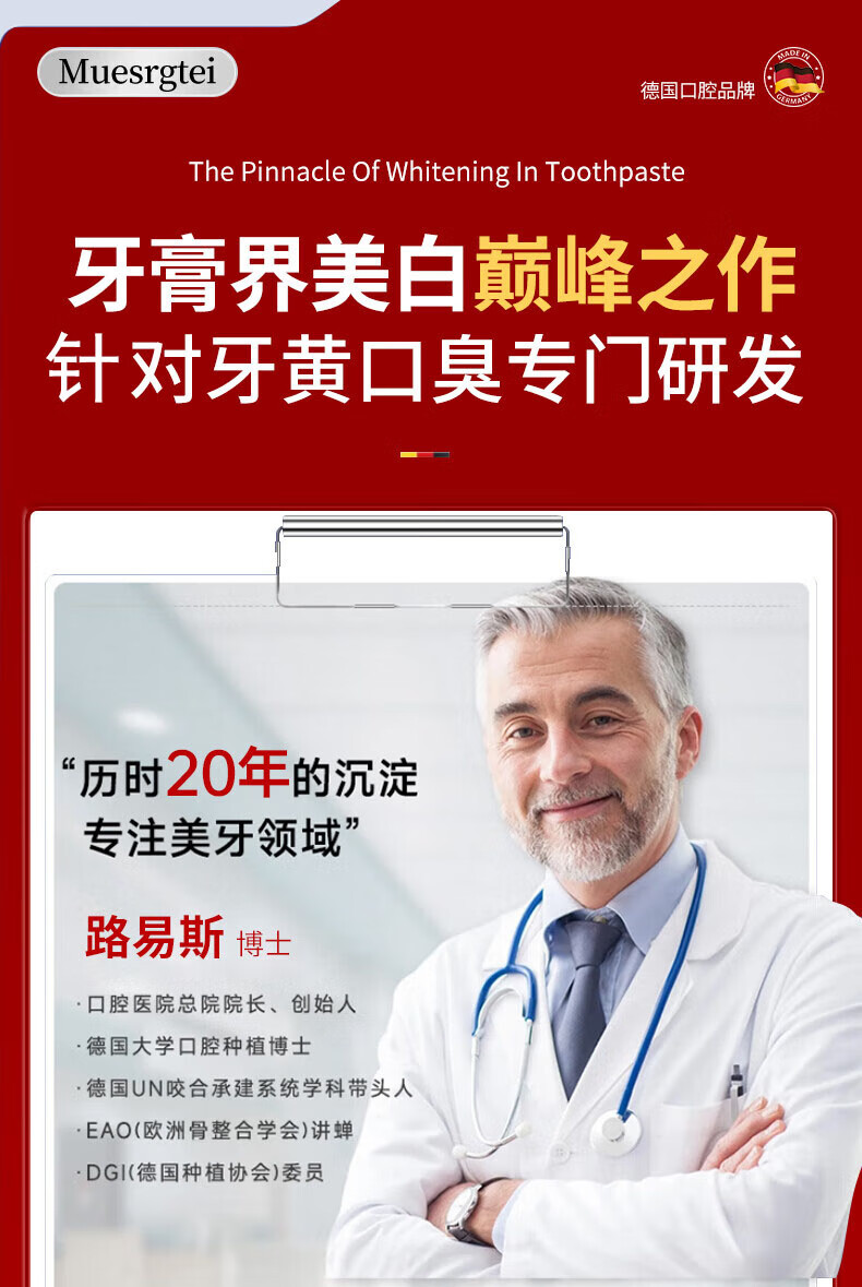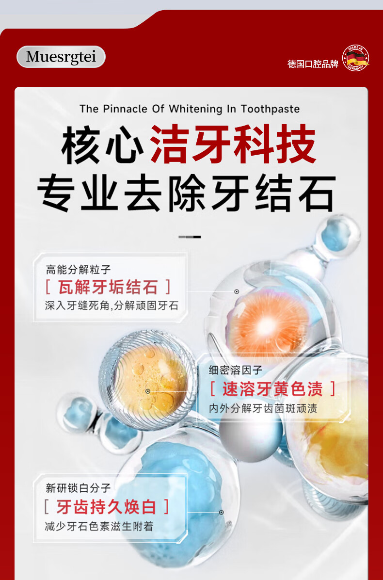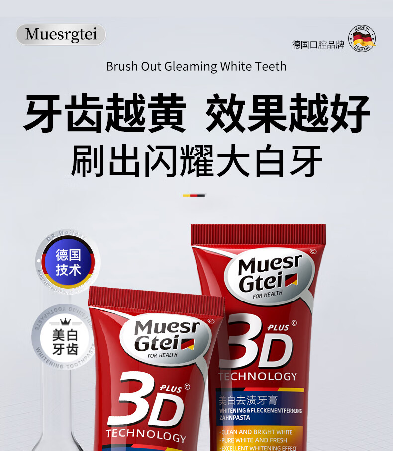 MUESRGTEI德国进口美白牙膏去口臭去黄去牙渍去烟渍牙垢护龈十大知名品牌