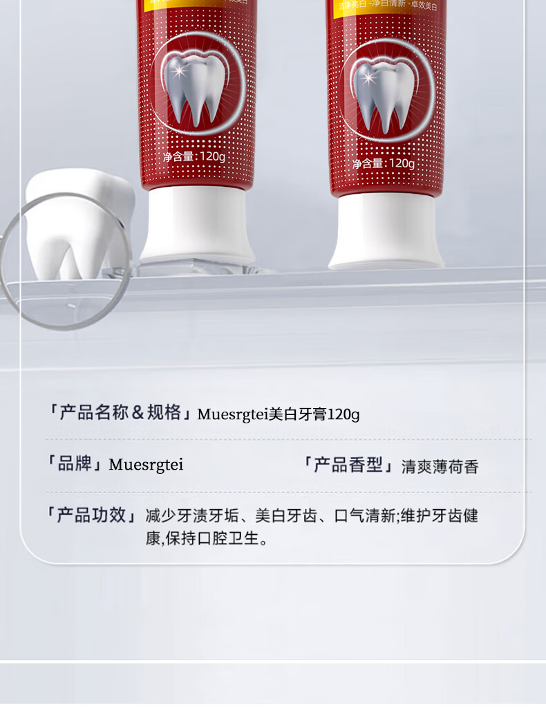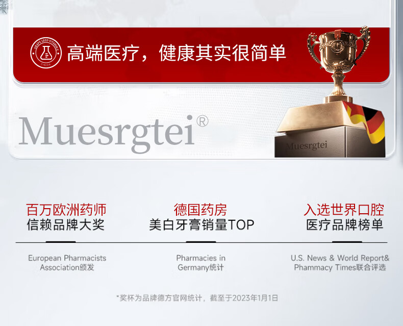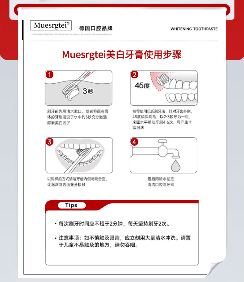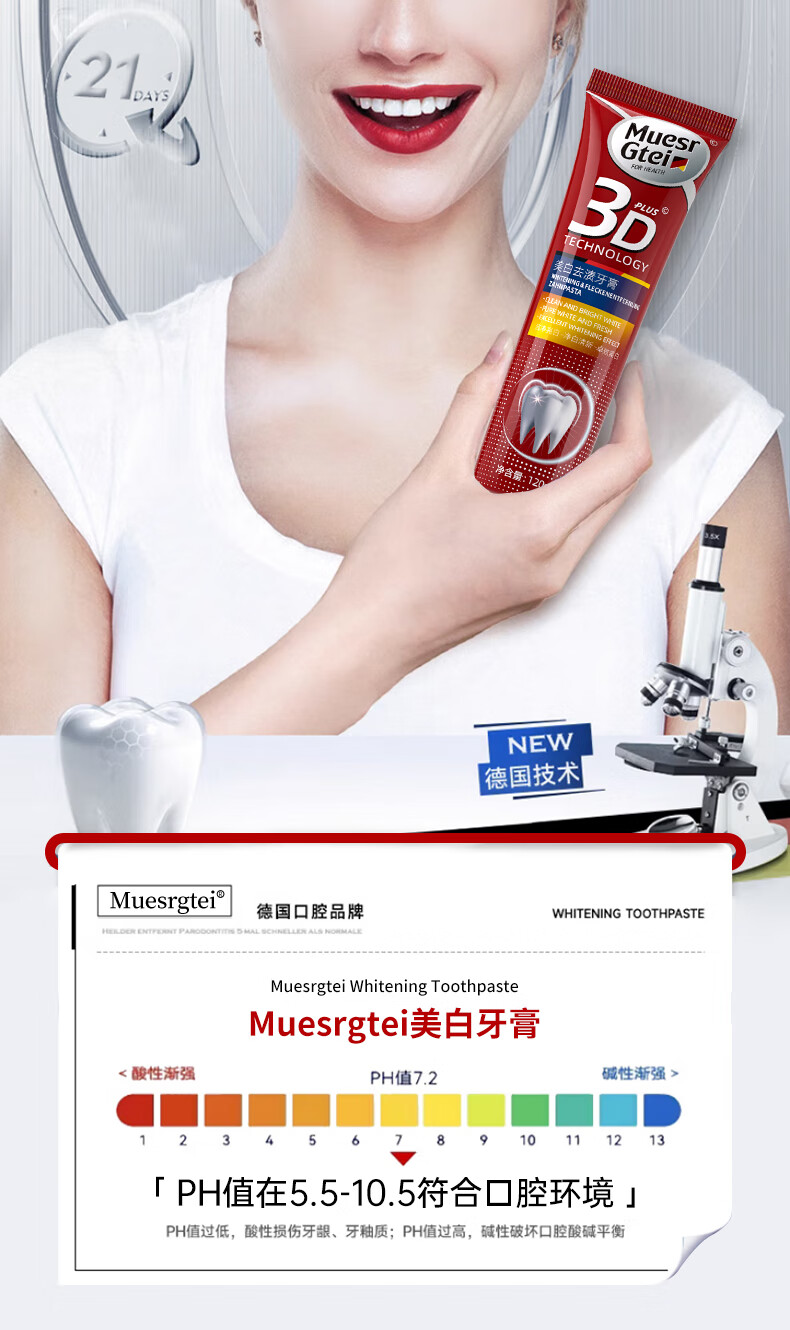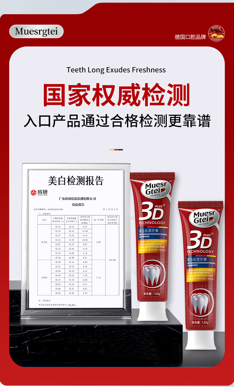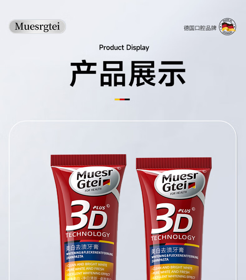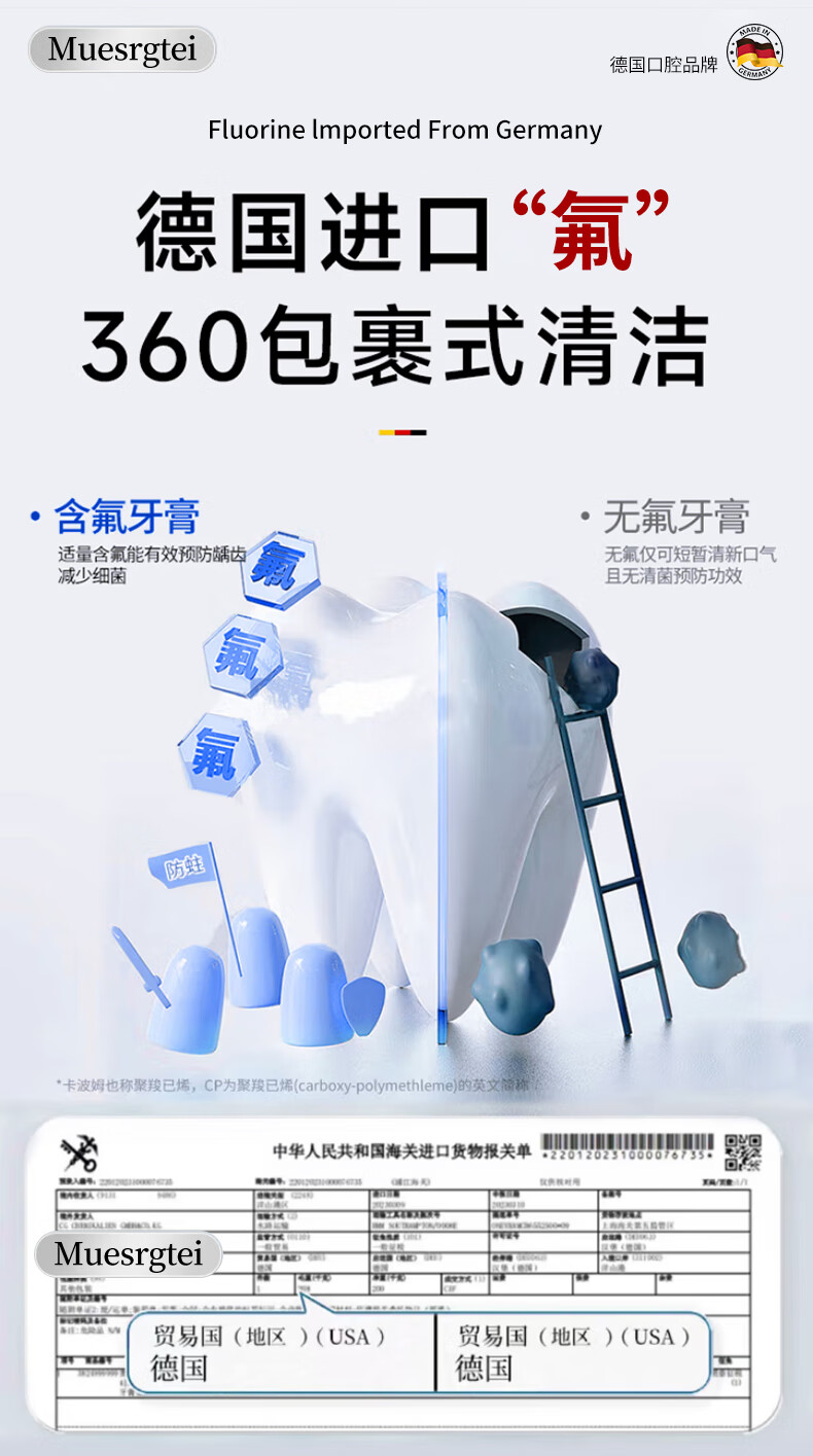 MUESRGTEI德国进口美白牙膏去口臭去黄去牙渍去烟渍牙垢护龈十大知名品牌