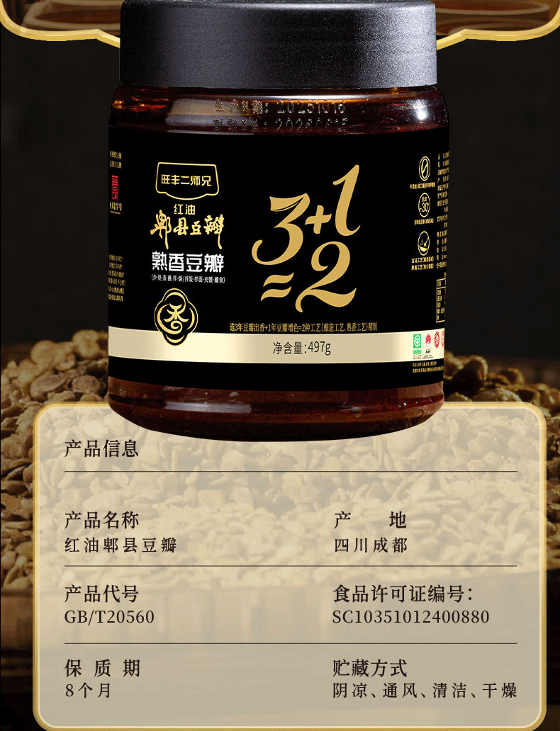 旺丰郫县豆瓣酱减盐30%豆瓣0添加正宗四川家用调料辣椒酱料 【减盐30%】郫县豆瓣酱497g*2瓶