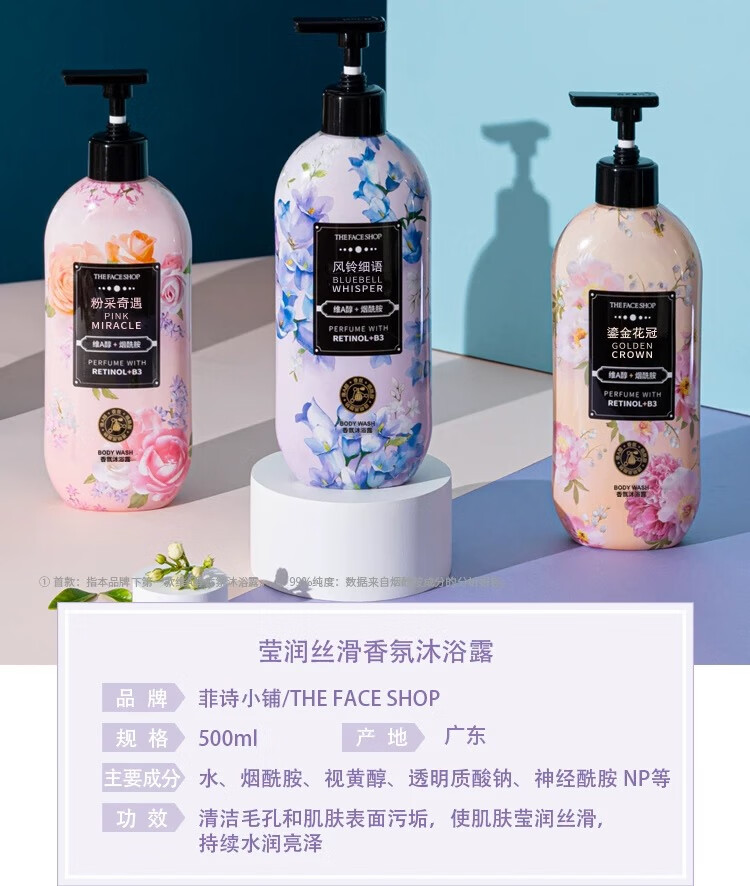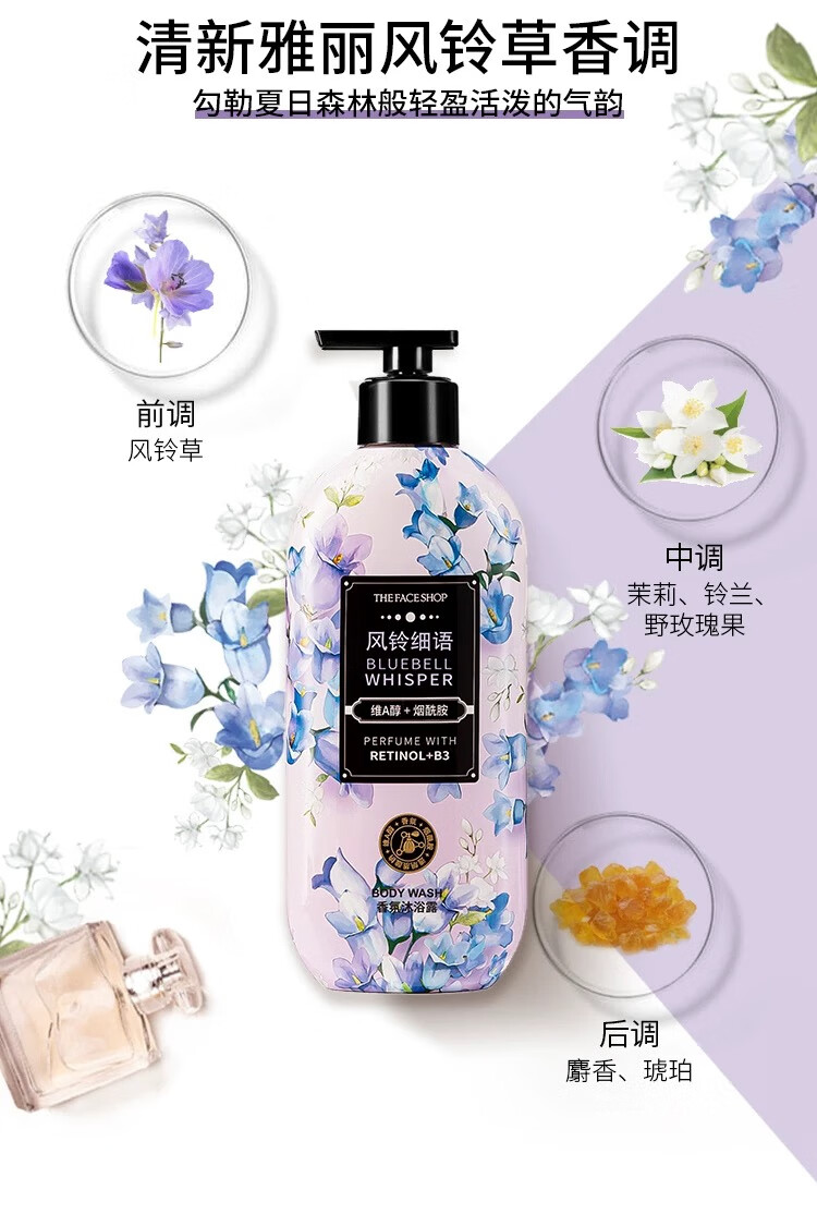 菲诗小铺 THEFACESHOP盈润丝滑香氛沐浴露500ml(风铃细雨)【临期清仓】