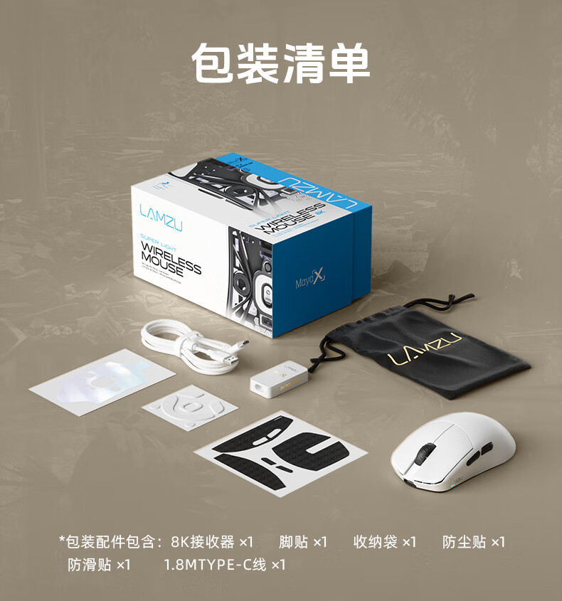 LAMZU兰族 Maya X 无畏契约 万金油模具 轻量化无线鼠标 电竞游戏鼠标 瓦罗兰特 CS2支持8Khz赛事同款 玛雅黑【8K接收器】