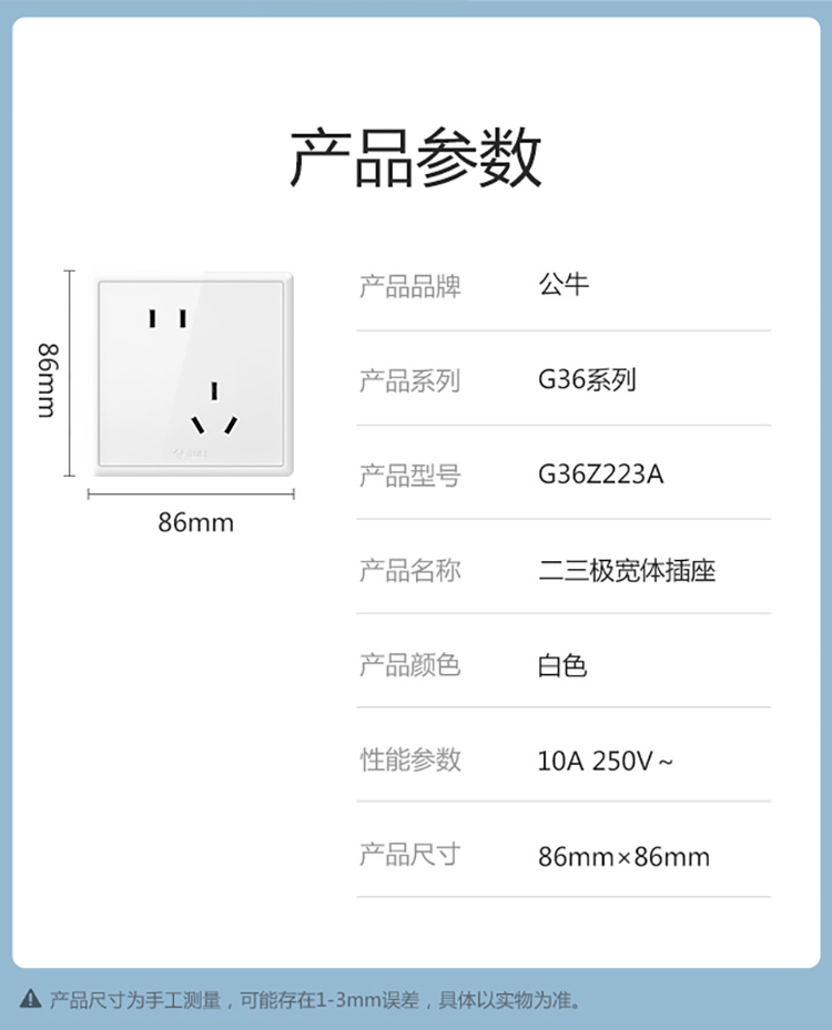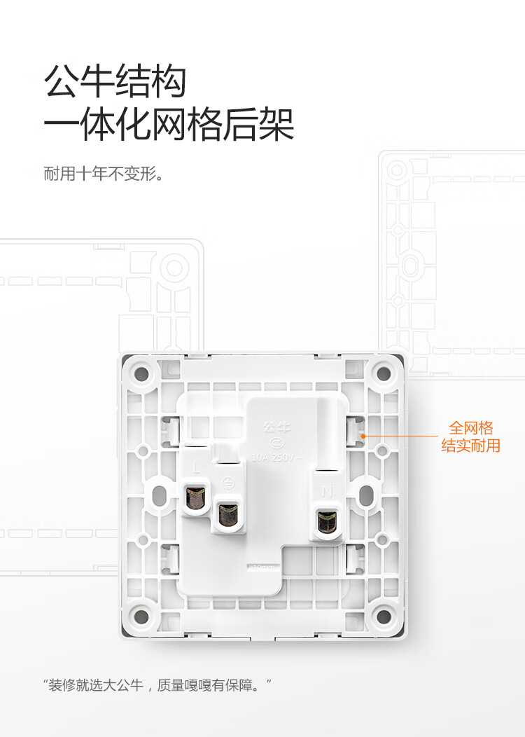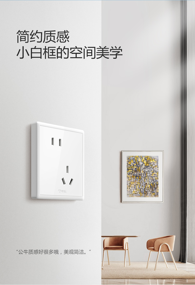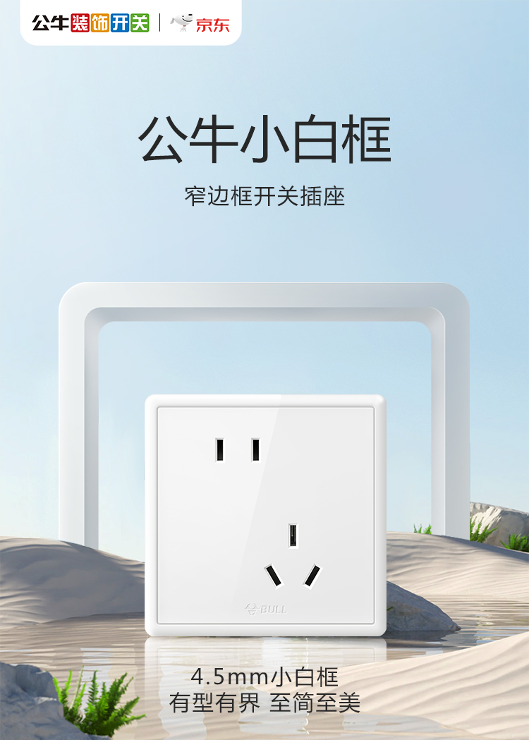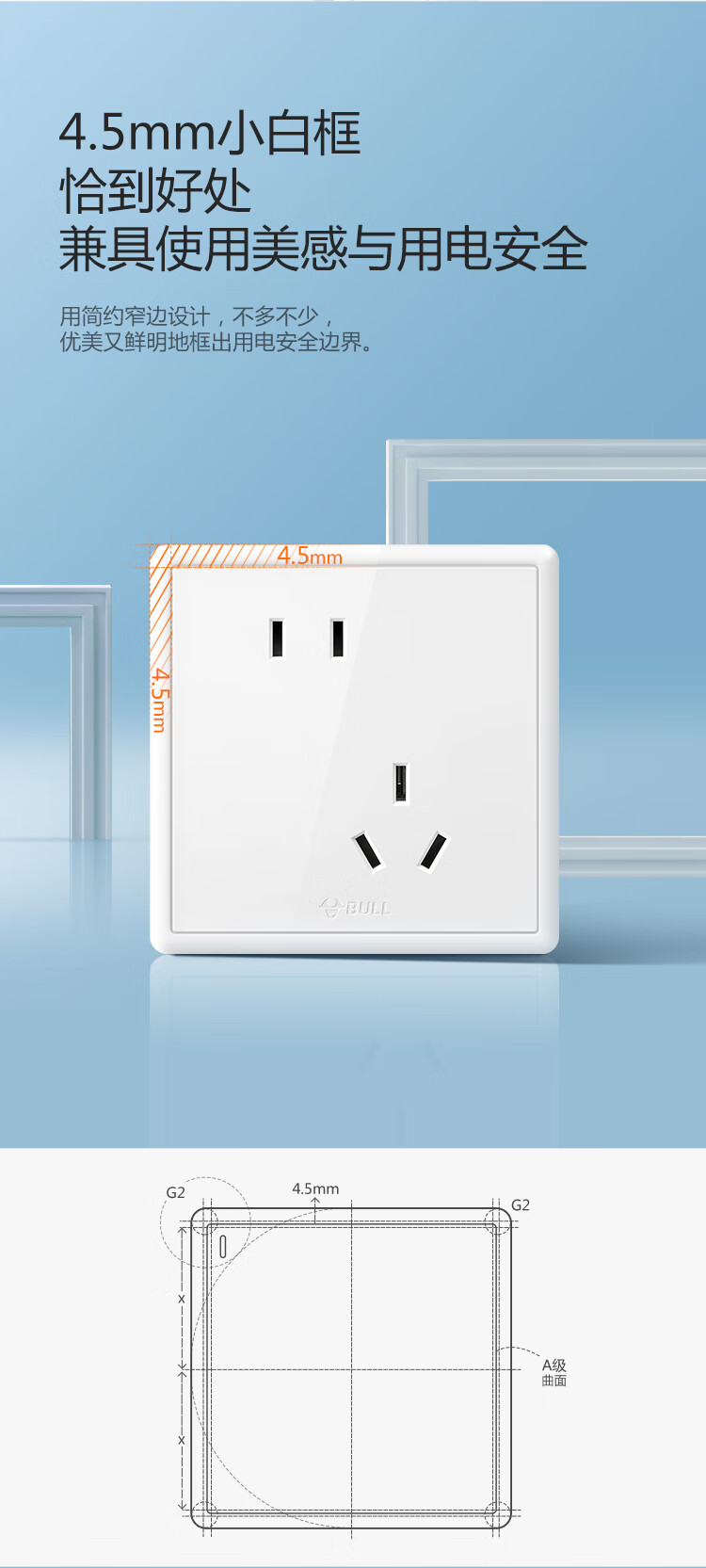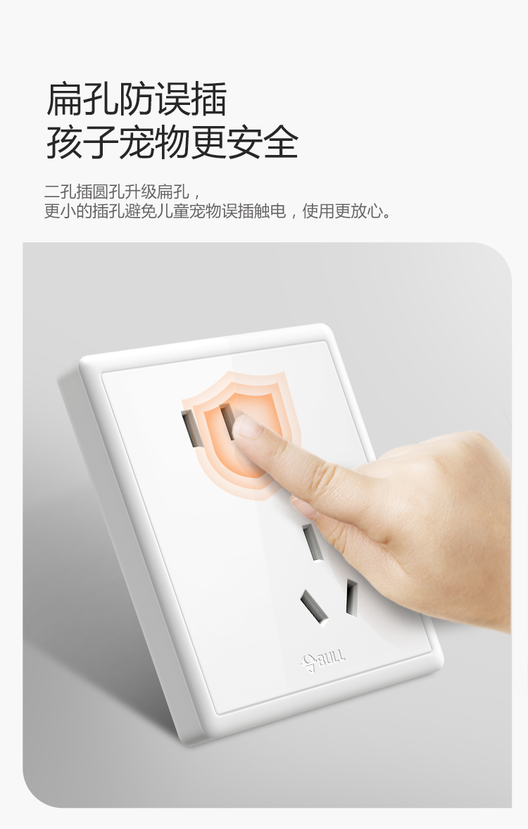 公牛(BULL)开关插座G36系列10A斜五孔国民家居小白框插座G36Z223A 白色暗装