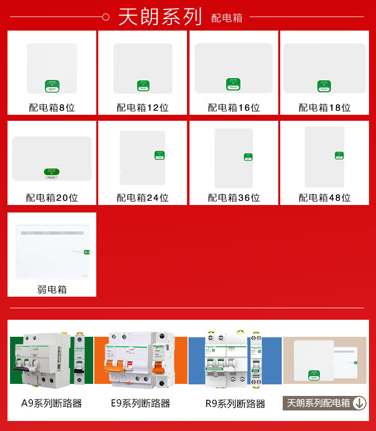 施耐德电气 配电箱空开强电箱白色12回路 家用暗装配线箱套装天朗系列TLA12B