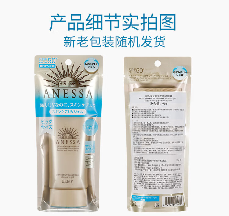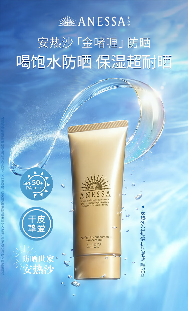 安热沙金灿倍护防晒啫喱90g高倍防晒防晒霜妆前防晒通勤无忧学生军训