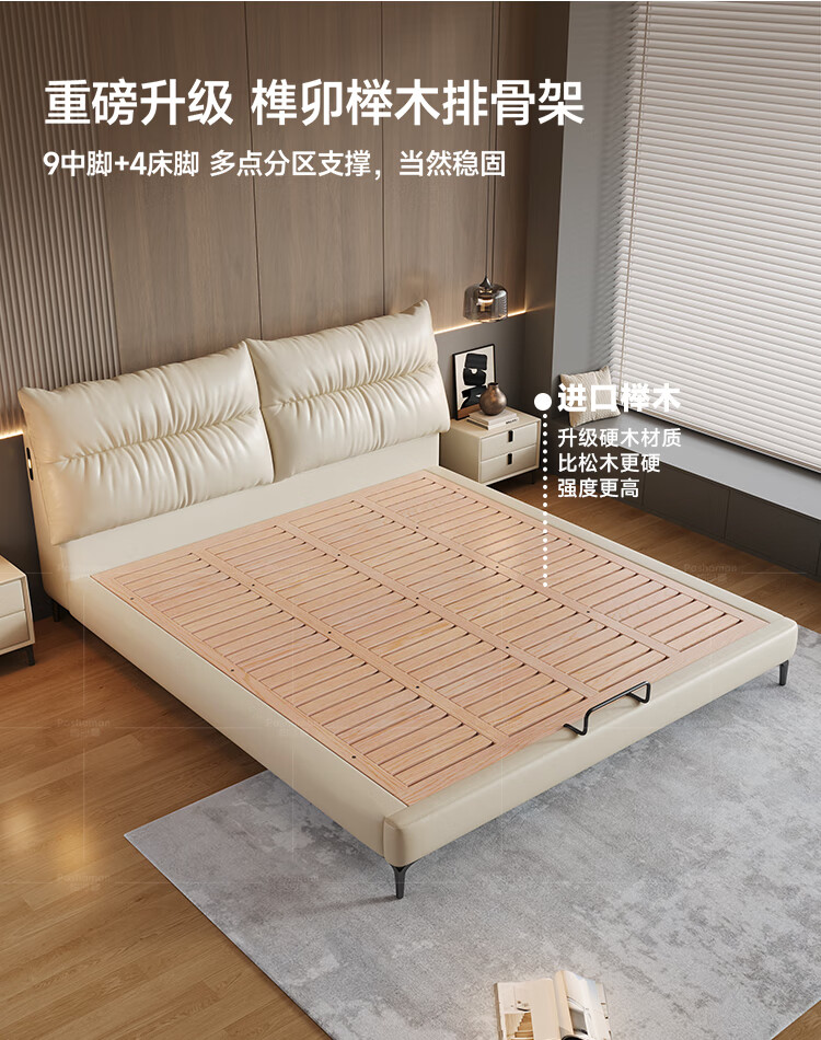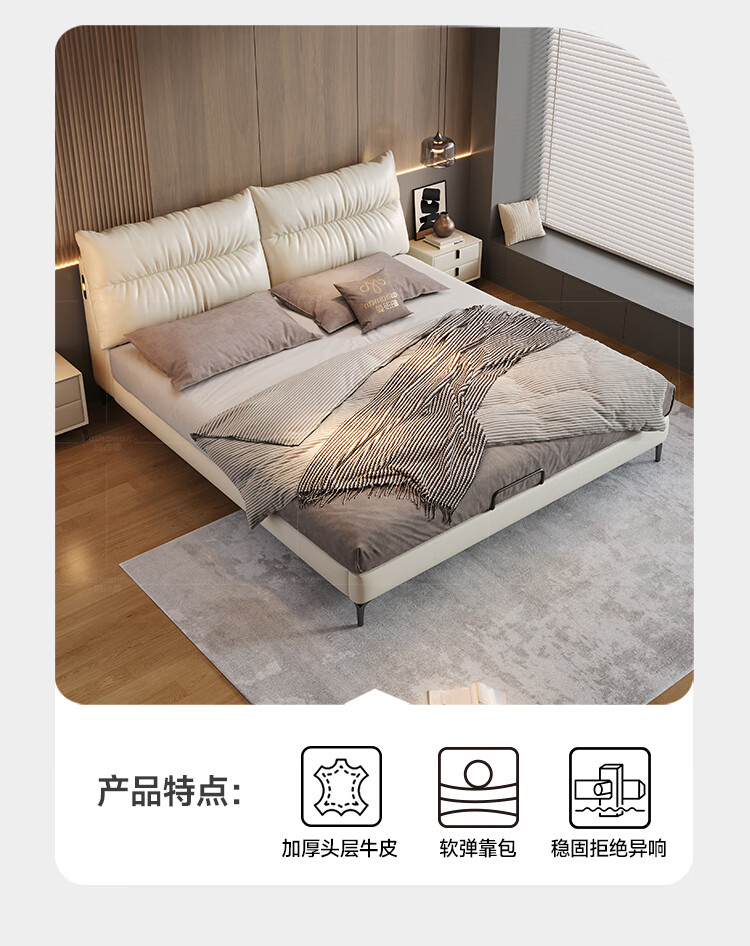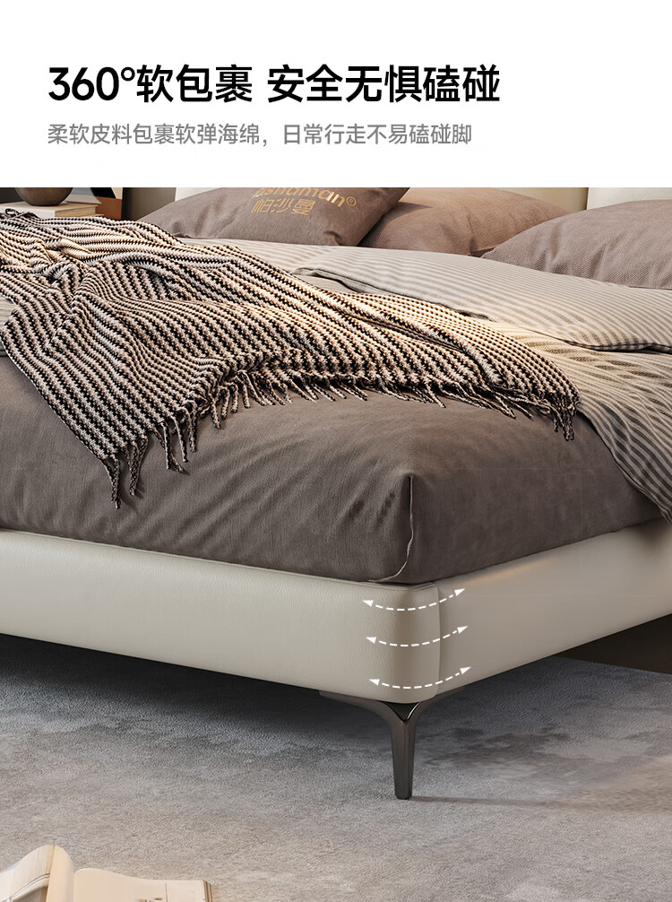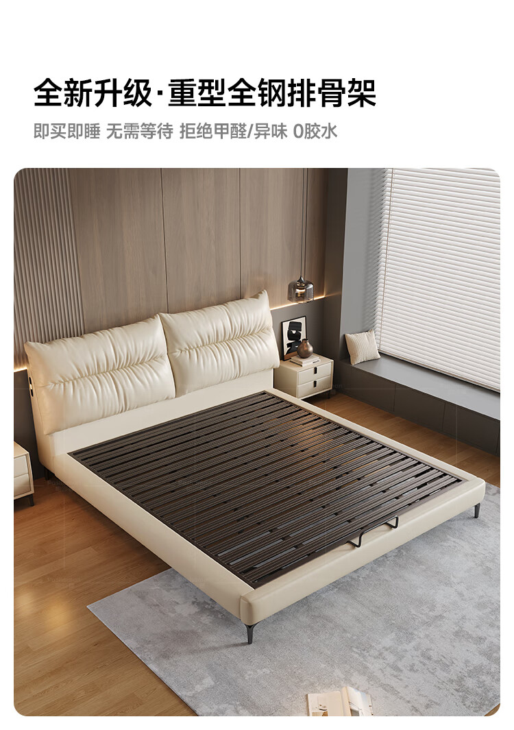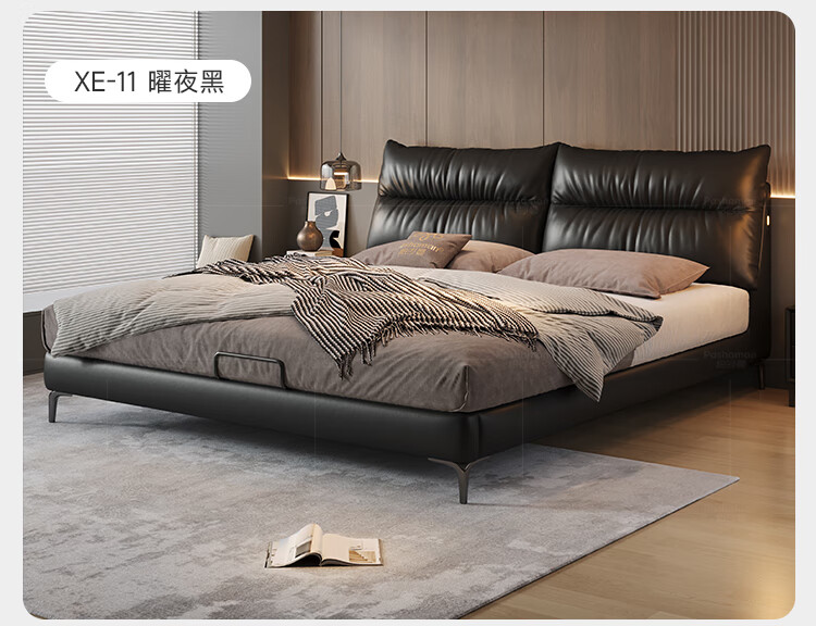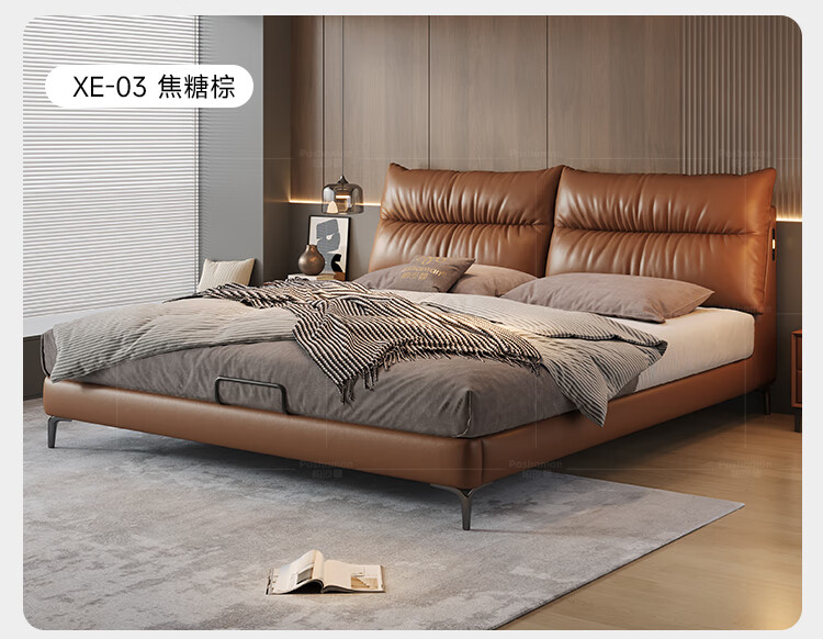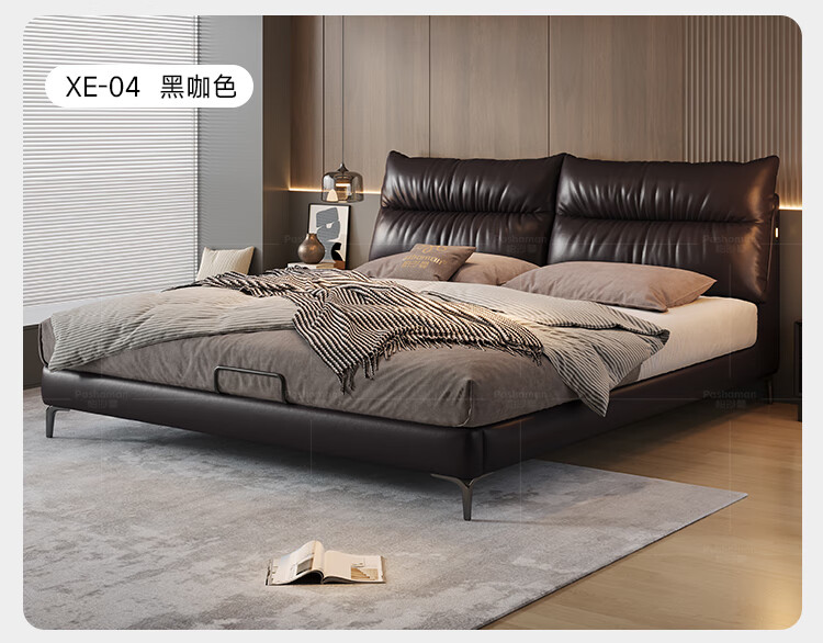 帕沙曼真皮床主卧室大床意式轻奢软包储物床高箱多功能皮床8348CP-G 【榉木】单床+TR1802#床头柜*2 1500mm*2000mm