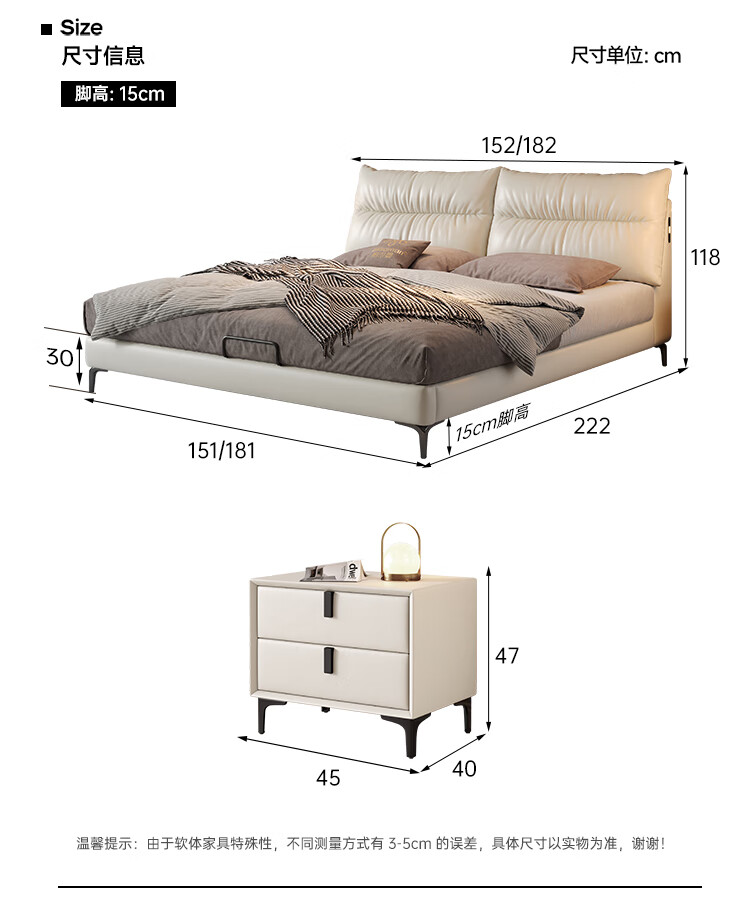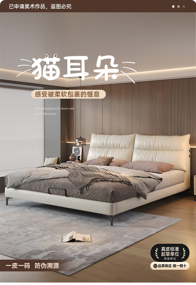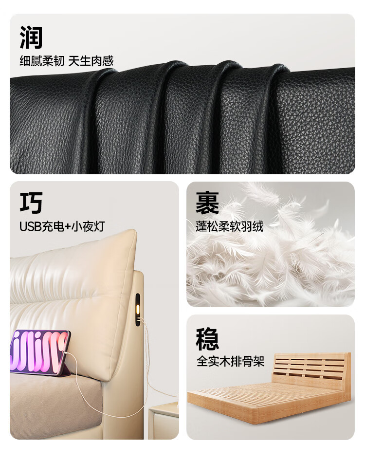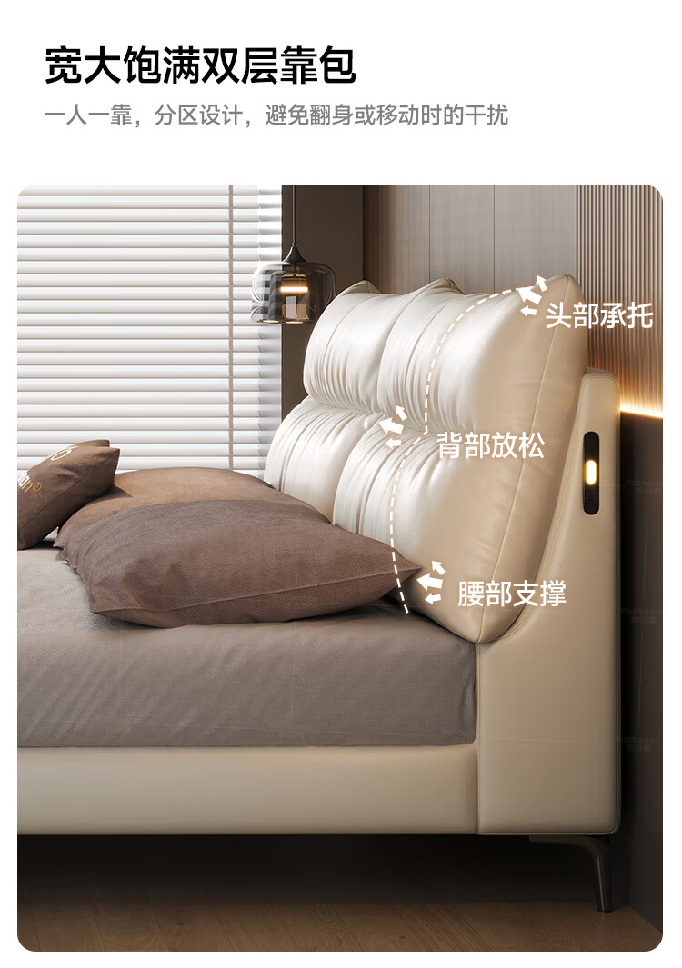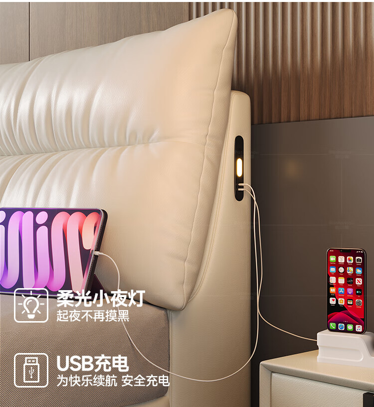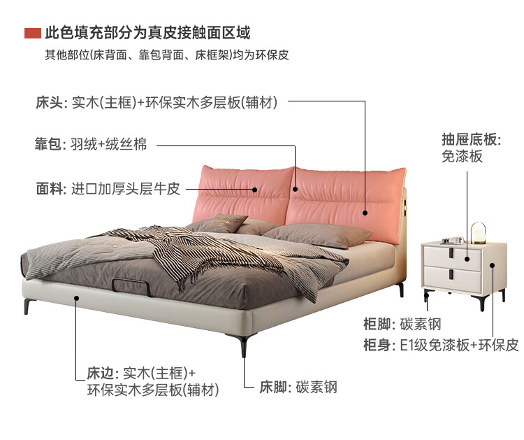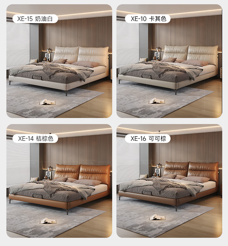 帕沙曼真皮床主卧室大床意式轻奢软包储物床高箱多功能皮床8348CP-G 【榉木】单床+TR1802#床头柜*2 1500mm*2000mm