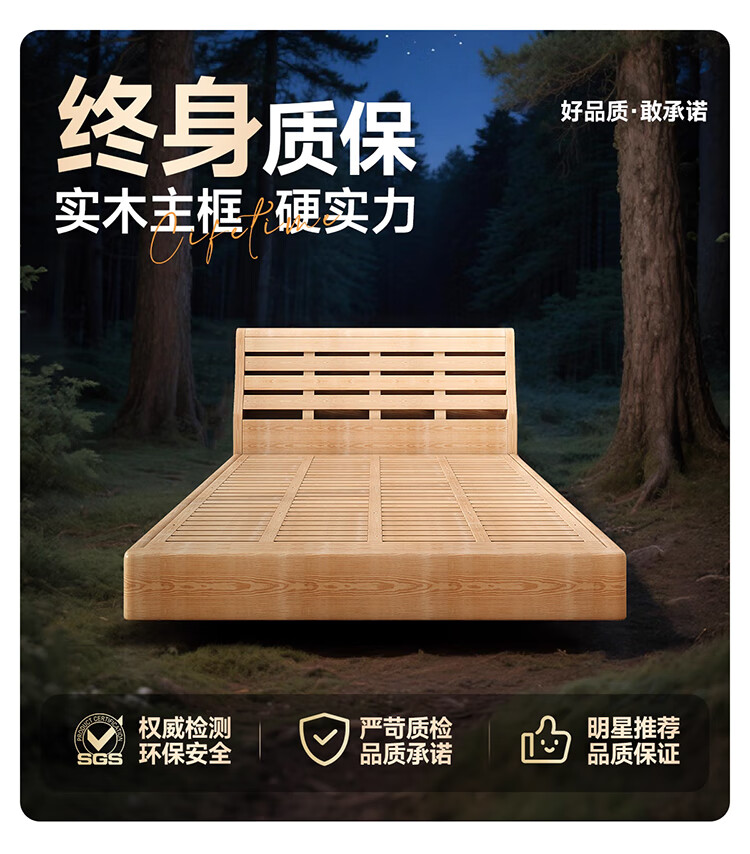 续写家具全实木床北美黑胡桃木小户型1.5米简约主卧1.8米双人床 参考木料