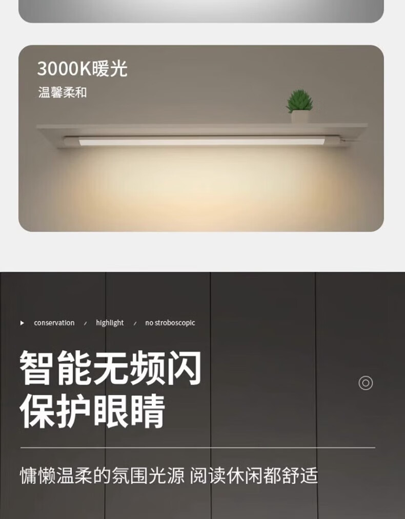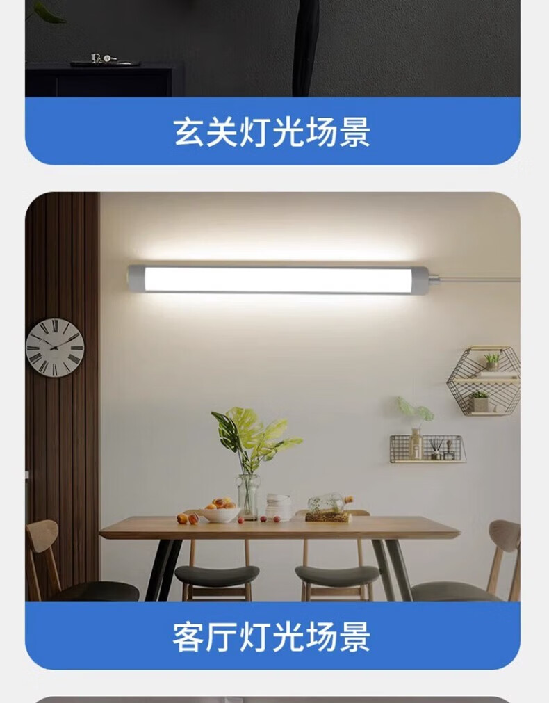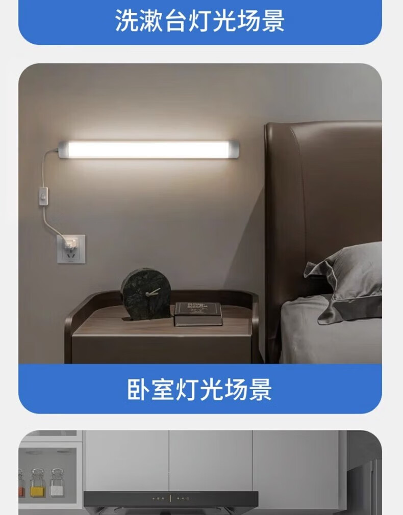 拉伯塔(LABOT)led直插式墙壁灯长条壁灯卧室房间厨房卫生间照明宿舍免安装粘贴 90cm30W【白光】 【1.8米免安装开关线+粘贴包】