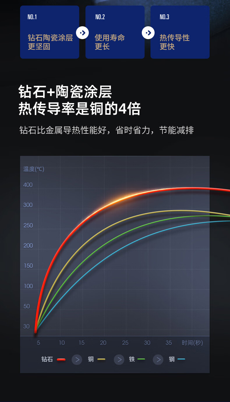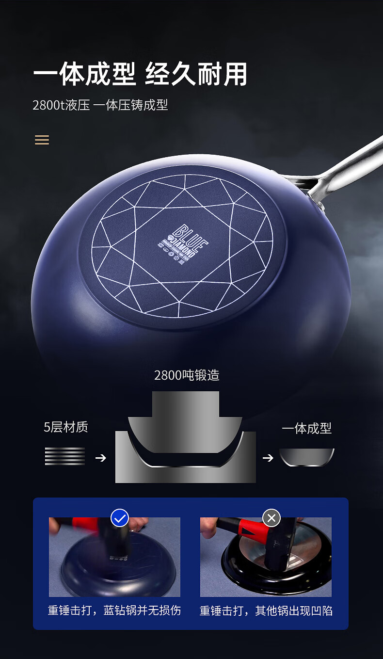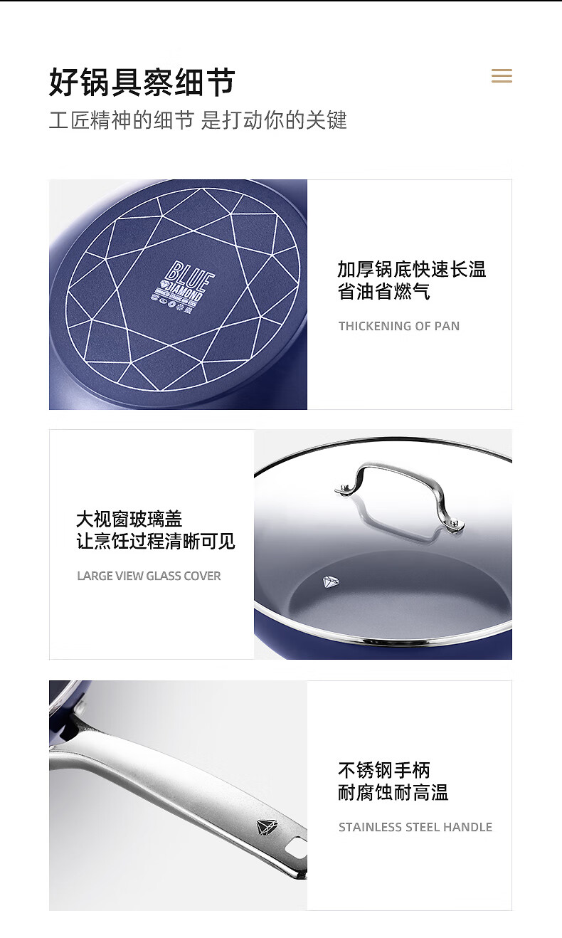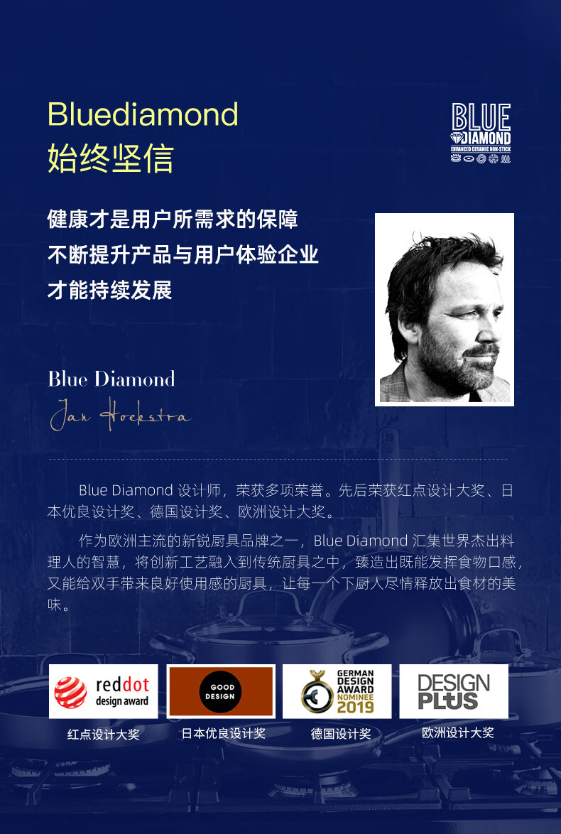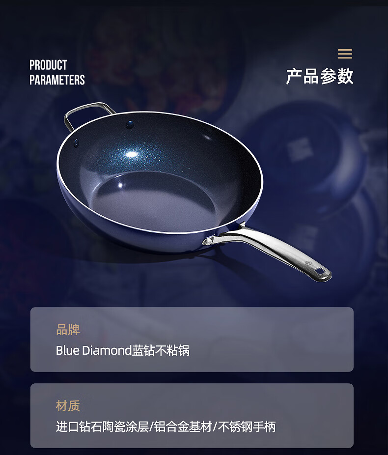 BLUE DIAMOND 比利时蓝钻陶瓷不粘炒锅炒菜锅无油烟燃气电磁炉通用家用不粘锅 炒锅不配盖 30cm