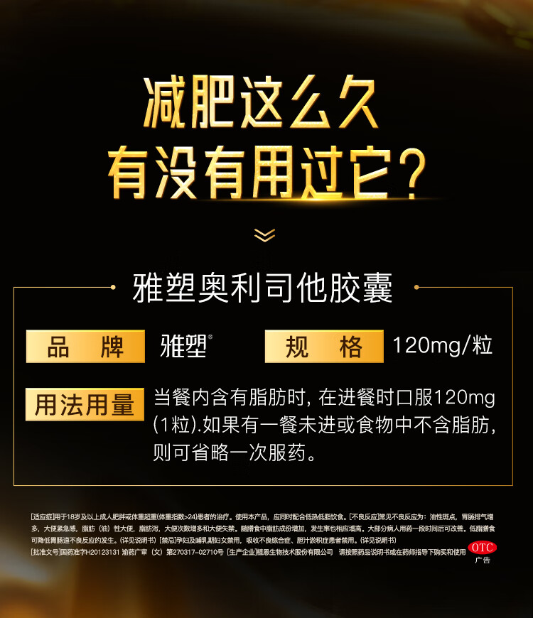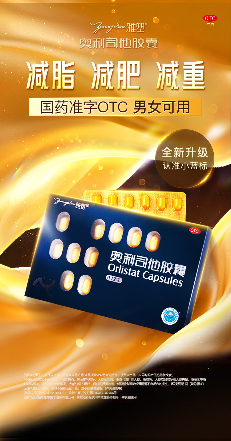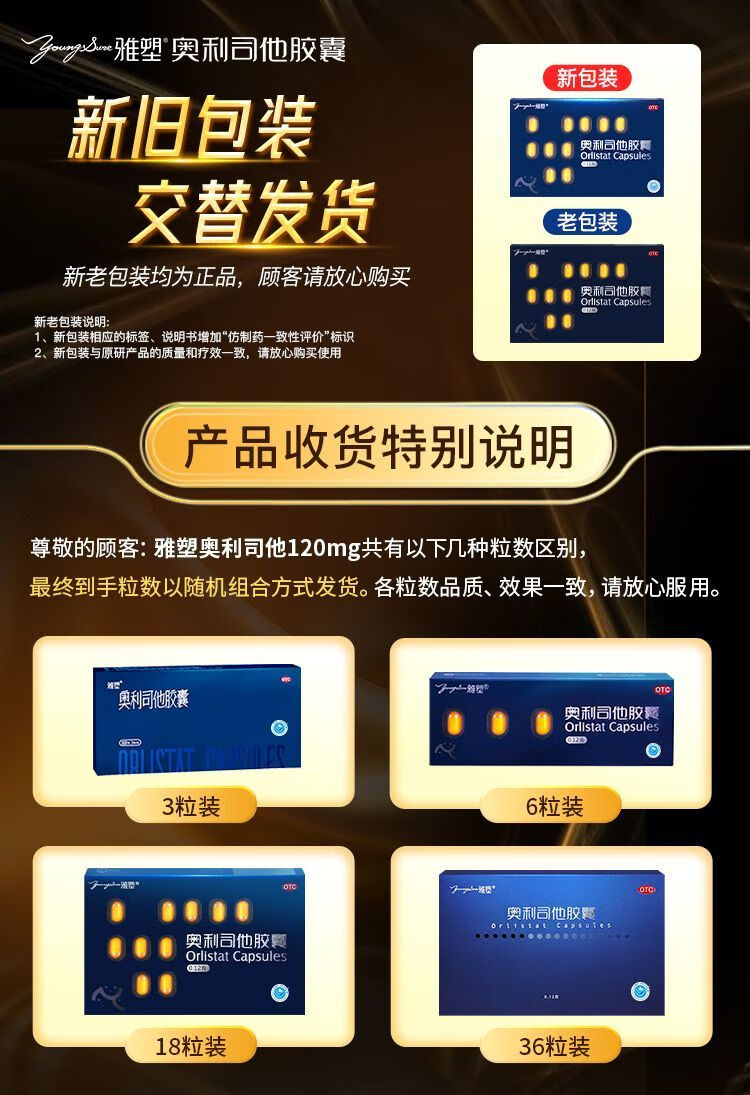 雅塑 奥利司他胶囊0.12g*18粒/盒 减肥减重减肥药用于肥胖或体重超重患者国药准字 1盒【共18粒】