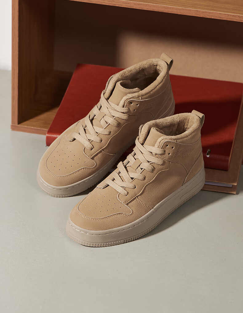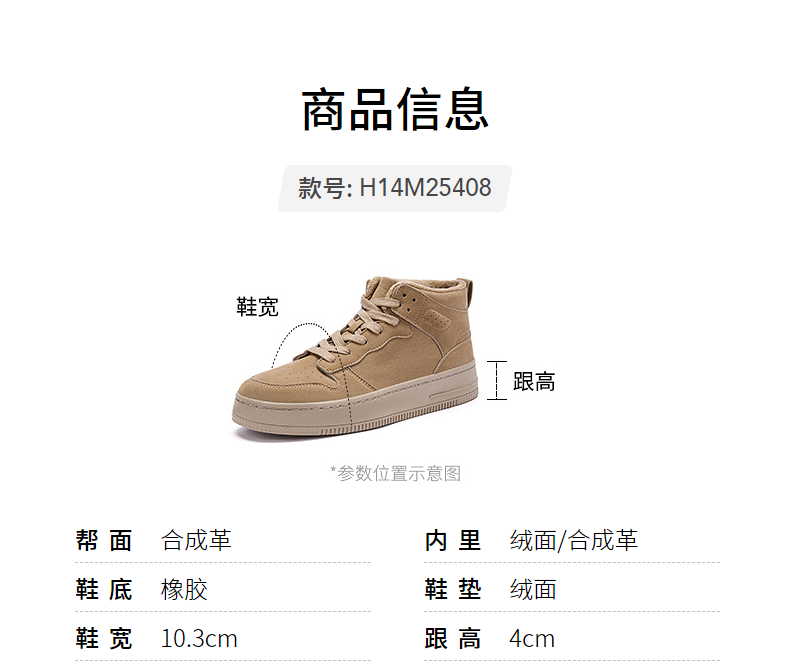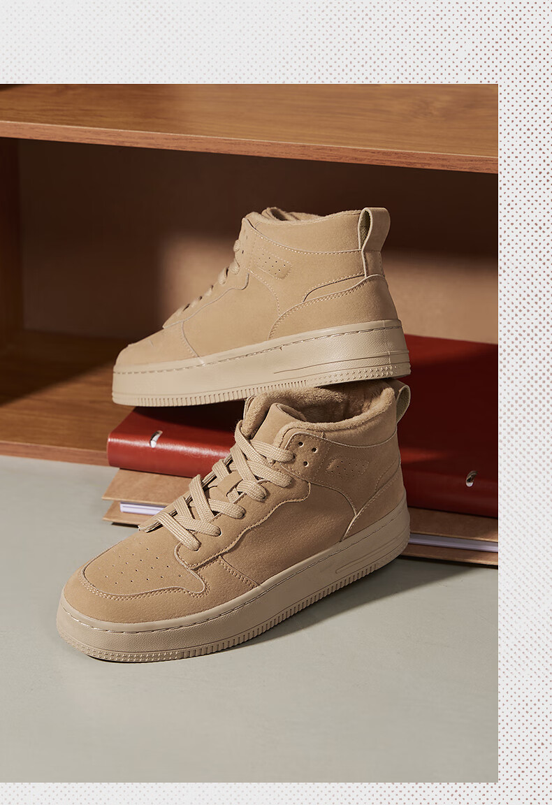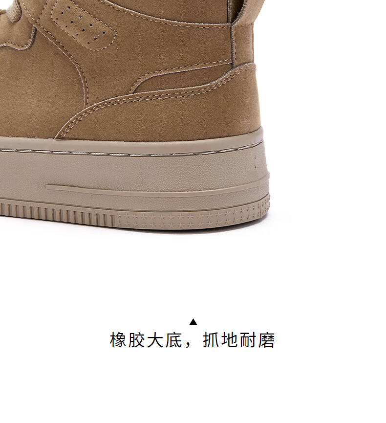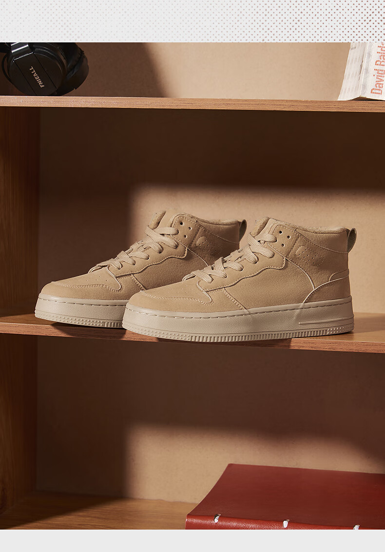 热风男鞋2025年冬季新款百搭高帮鞋复古休闲鞋男款加绒保暖板鞋 08杏色 39