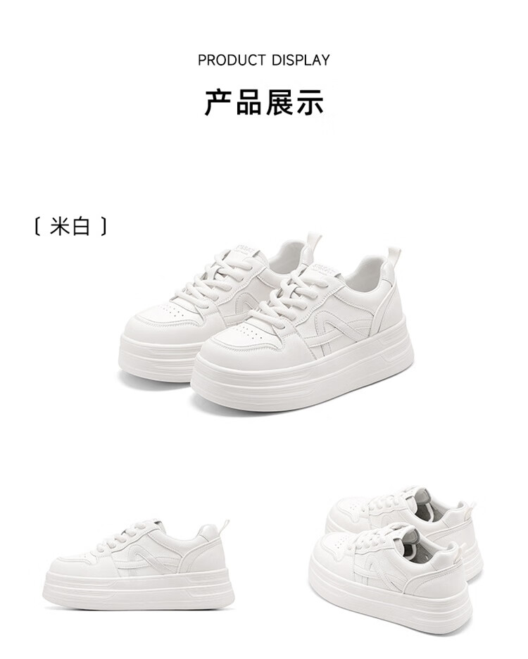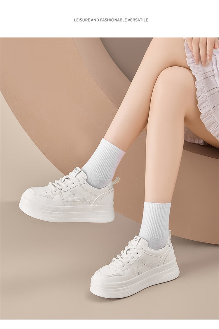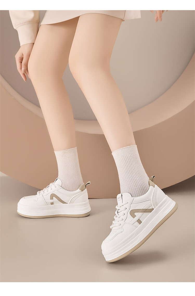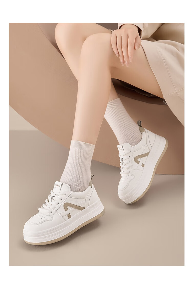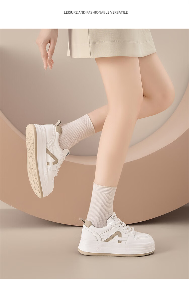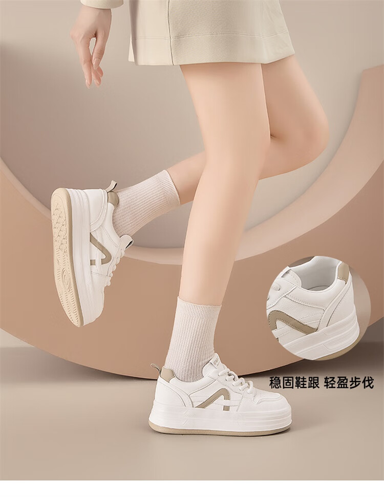 Lee女鞋秋季德训鞋经典白色板鞋运动休闲鞋增高小白鞋时尚鞋子女潮鞋 米色 35