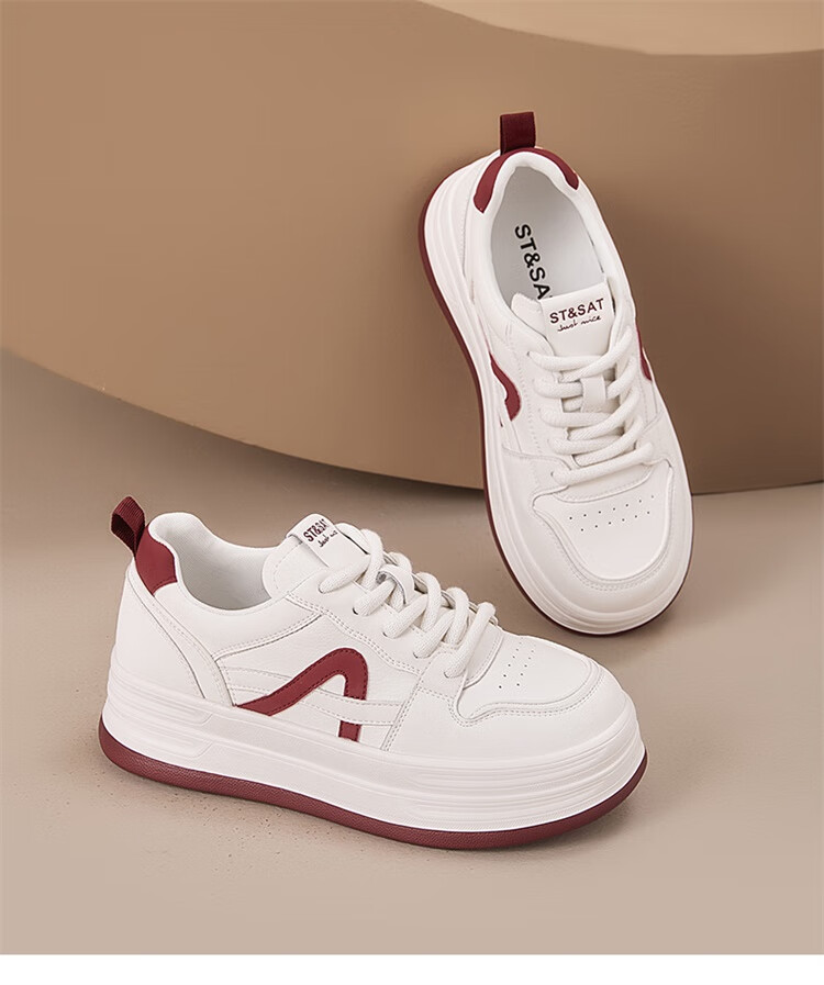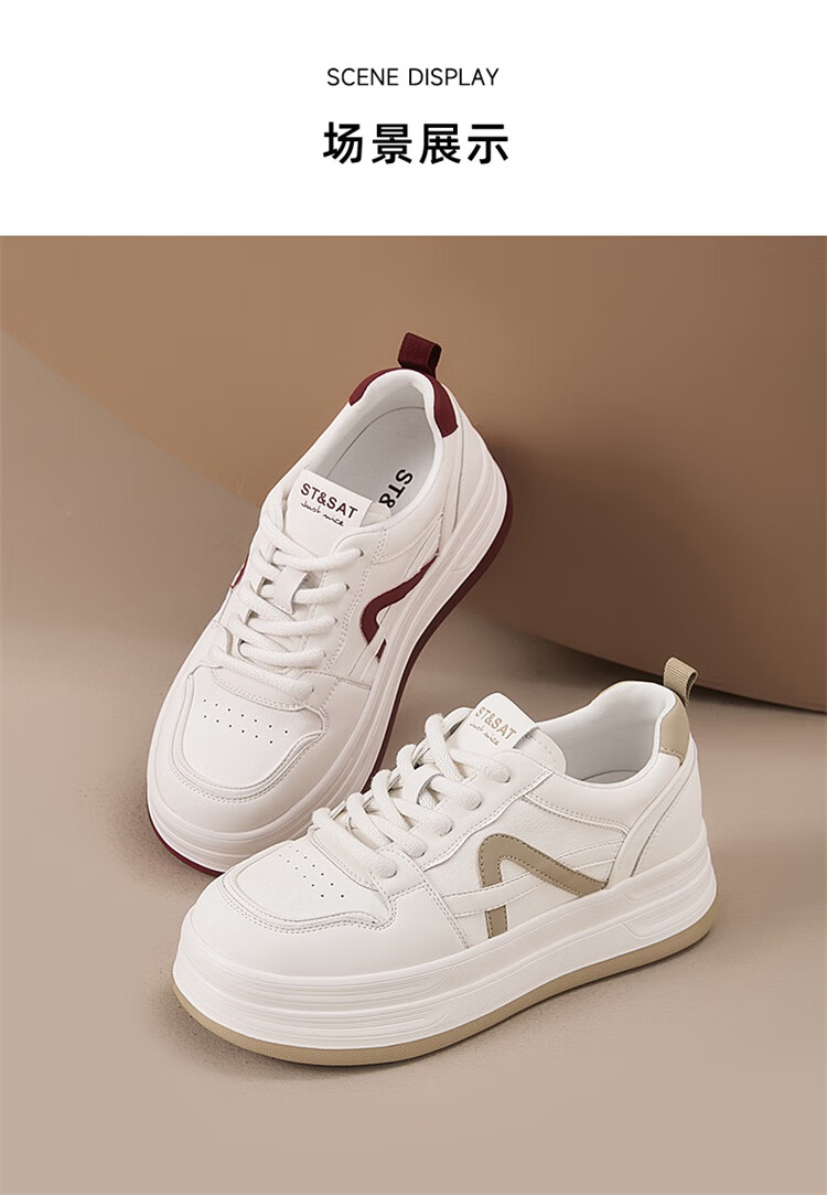 星期六时尚简约百搭板鞋2025秋季新款厚底学院风小白鞋MTSSD3112C82 棕色 35