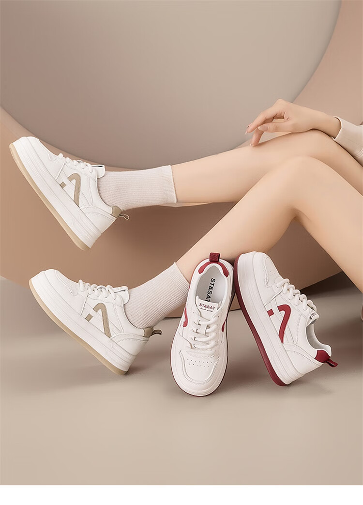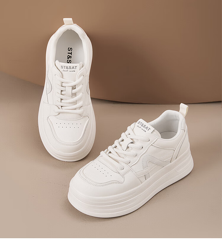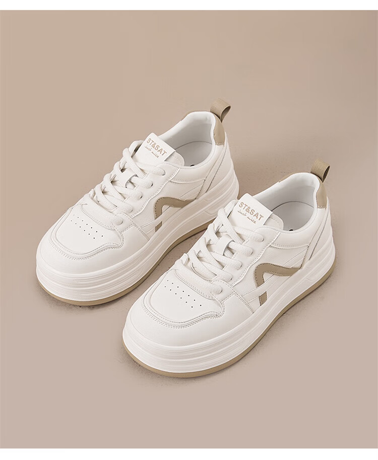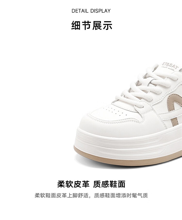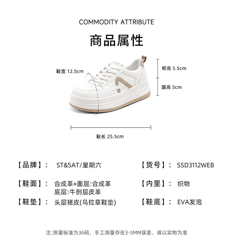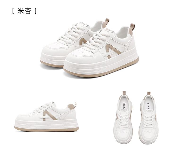 星期六简约厚底小白鞋2025秋季新款百搭舒适女板鞋MTSSD3112WEB 米白 37