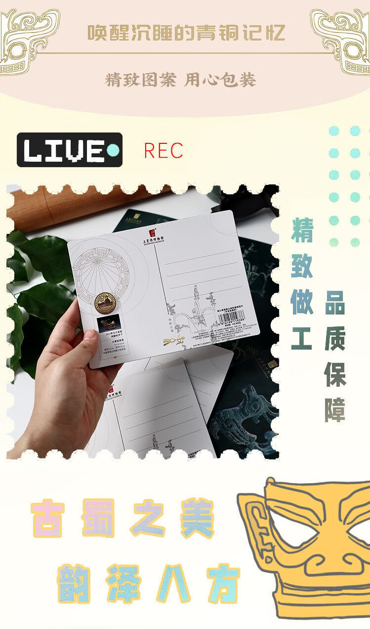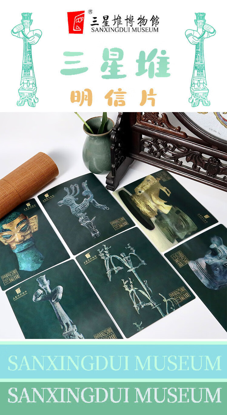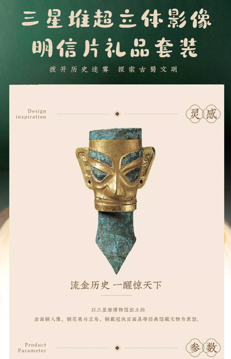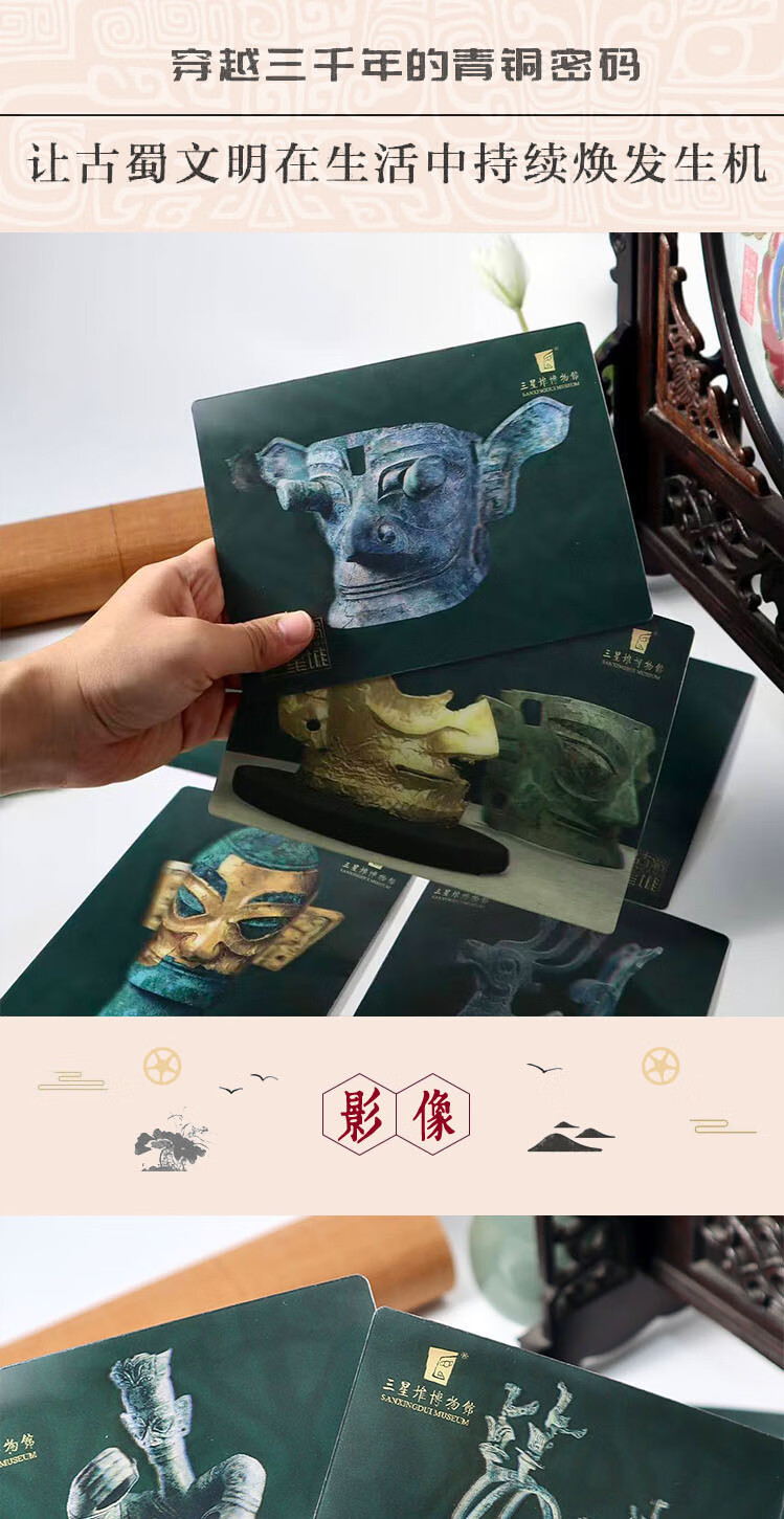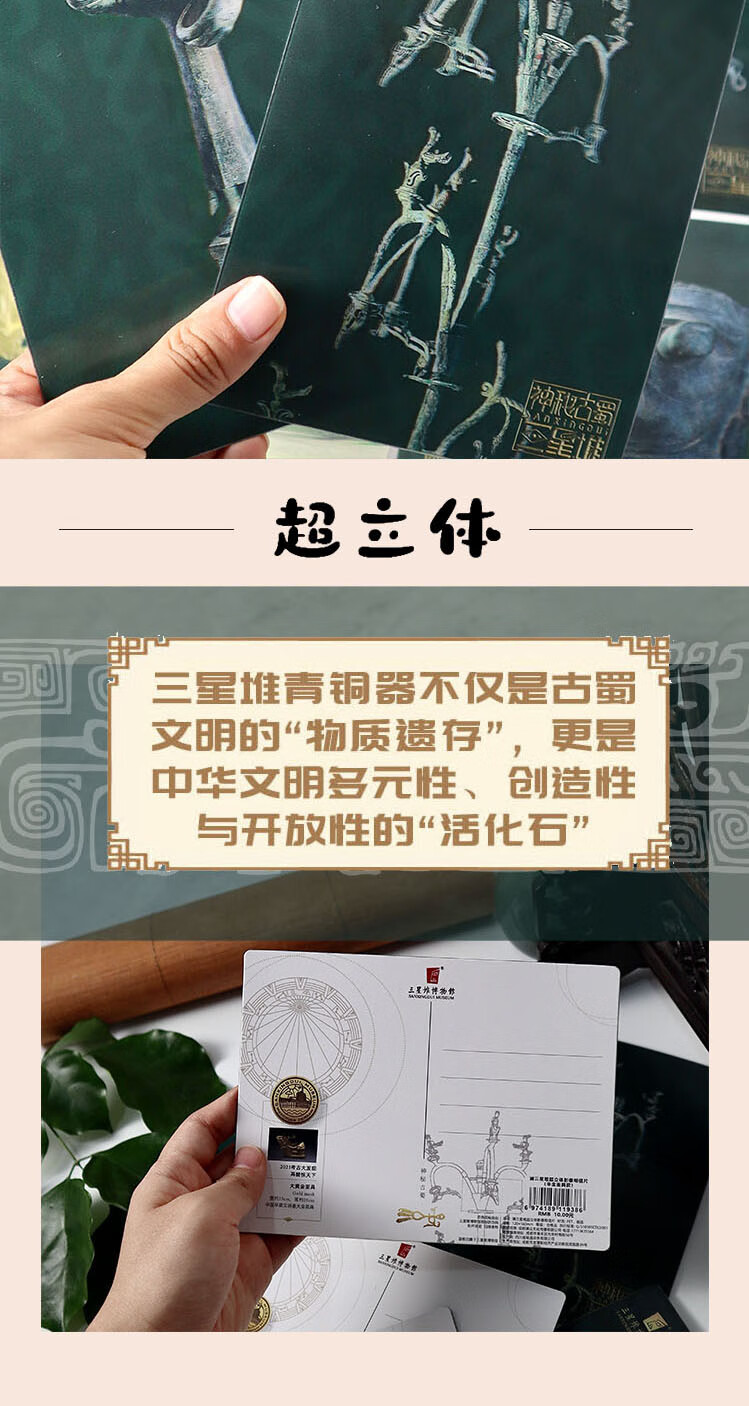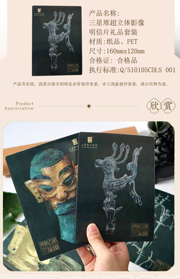 三星堆博物馆文创周边超立体3d影像明信片礼品套装6张纪念品礼物礼品旅游收藏纪念品小礼物送朋友创意礼物 3d超立体影像明信片礼品套装(6张)