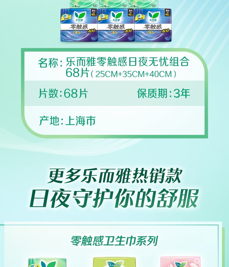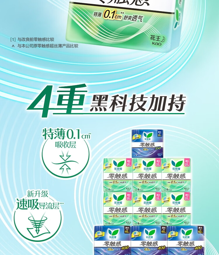 乐而雅花王零触感日夜无忧超薄卫生巾组合10包68片姨妈巾京东自营新国标