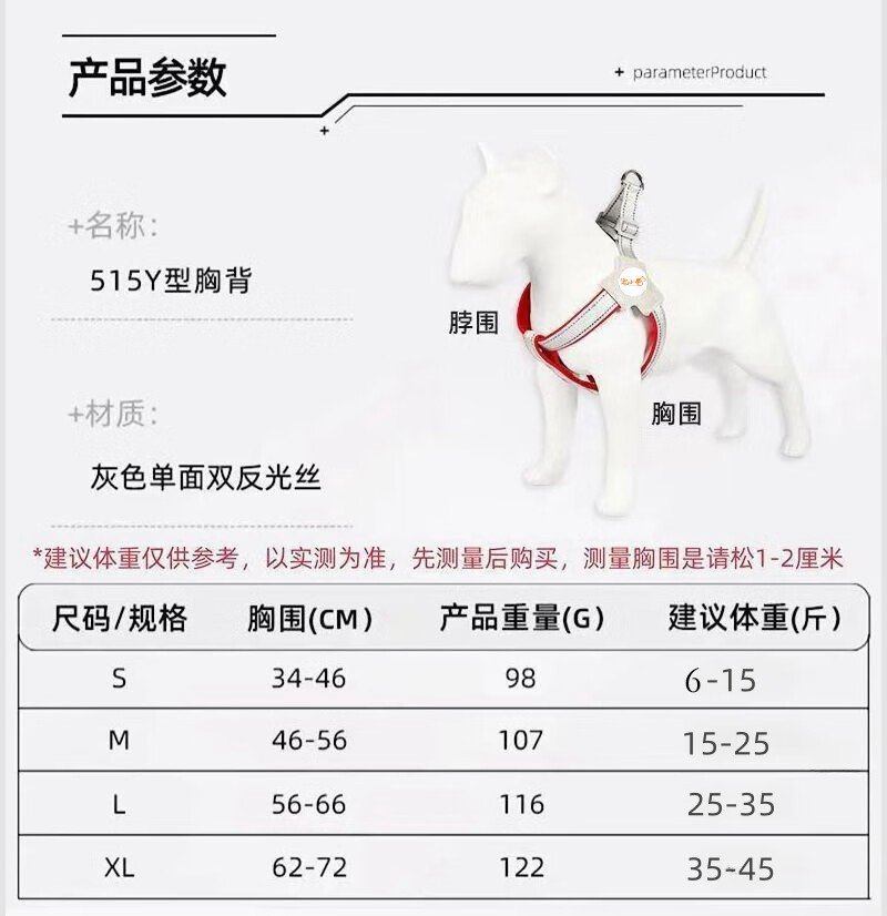 宠小曼狗狗牵引绳Y型胸背带套装宠物遛狗绳子柯基比熊泰迪中小型犬红S