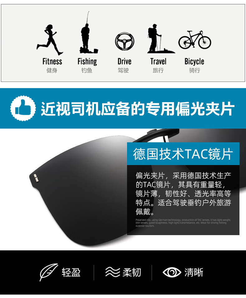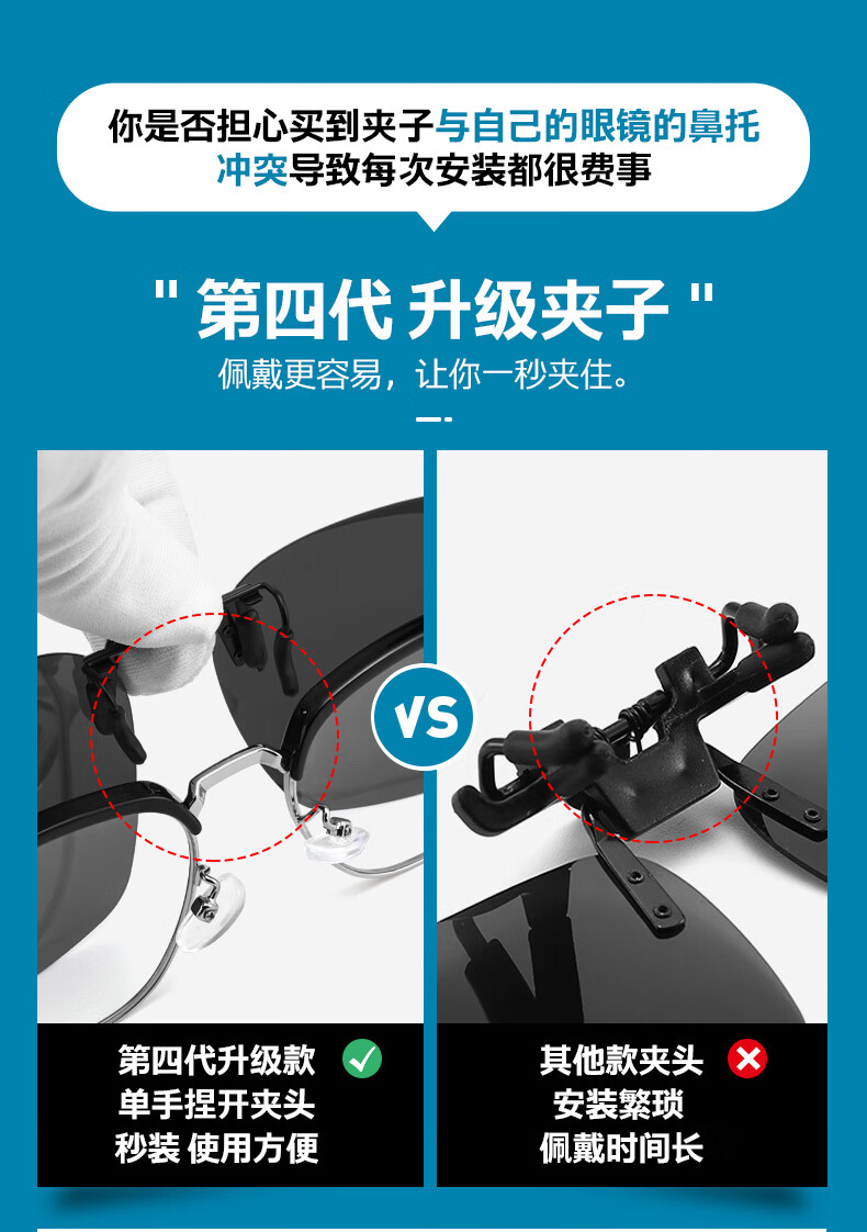 LESCA LUNETIERgm偏光夹片墨镜男可夹式近视太阳镜片开车载钓鱼专用眼睛可上翻女