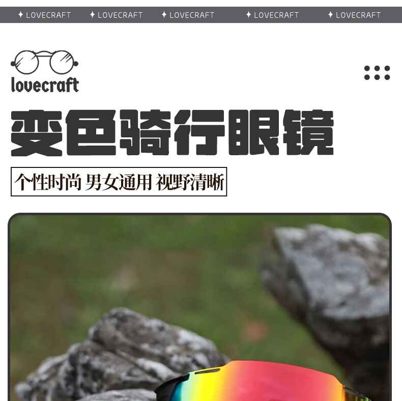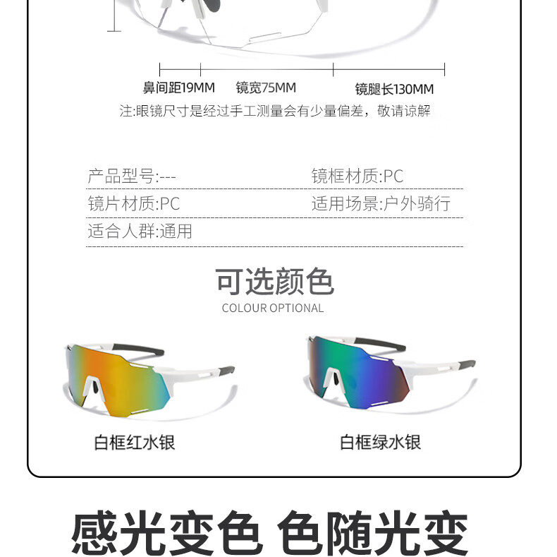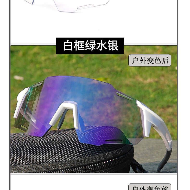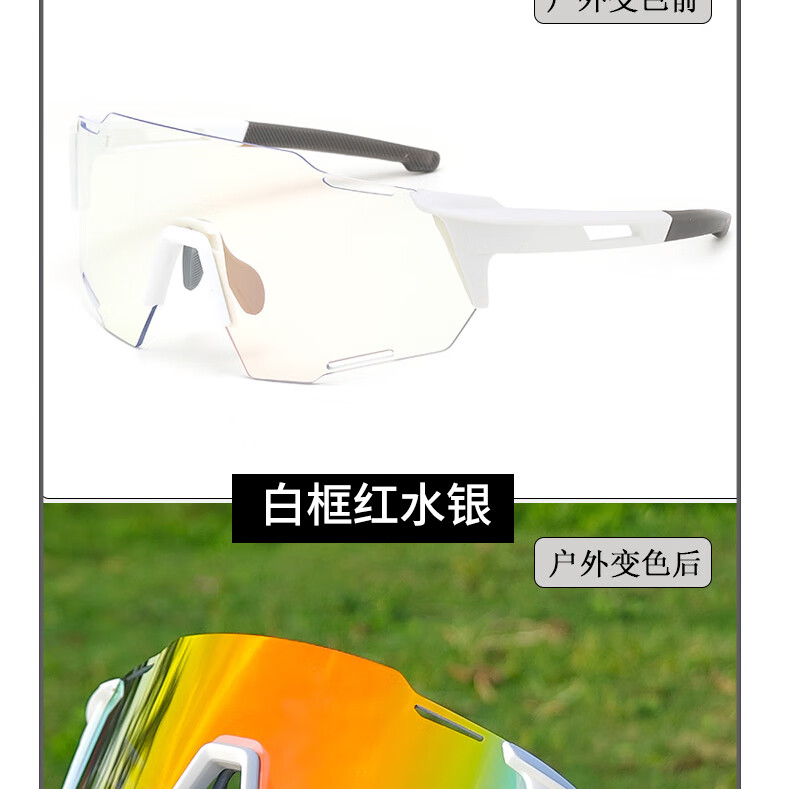 LOVECRAFT户外运动变色骑行眼白框变色红水银 自行车防风登山墨镜护目镜