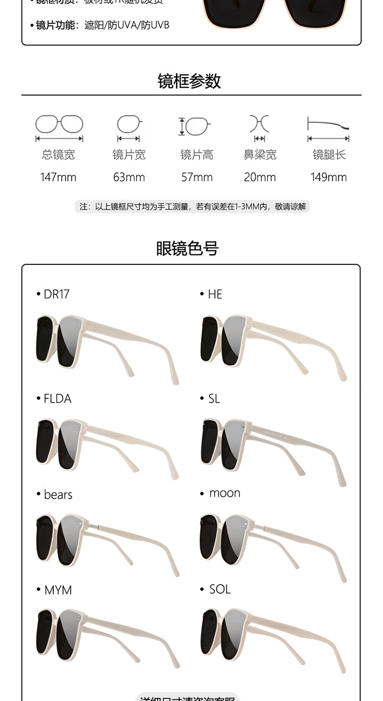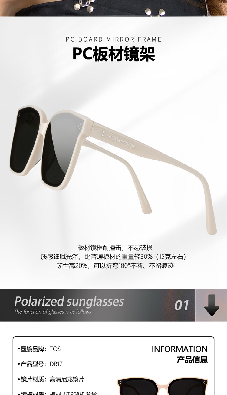 TOS墨镜女男太阳镜眼镜高级感网红大脸2024白色款
