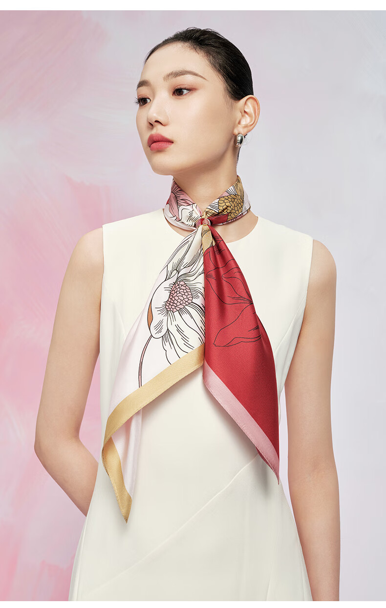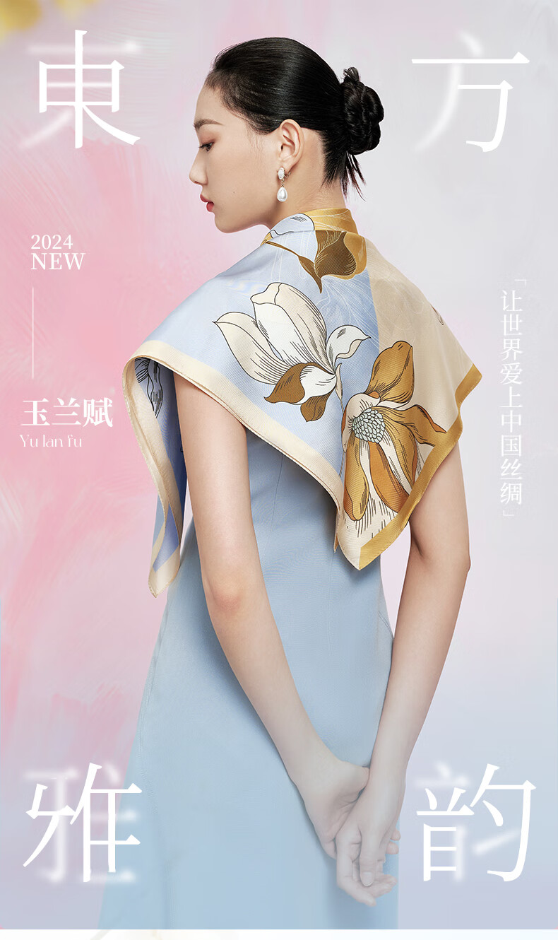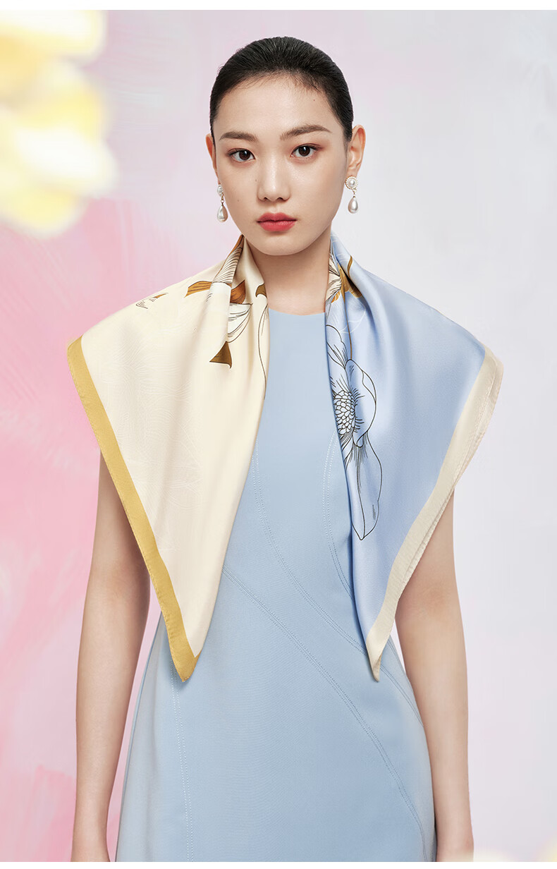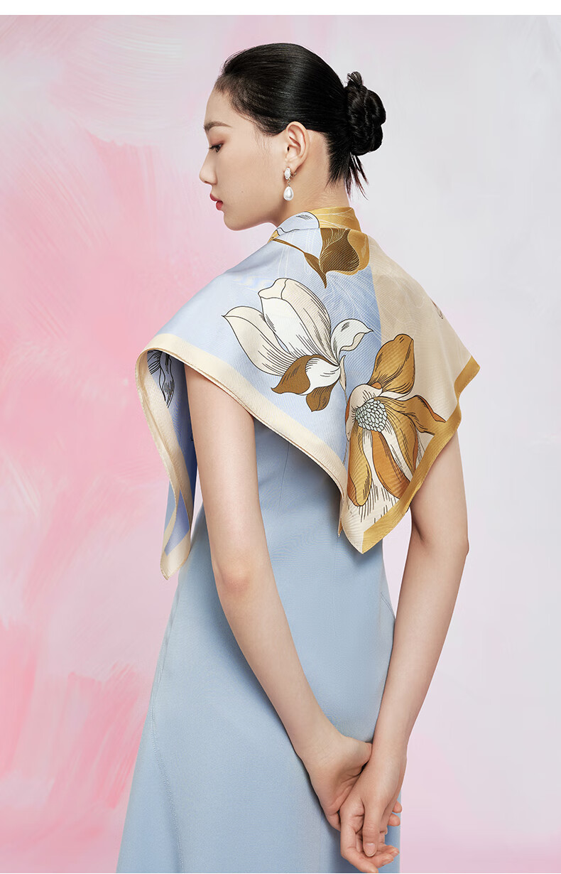 万事利桑蚕丝真丝丝巾女中方巾送妈妈长辈丝绸生日礼物礼盒-玉兰赋75cm
