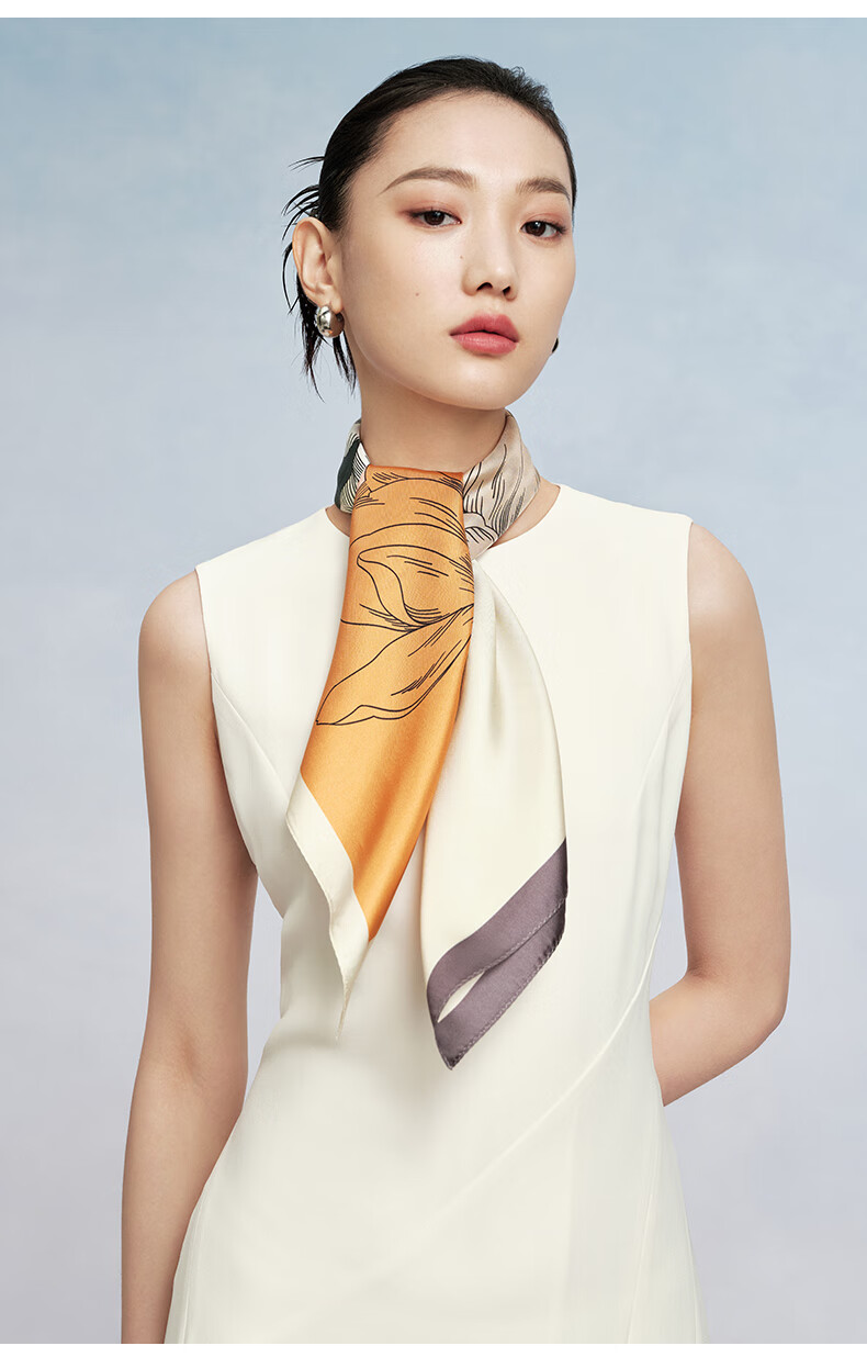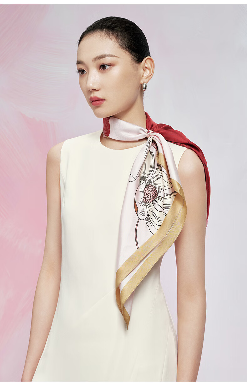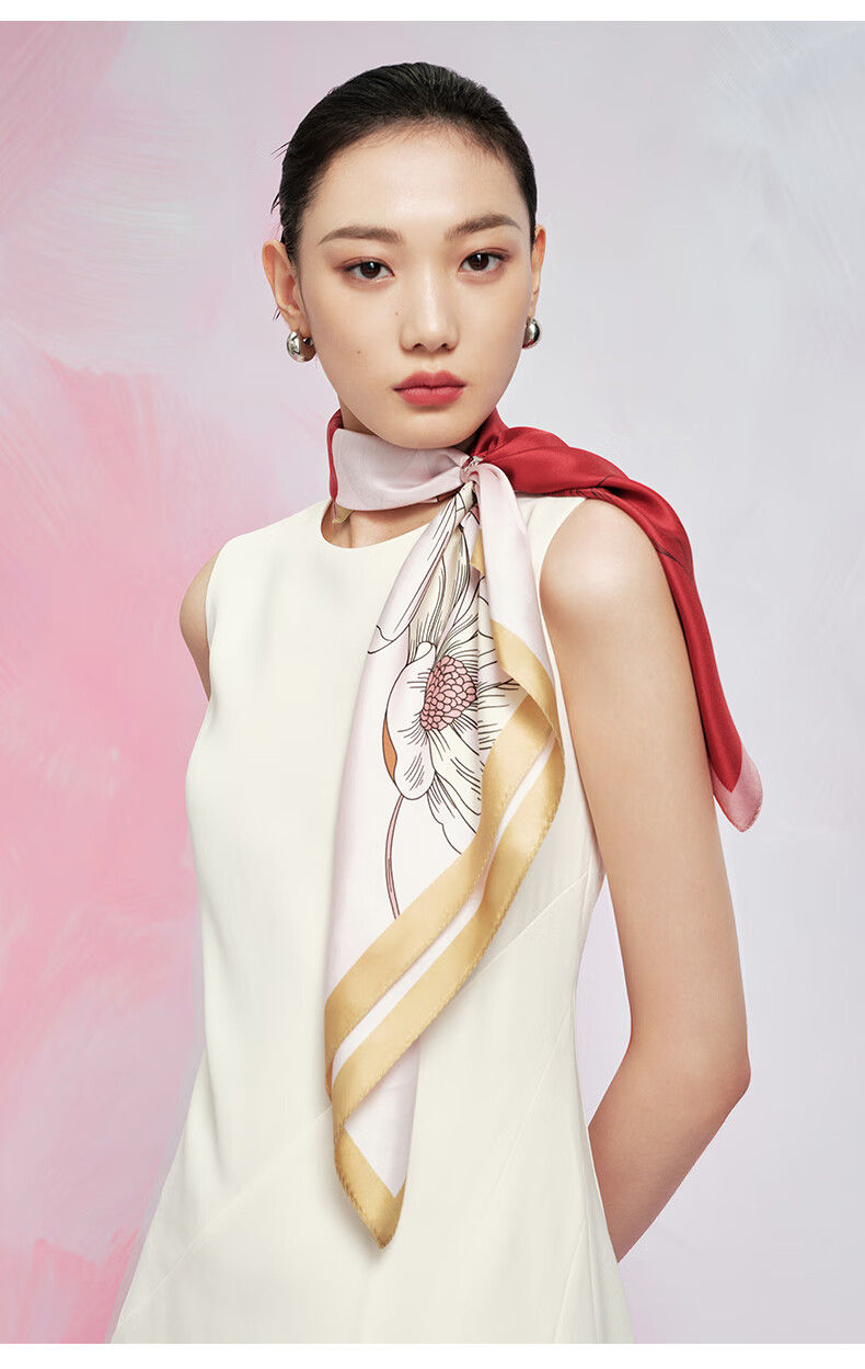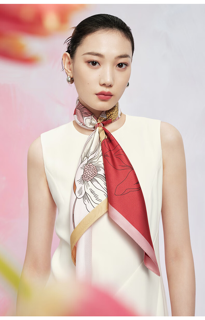 万事利桑蚕丝真丝丝巾女中方巾送妈妈长辈丝绸生日礼物礼盒-玉兰赋75cm