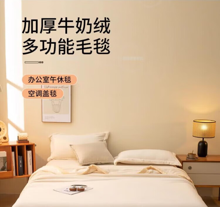 WCZ德国冬季珊瑚绒毛毯办公室午睡盖毯牛奶绒沙发小被子单学生宿舍床 【加厚升级款】米白 120cm*200cm 单人毯【四季可用】