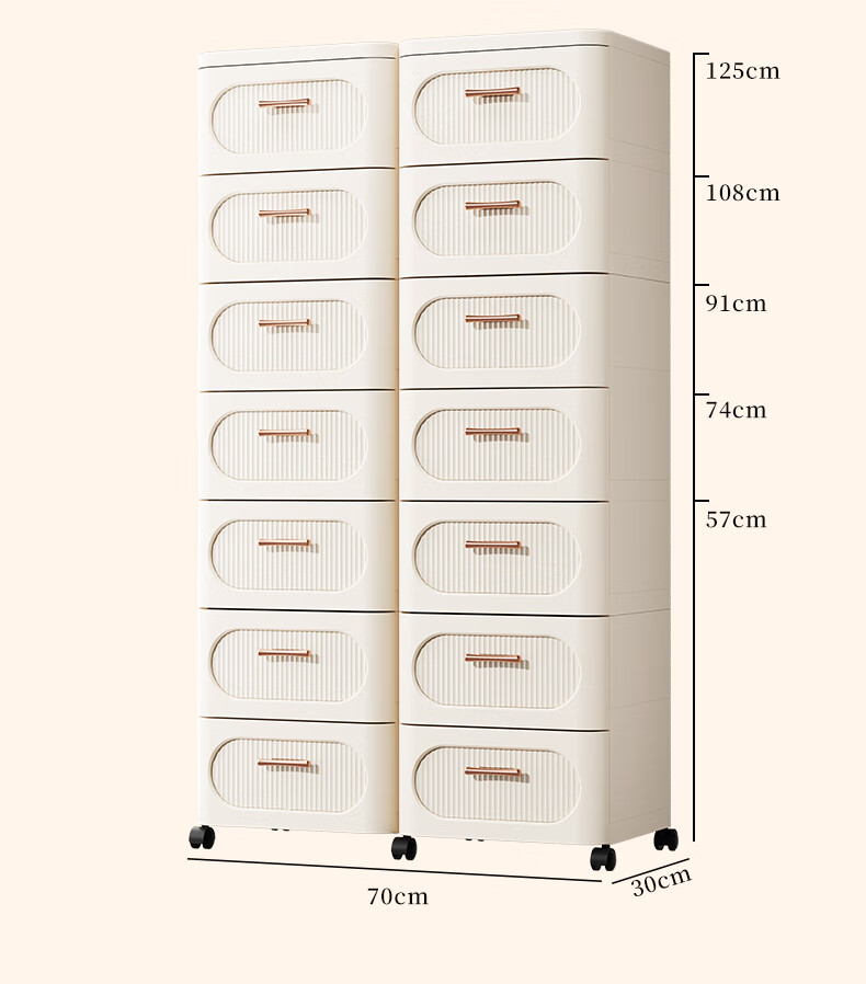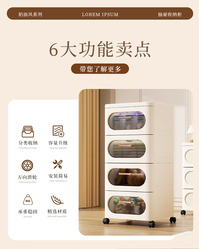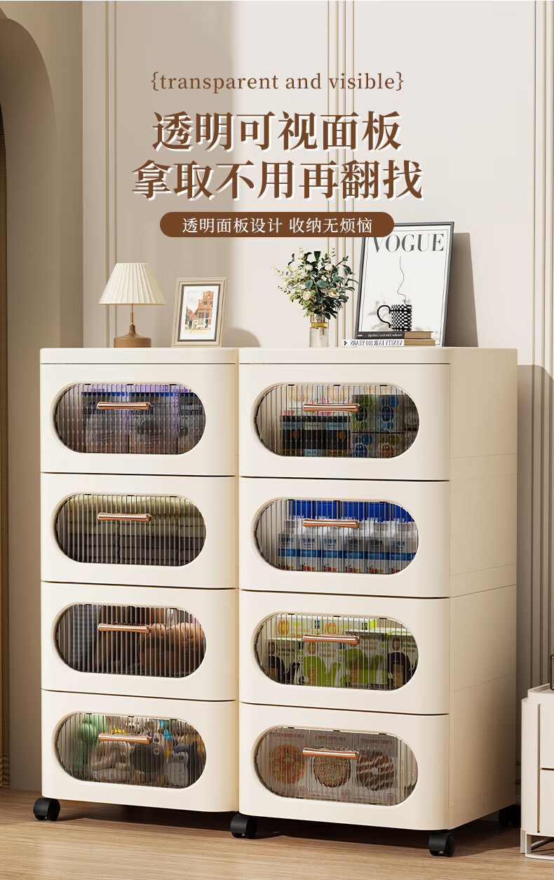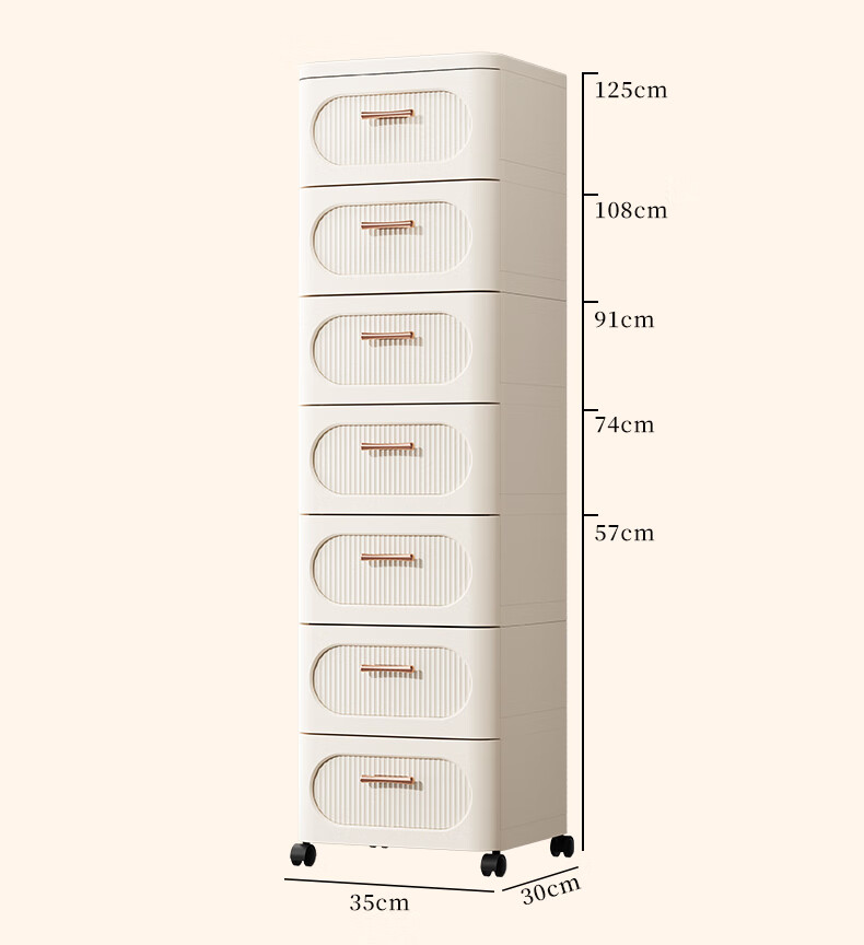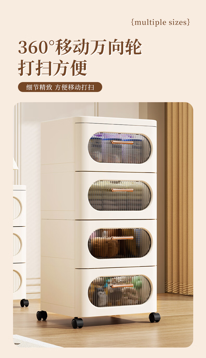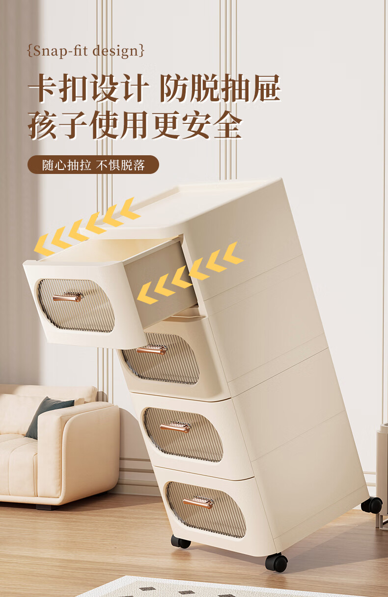 纳份爱零食小推车置物架子落地家用多层婴儿收纳柜抽屉式宿舍移动储物架 30面宽【奶油白】5层 【卡扣防脱落设计】