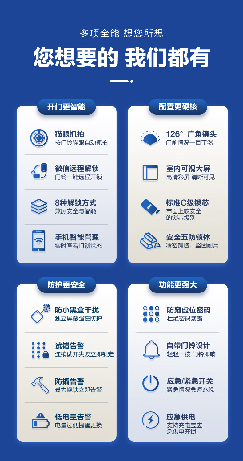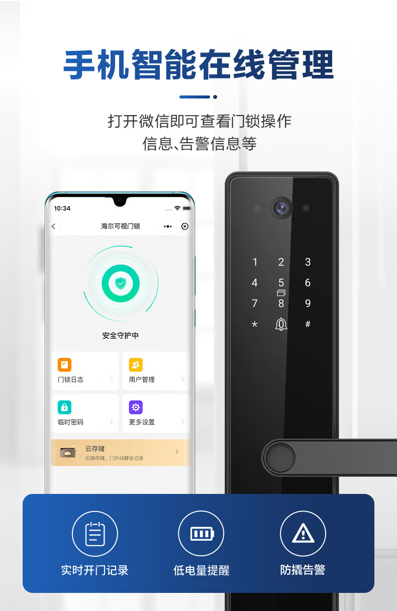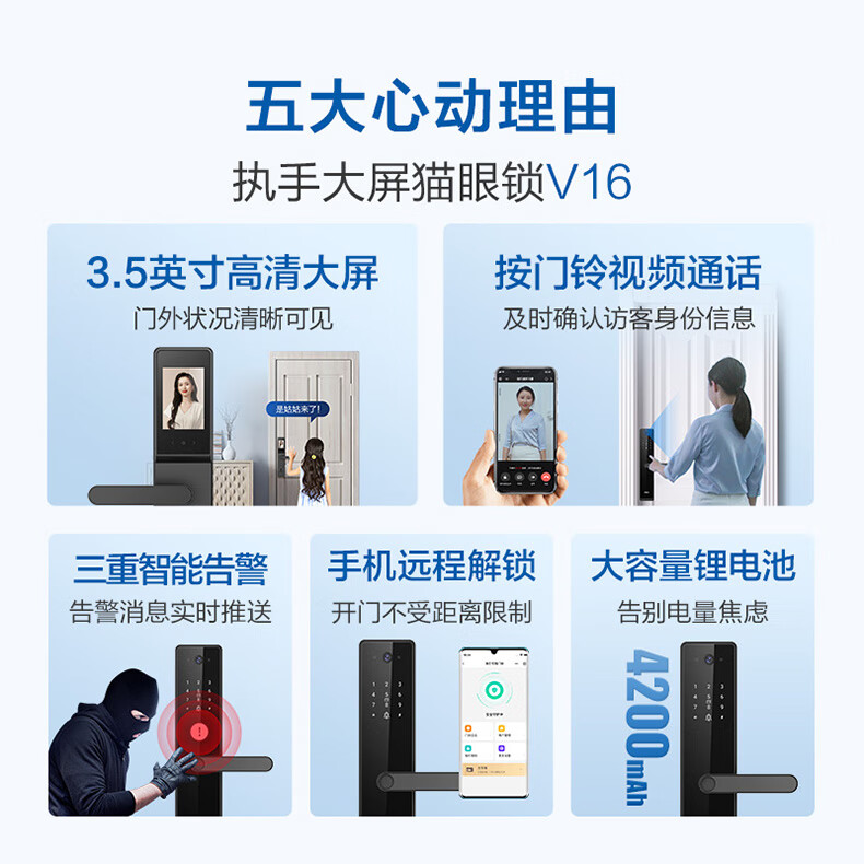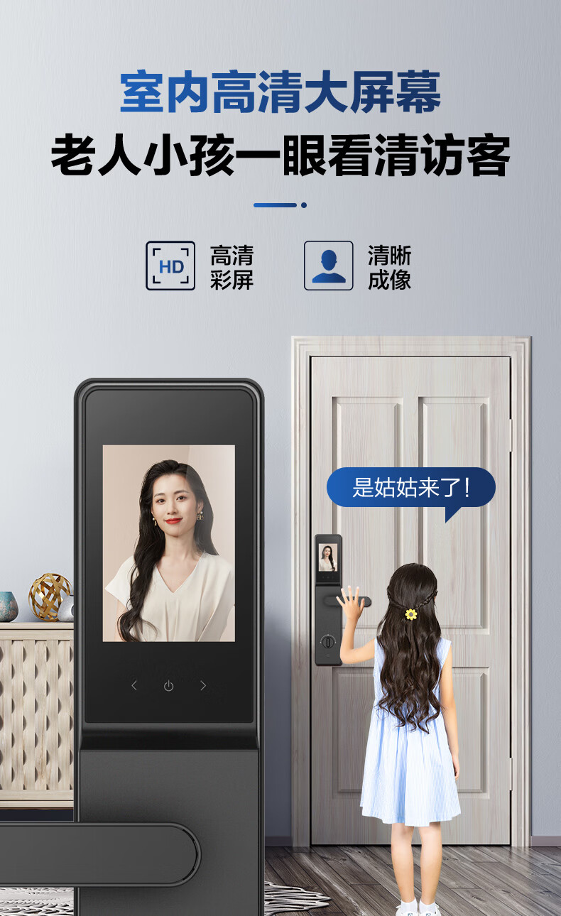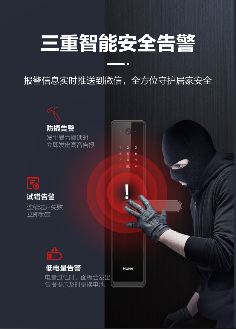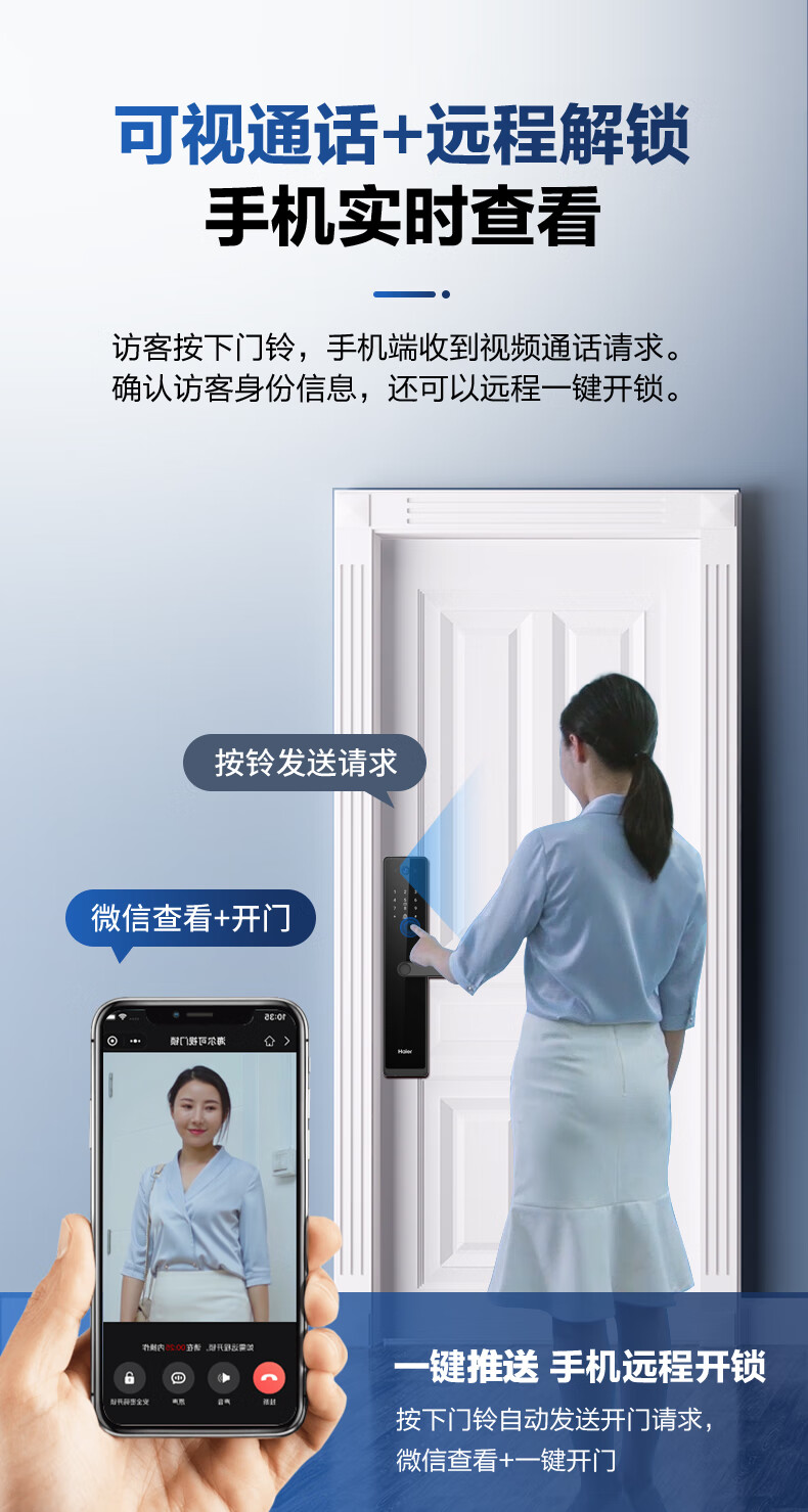 海尔(Haier)指纹锁智能门锁密码锁可视猫眼智能锁带监控摄像头HFH-16V-U1