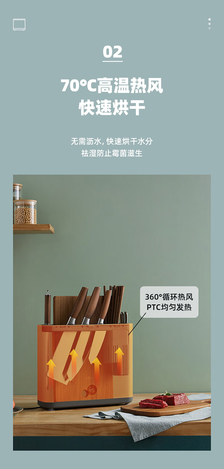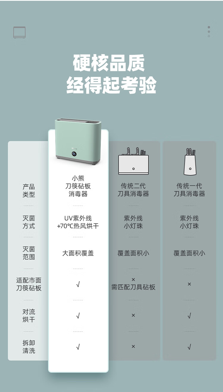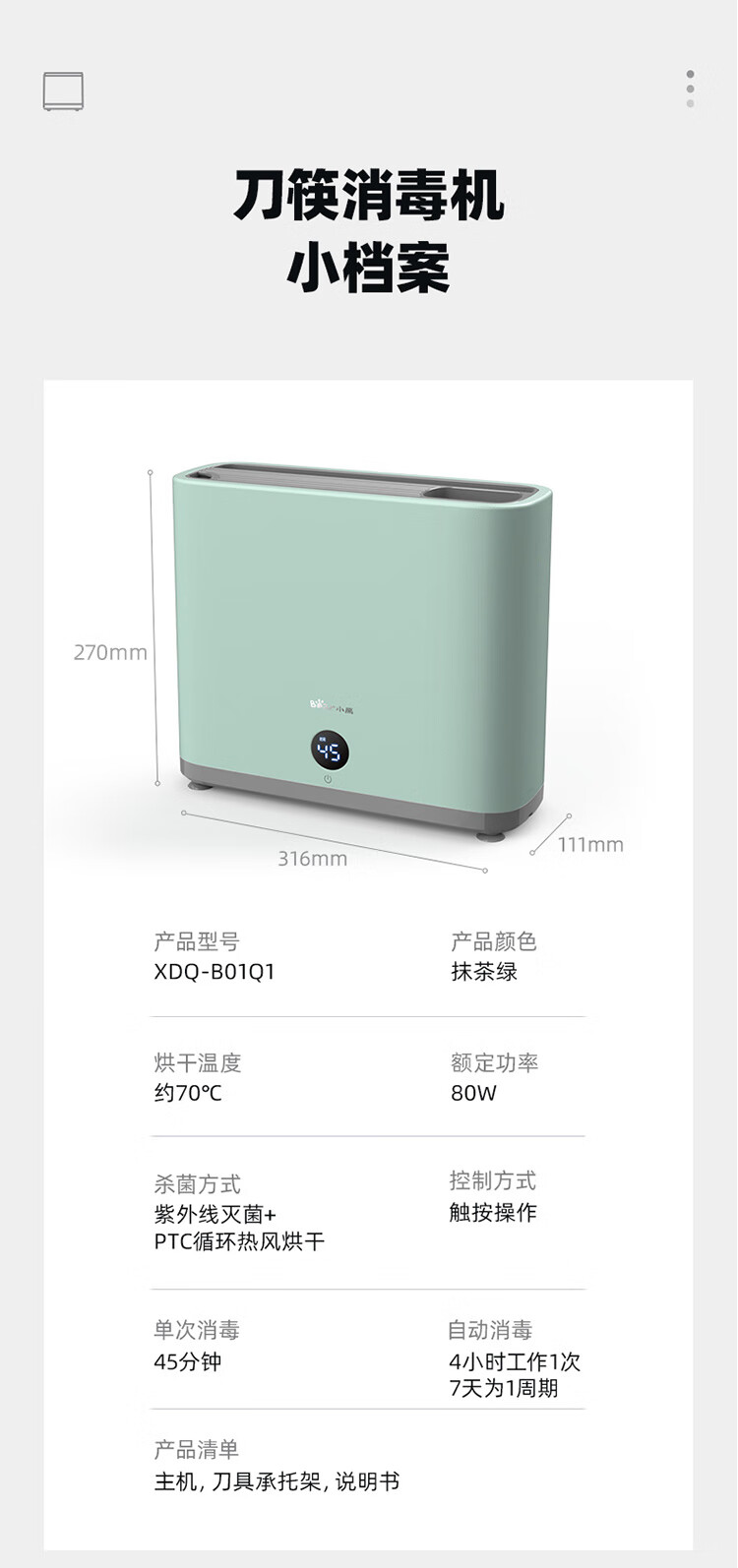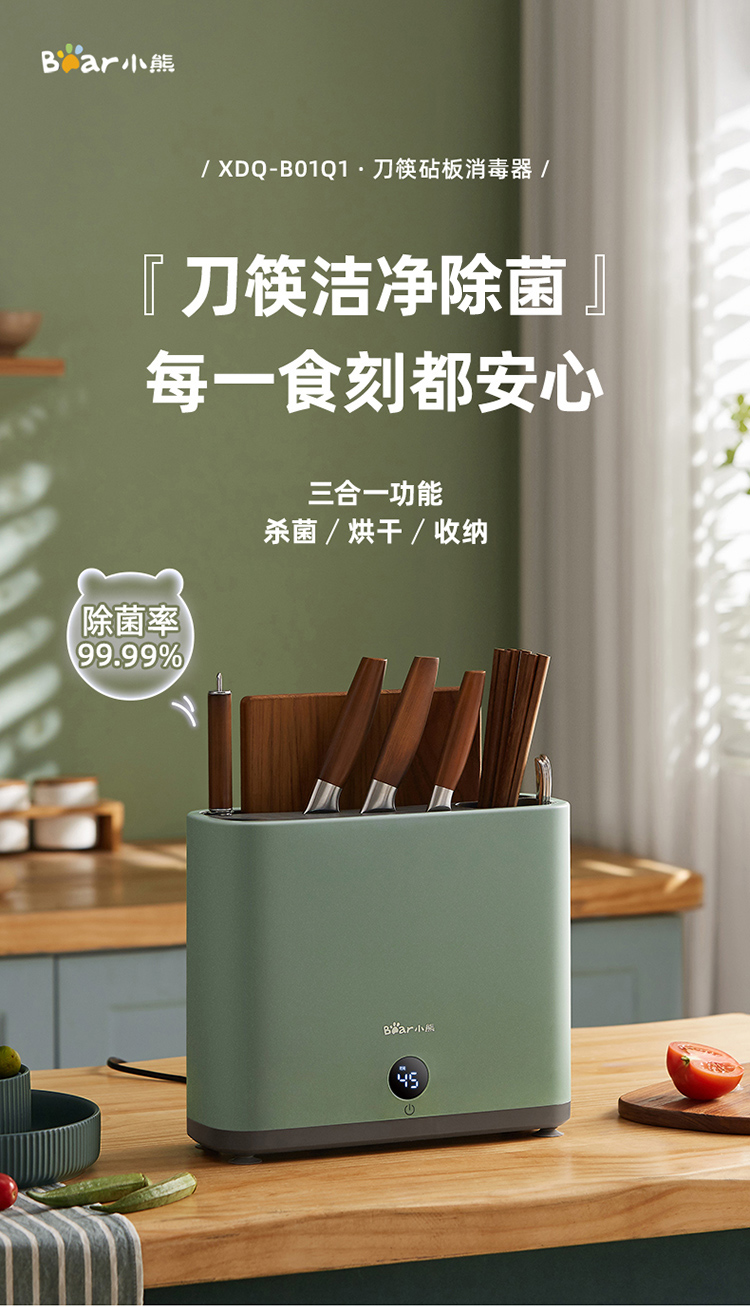 小熊(Bear)刀架砧板保洁机 刀具筷子除菌机家用多功能紫外线烘干防霉收纳菜板筷子刀架 XDQ-B01Q1