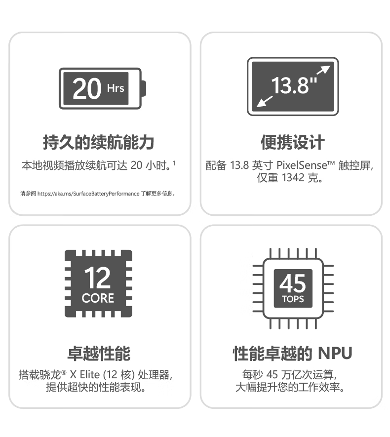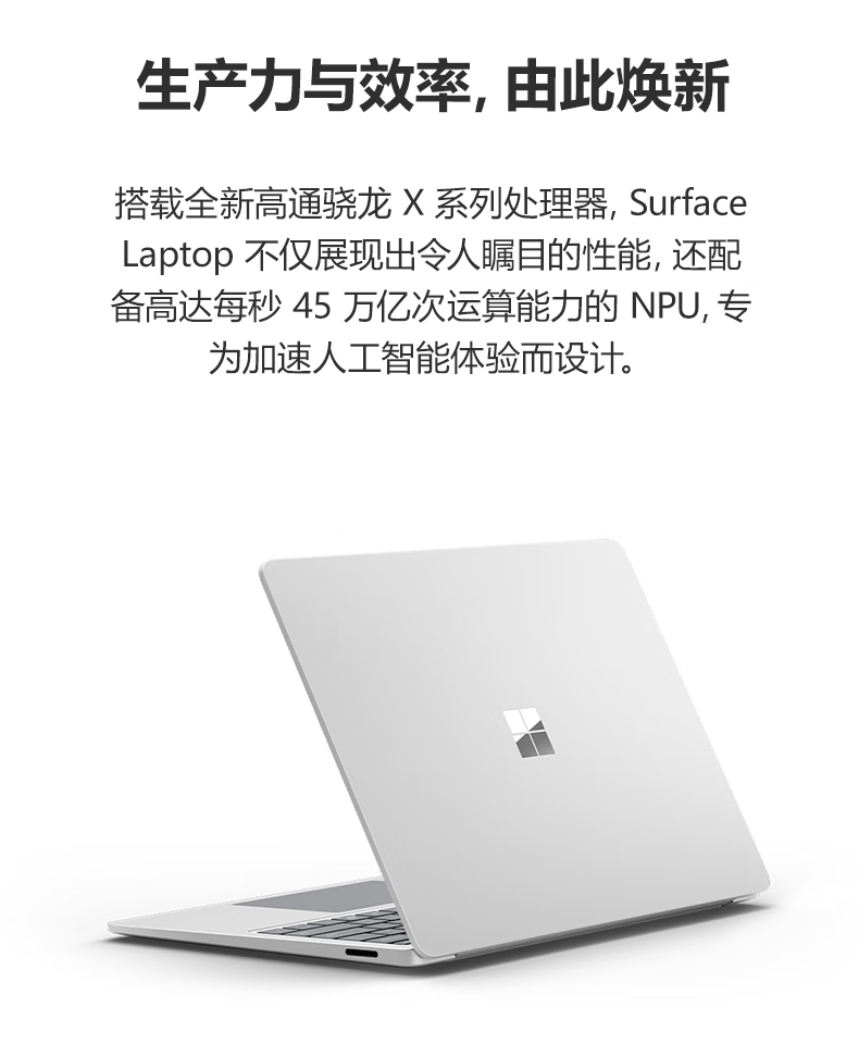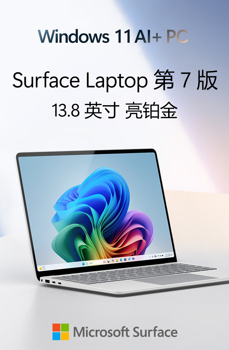 微软(Microsoft)Surface Laptop 第7版 笔记本电脑 国家补贴20% 触屏轻薄本 AI+PC 骁龙 X Elite 16G 512G 亮铂金