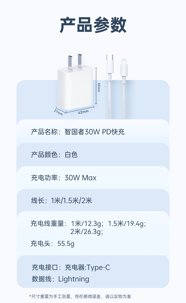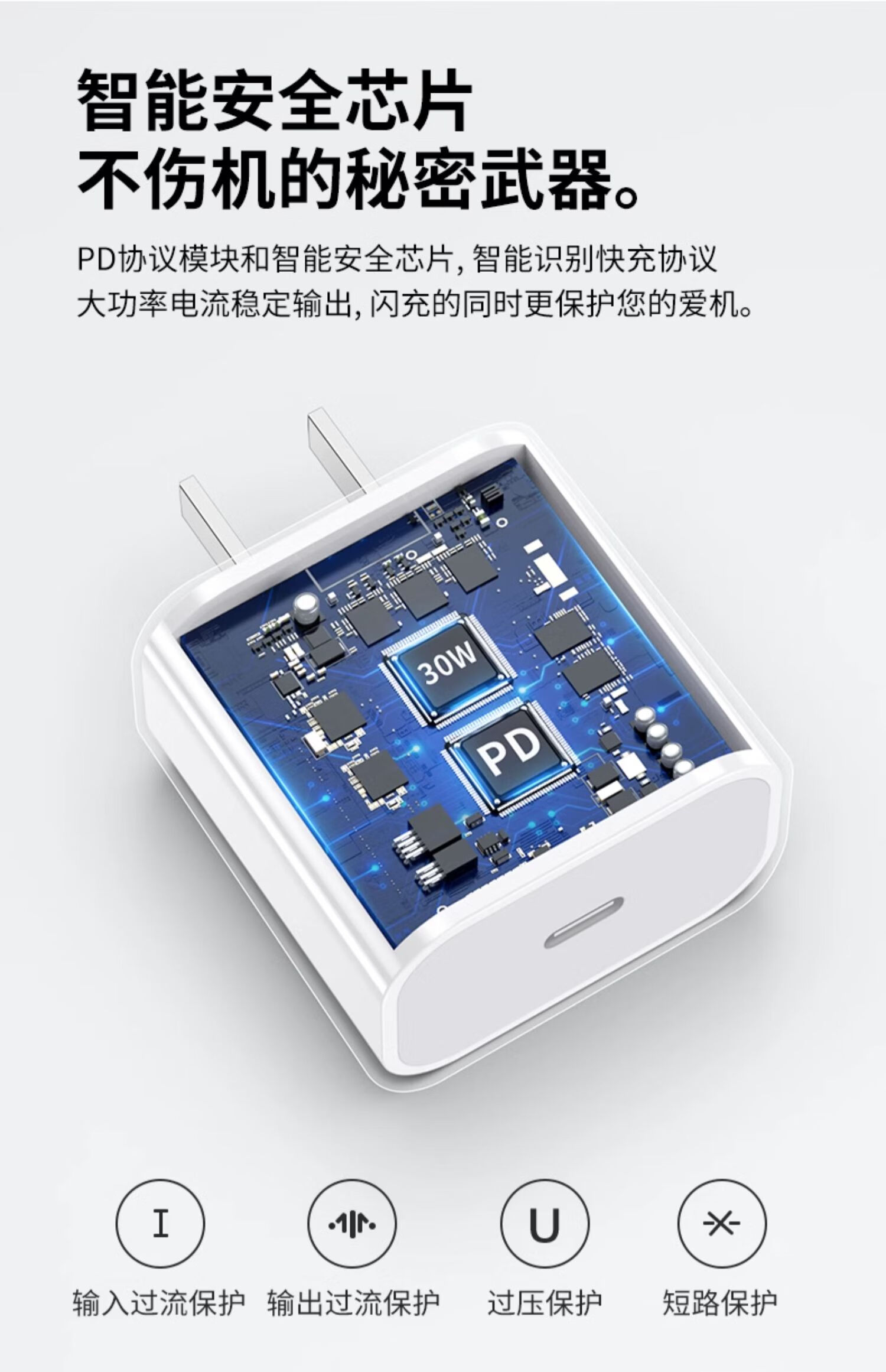 WITGOER充电器适用于苹果30W充电头数据线PD20W快充套装iPhone14promax13/12手机11平板xr插头1米type-c